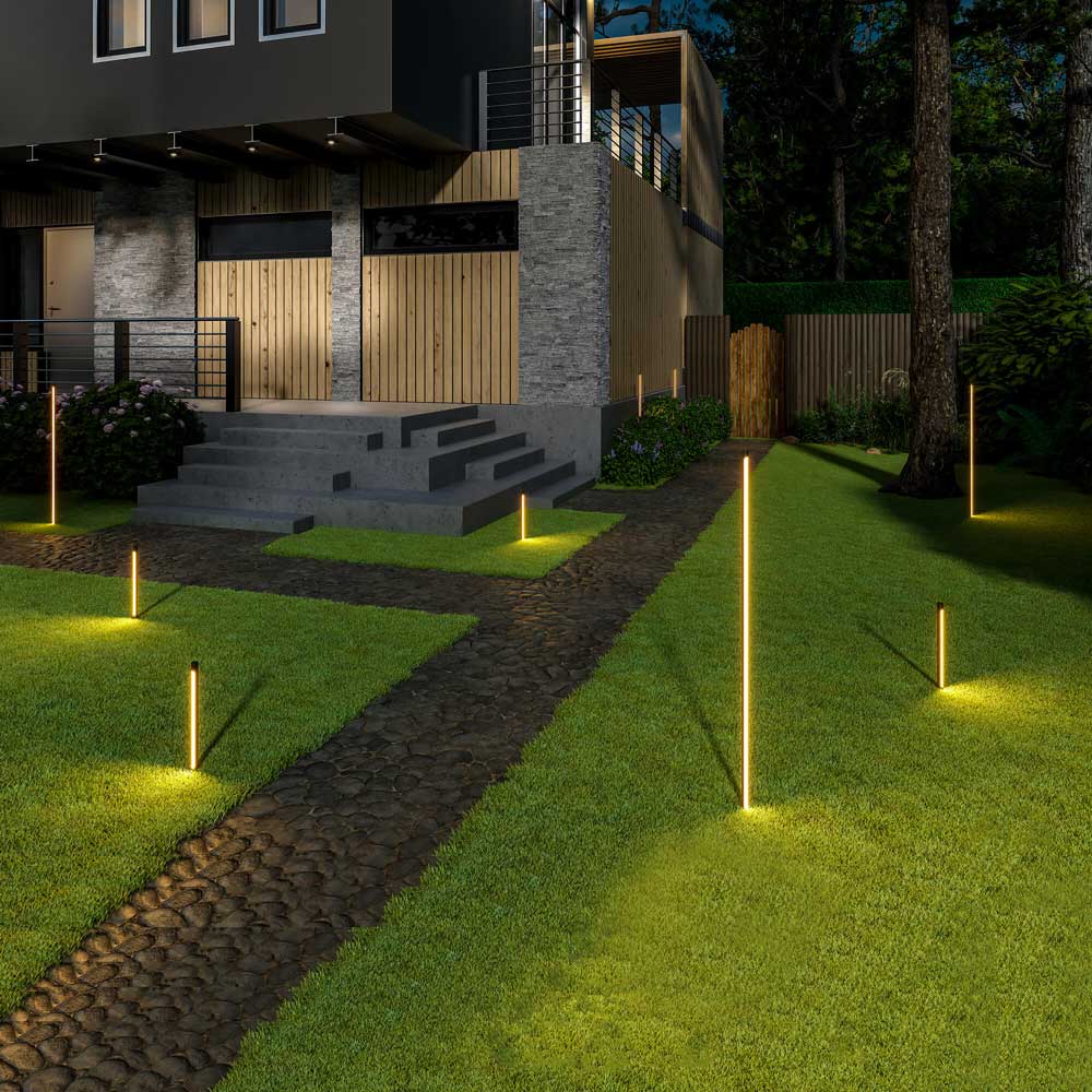 Sleek contemporary style defines the Axis LED Path Light from DALS. Tall and slim, it's a gently rounded, slender stem that emits glowing illumination along a walkway or drive, adding both ambiance and a sense of safety. It's dimmable through the Dals Connect app and includes a full color spectrum and Bluetooth mesh technology.