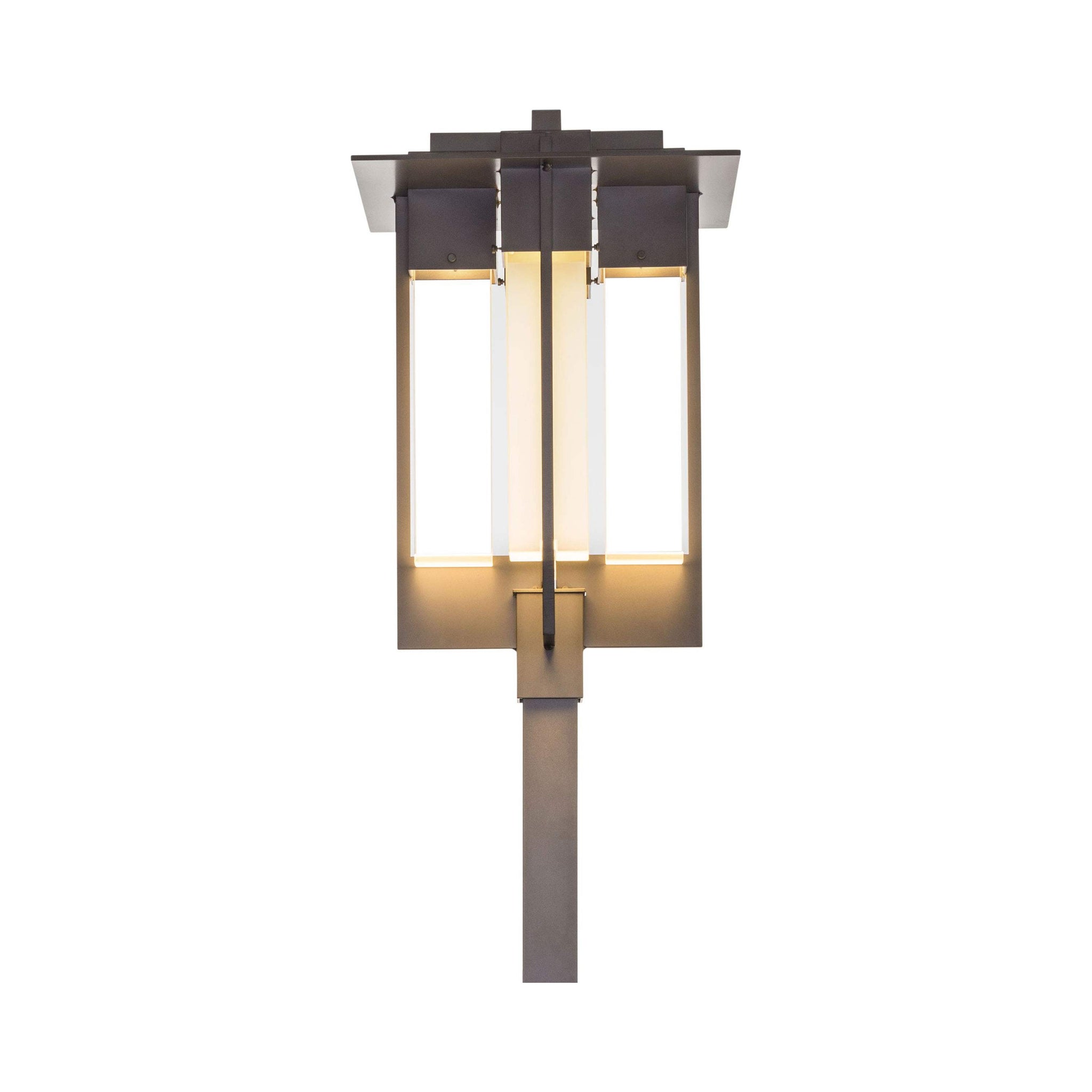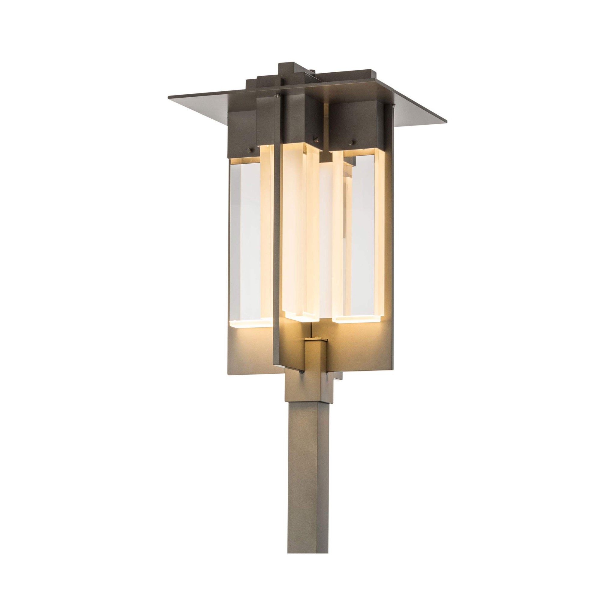 Intersecting planes draw all eyes to the superb silhouette of the Axis Outdoor Post Light from Hubbardton Forge.