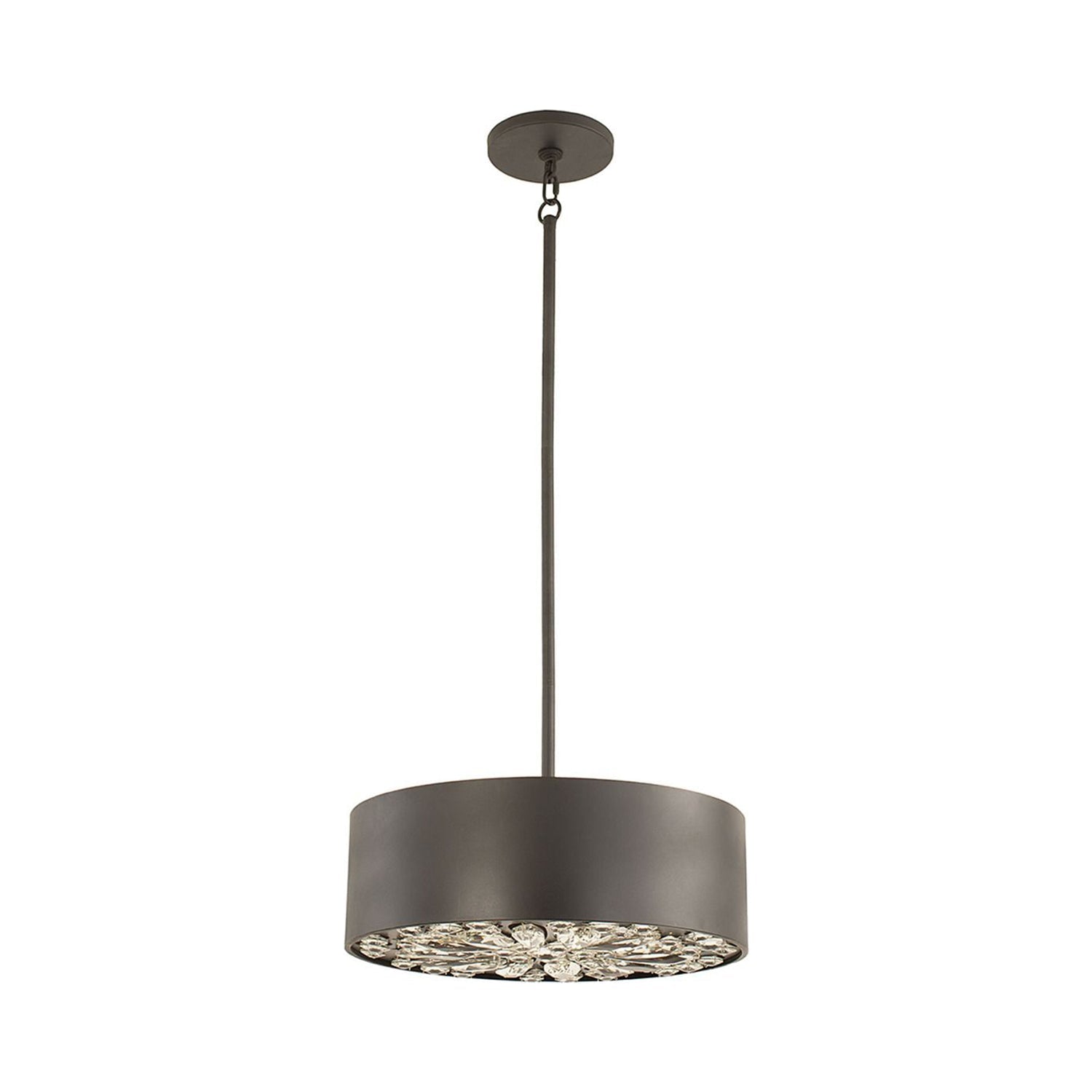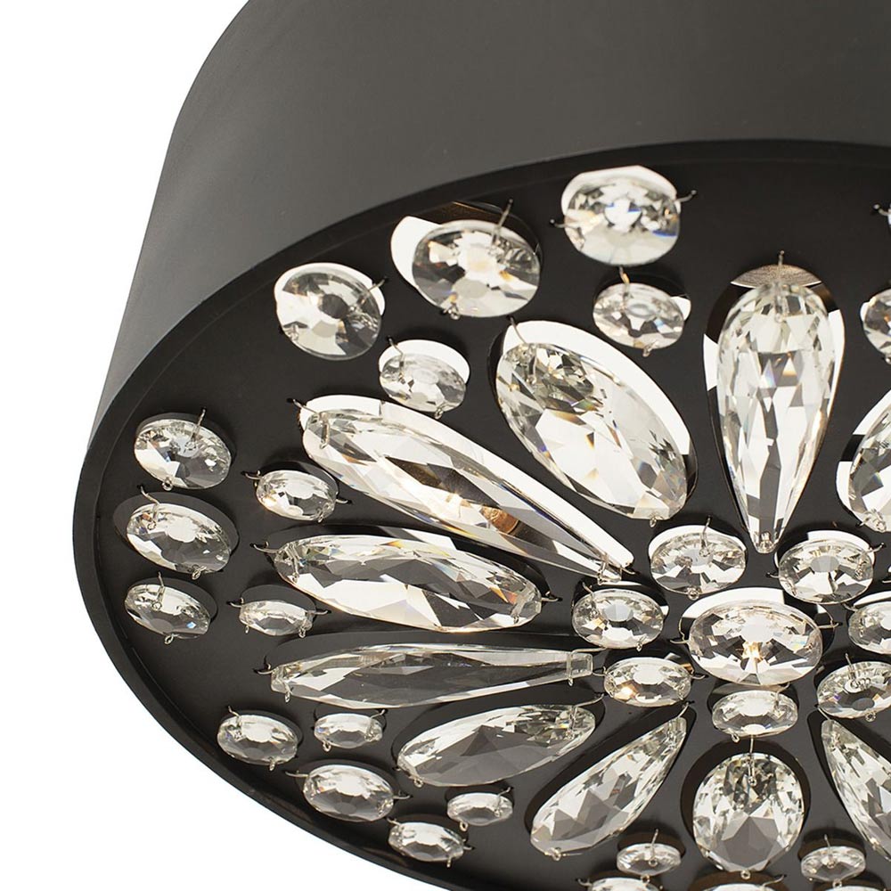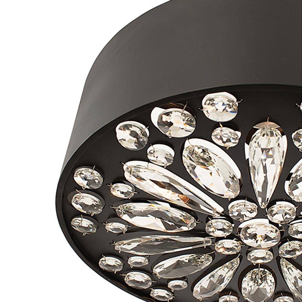 Decadence arrives in surprising fashion as the Azores Drum Pendant Light from Savoy House tempers its elegant aesthetic with a design suited to a host of living spaces. Choose this minimalist yet chic fixture with a black cashmere finish drum shade and a splash of glam-inspired crystal gems on its underside diffuse and reflect energy-efficient LED lighting.