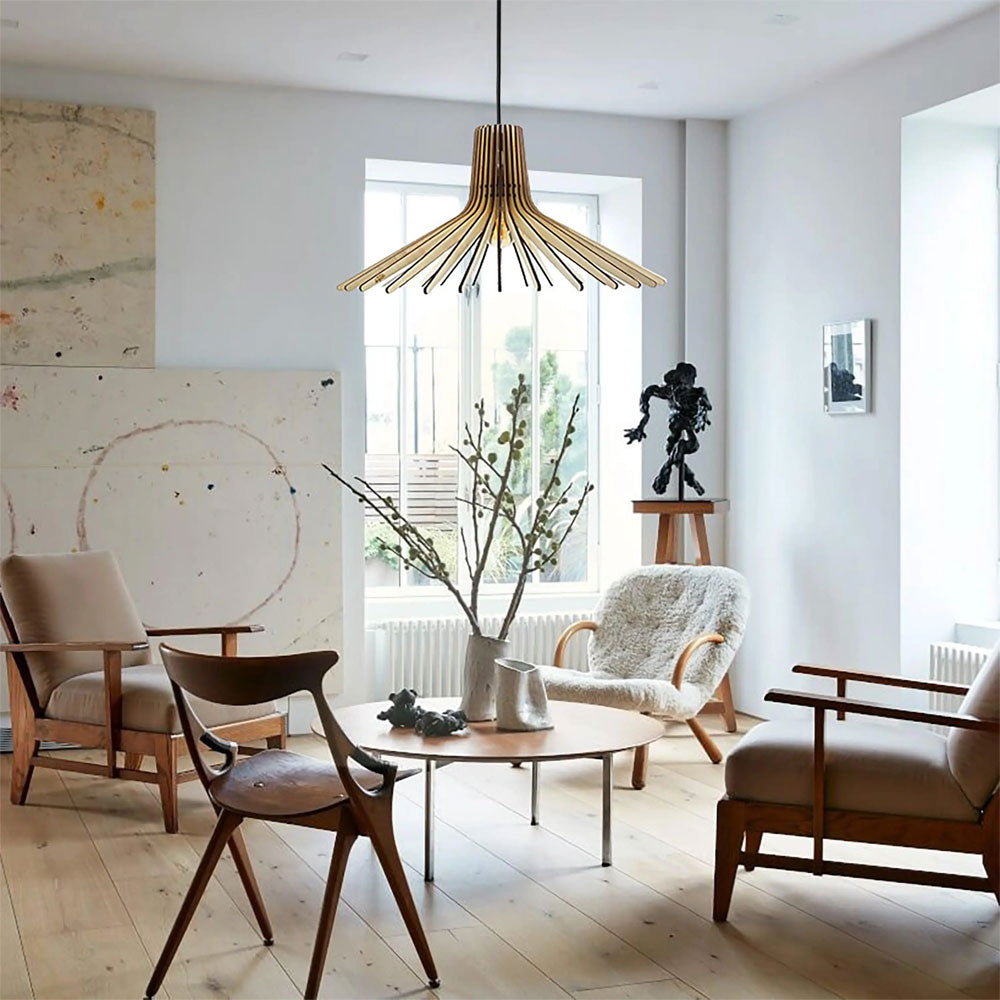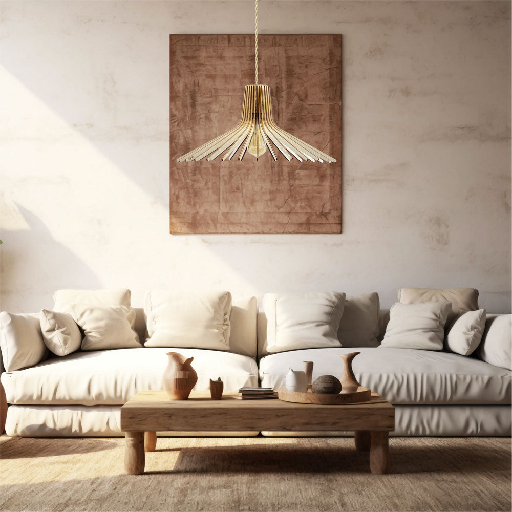 Suspension offers a floating effect to a light fixture with the organic coastal ambiance you're craving. The Azur Pendant Light from Atelier Loupiote repurposes a broom whisk emulation, with architecturally cut wood slats encircling a tapered top. Easy on the eyes and low-key to work in casual settings, this stylish pendant rekindles a love of island influence.