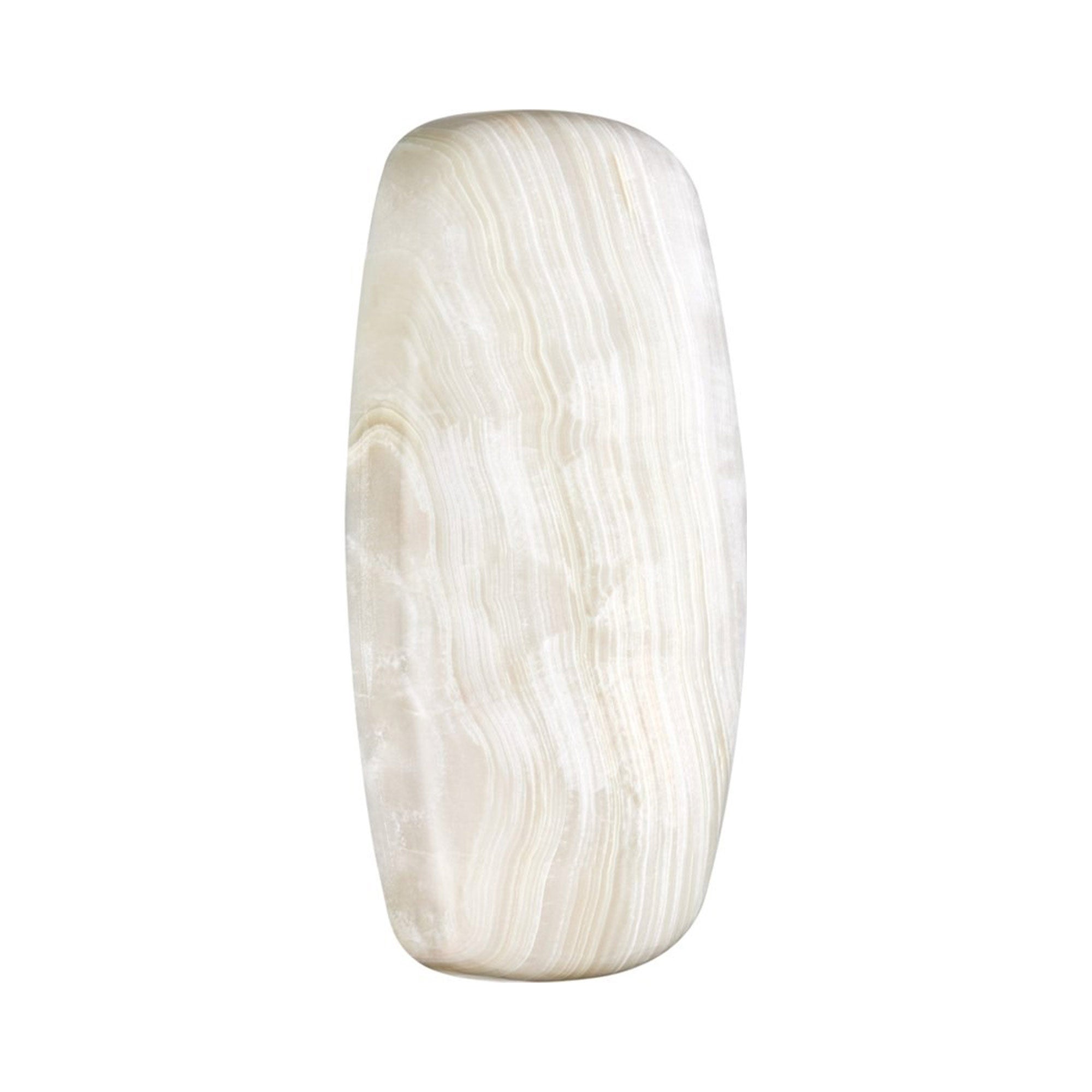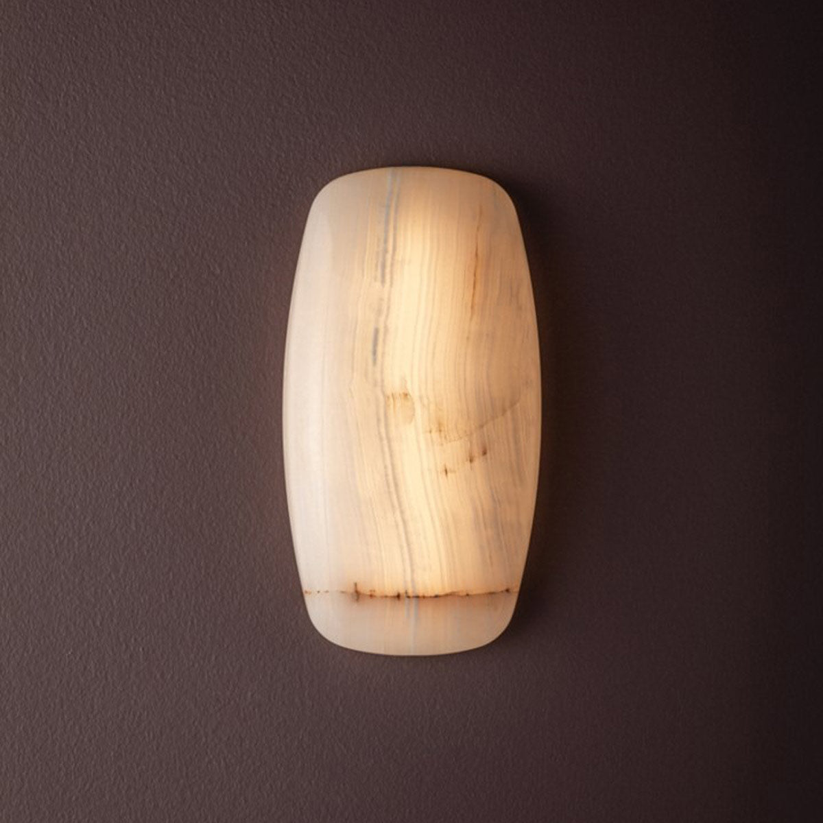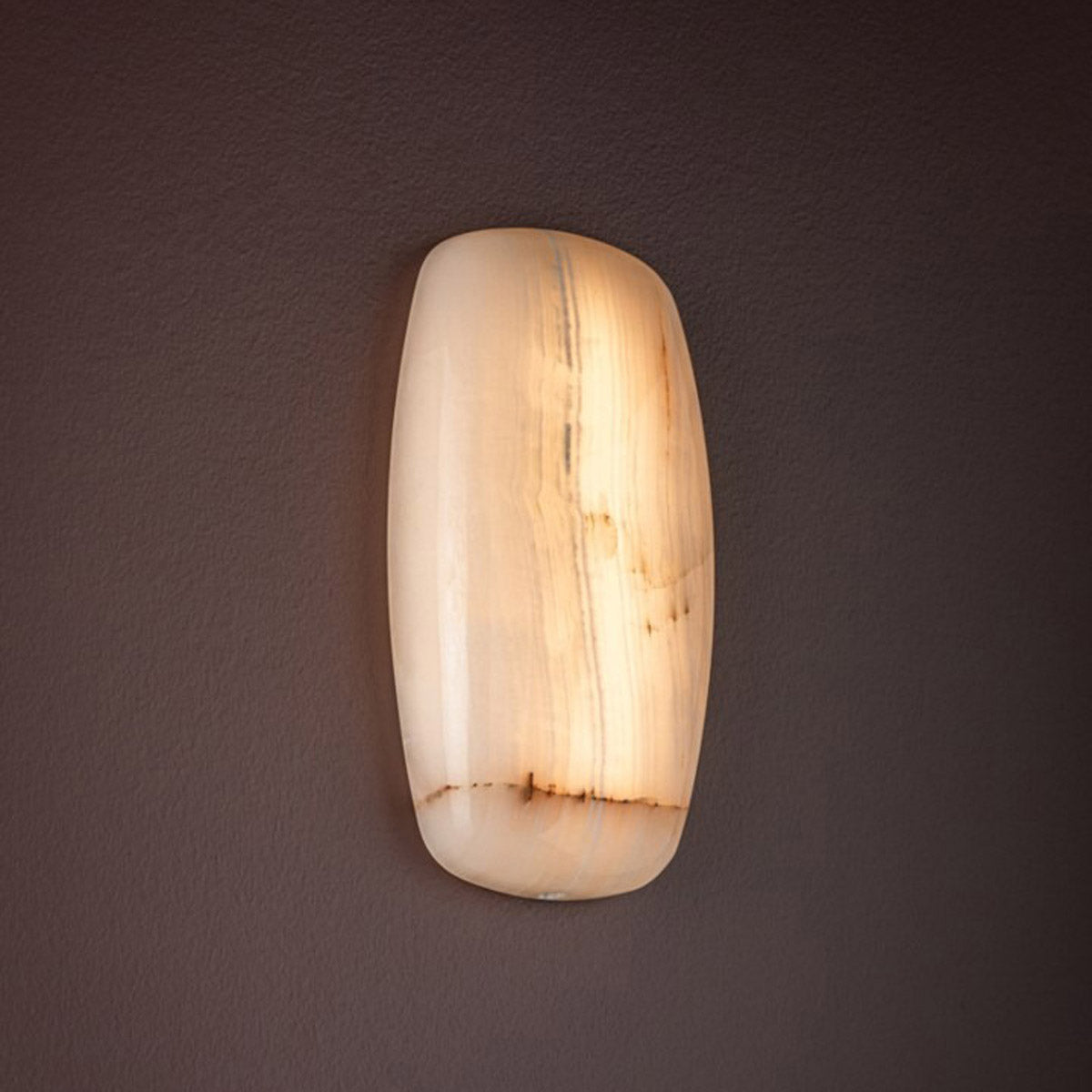 Striations of minerality create atmospheric elegance for the stunning sculpted ice onyx that defines the Azzurra LED Wall Light from Corbett Lighting. Steeped in organic elegance, the fixture radiates from within, showcasing an elongated oval silhouette with gently rounded edges that create a sense of time-worn softness and elegance.
