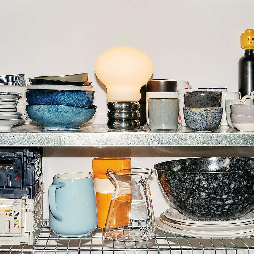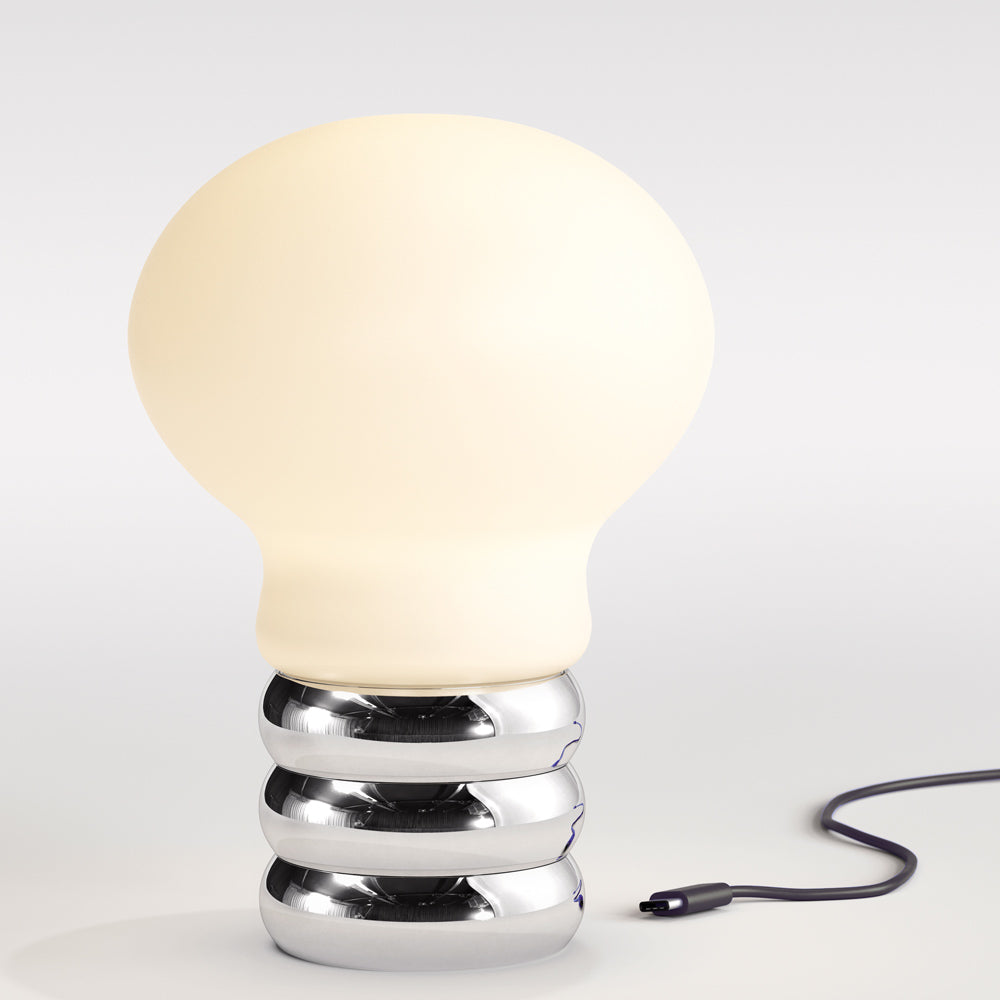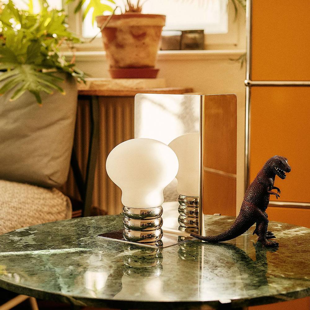 Co-opting a retro vibe, the B.Bulb LED Table Lamp from Ingo Maurer creates a festive sense of nostalgia perfect for casual spaces. This chic, energy-efficient lamp emulates a classic light bulb, enlarged and embellished. Portability is convenient as it follows from room to room.