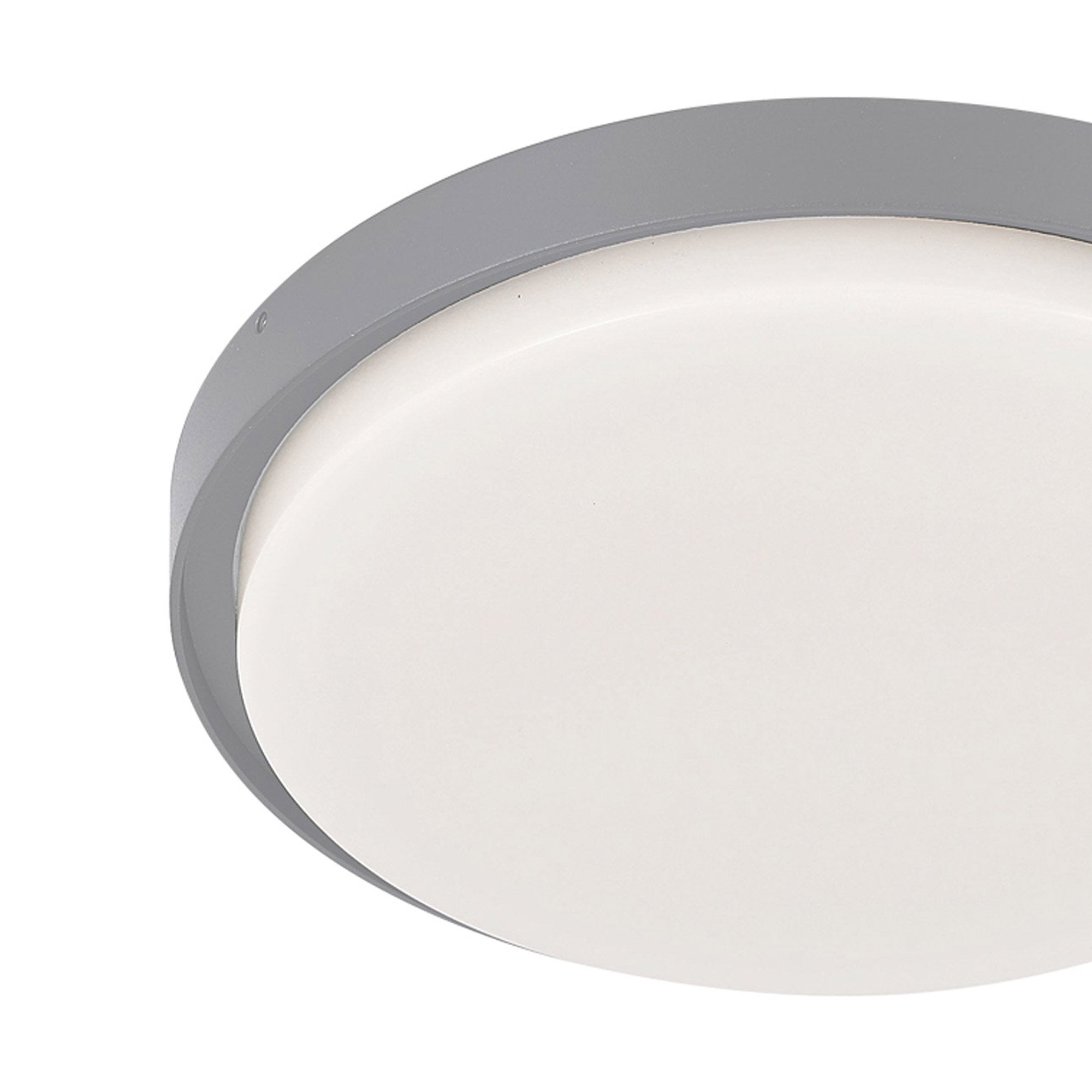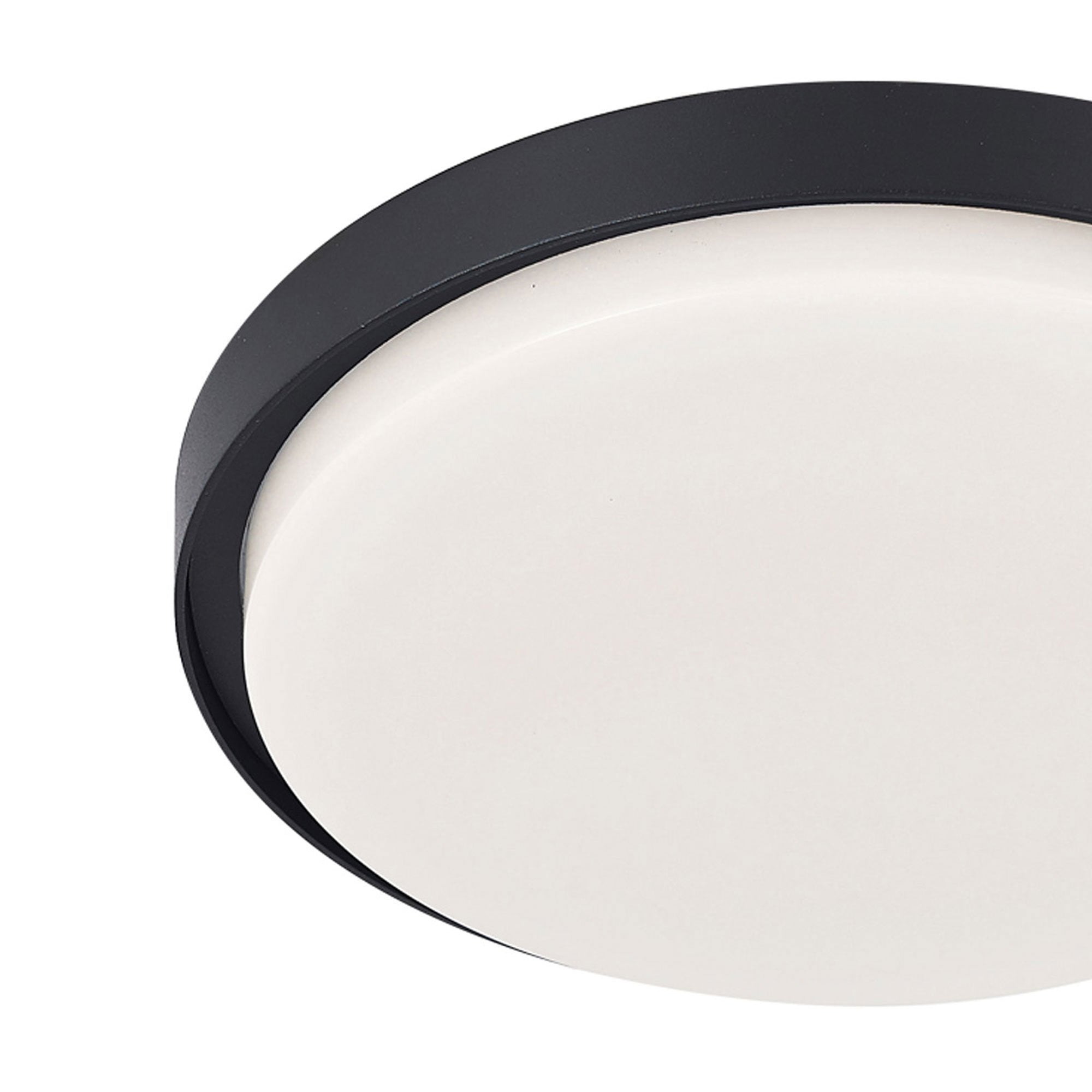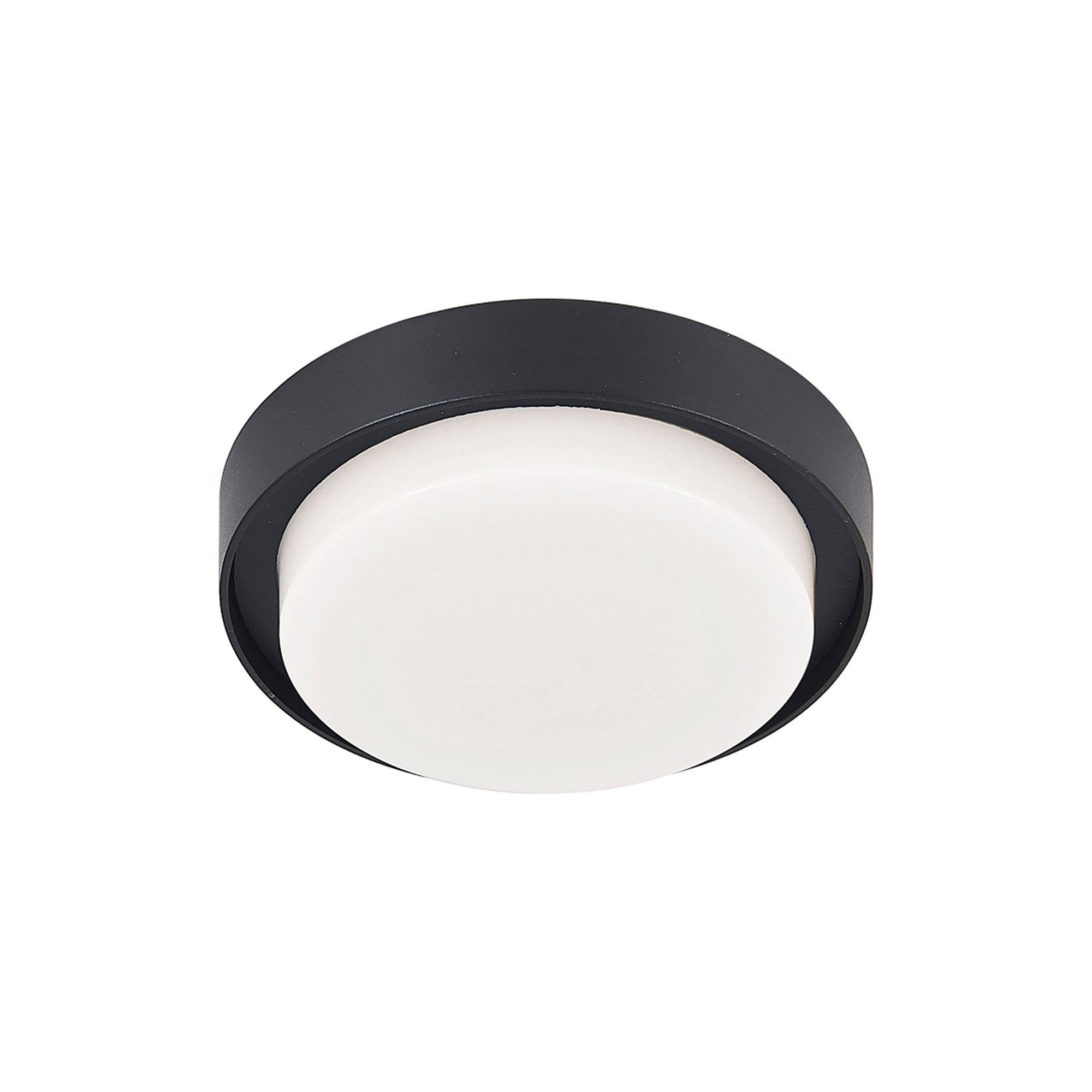 Circular cast aluminum body and frame. Lightly textured powder-coat finish. Round opal polymeric diffuser. Outward emitting light. Rated for exterior use. Custom options available.