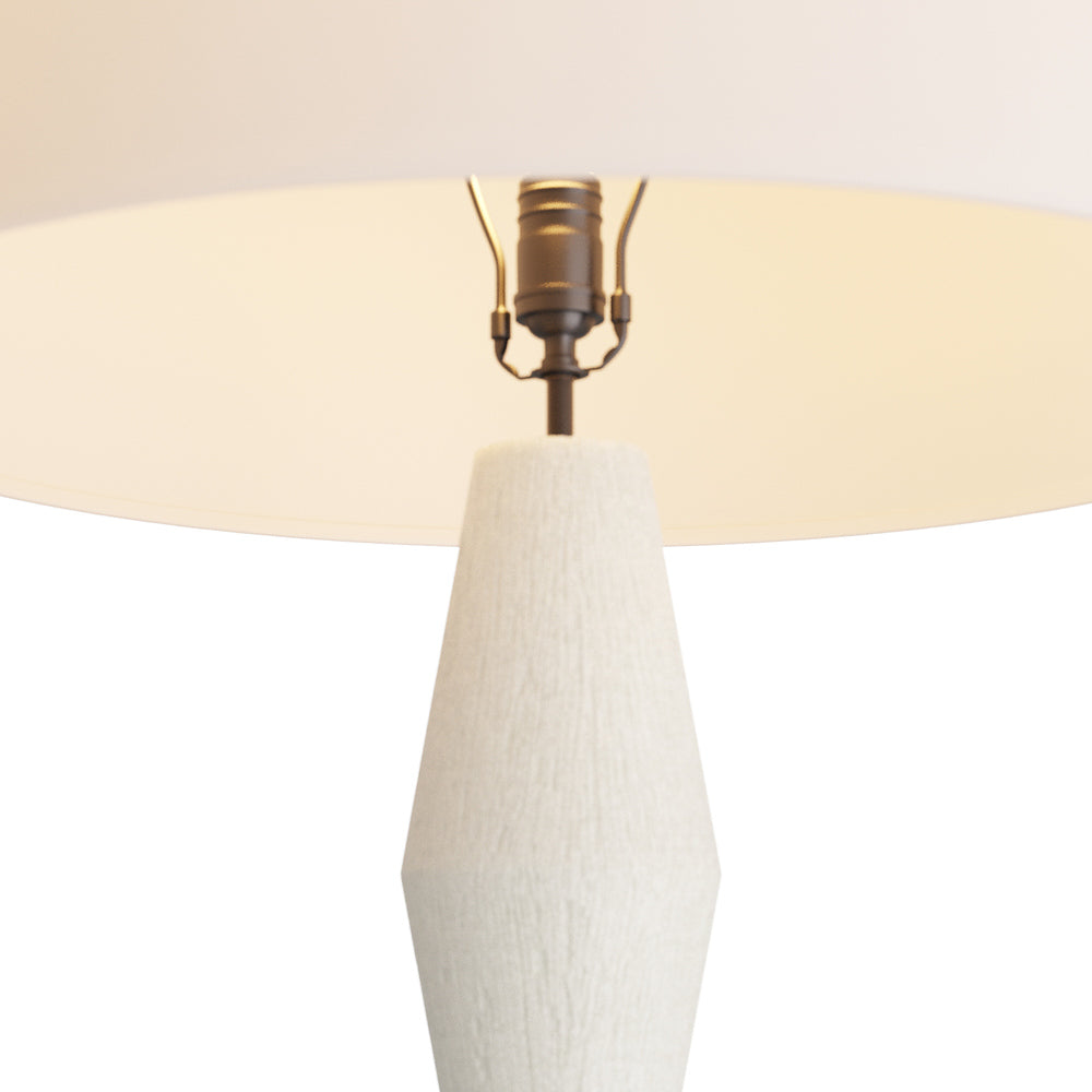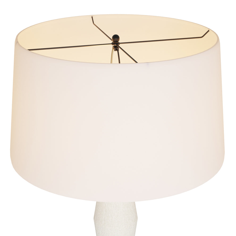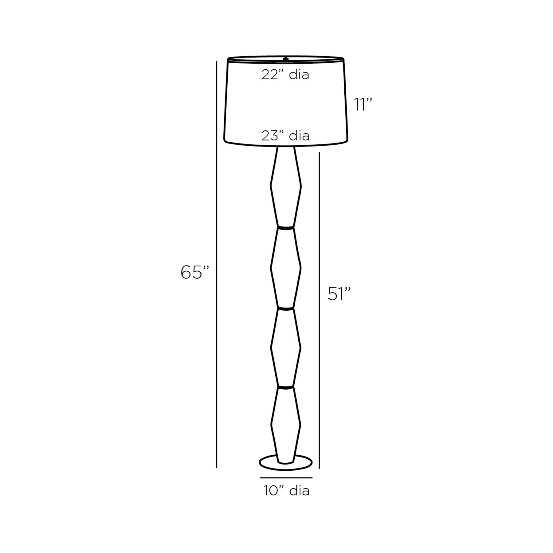 The Baker Floor Lamp from Arteriors offers a playful look with a hint of retro flavor, casual and inspiring as it sheds ambient lighting in a living room or bedroom setting. Its stacked totem silhouette is slightly geometric, topped with a conventional yet creamy linen shade with metal accents.
