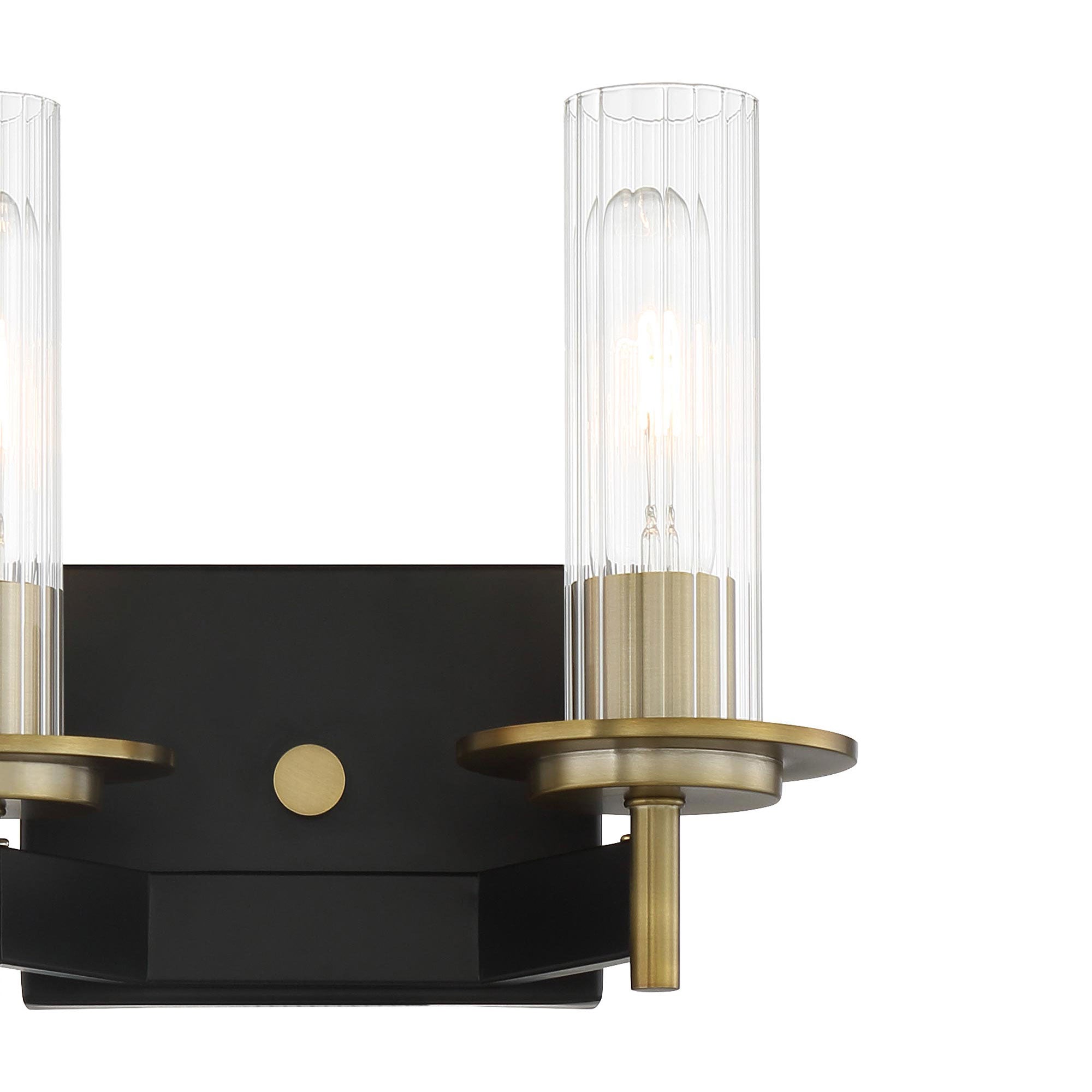 Cool sophistication sparkles in the Baldwin Park Vanity Wall Light from Minka Lavery. A stellar addition to any bathroom, it pairs gently ribbed glass cylinder shades with soft brass bobeches for a clean, modern look and feel. A coal wall plate completes the look and adds both depth and richness to your vanity.