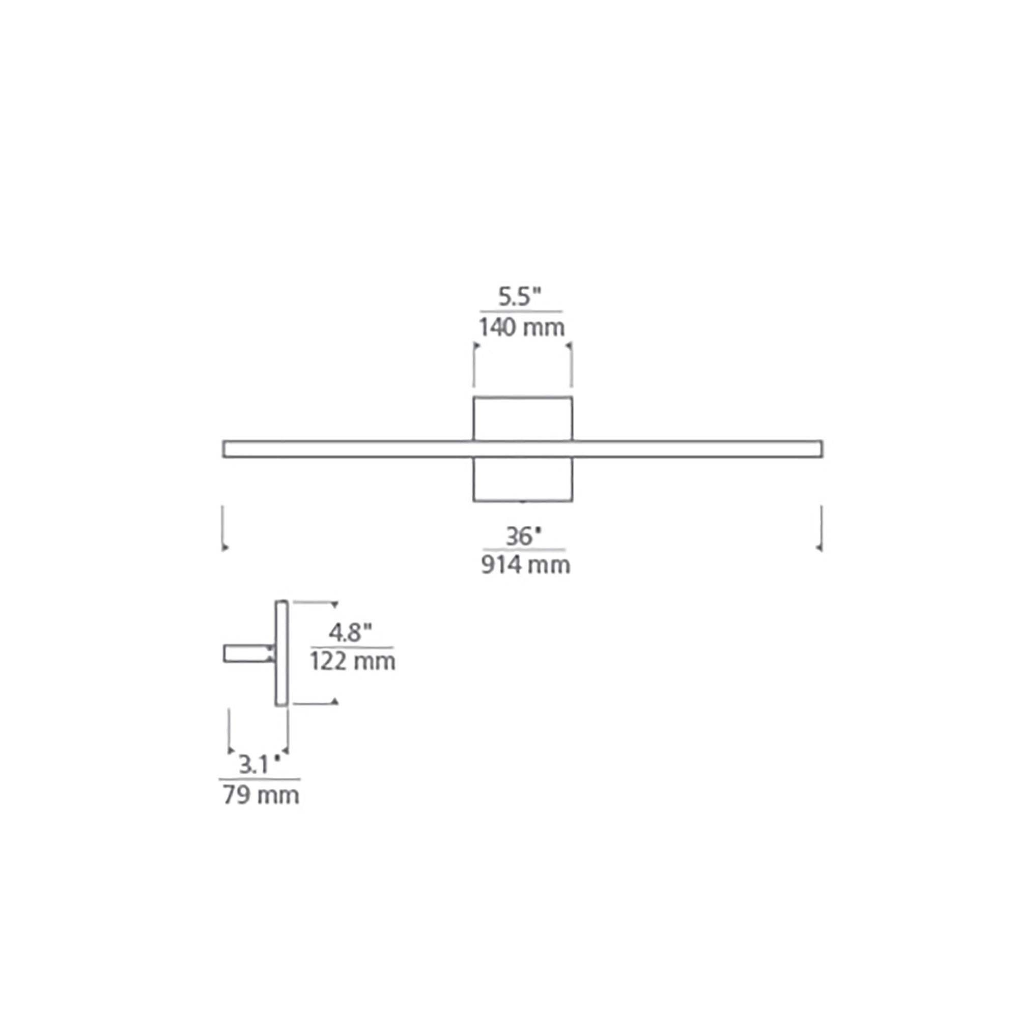 - Large: 36"W X 4.8"H; 3.1" Extension