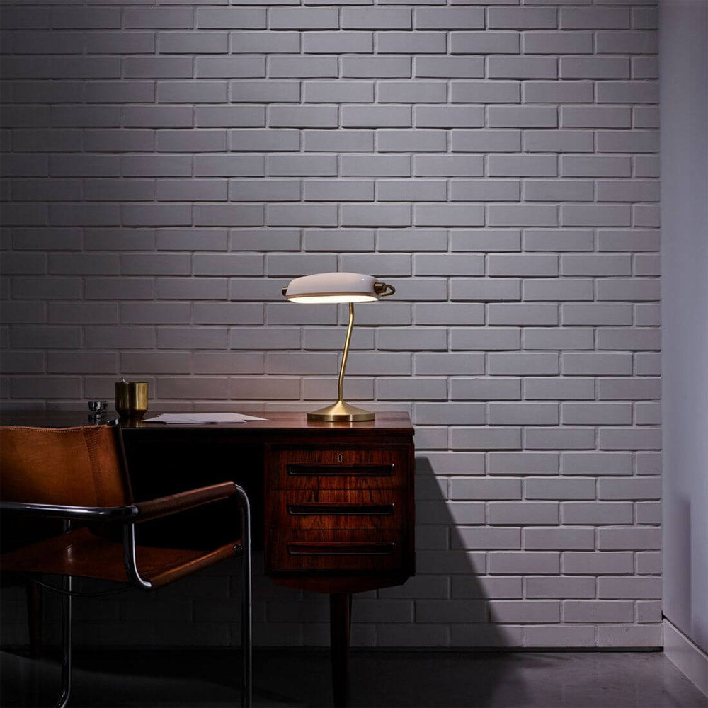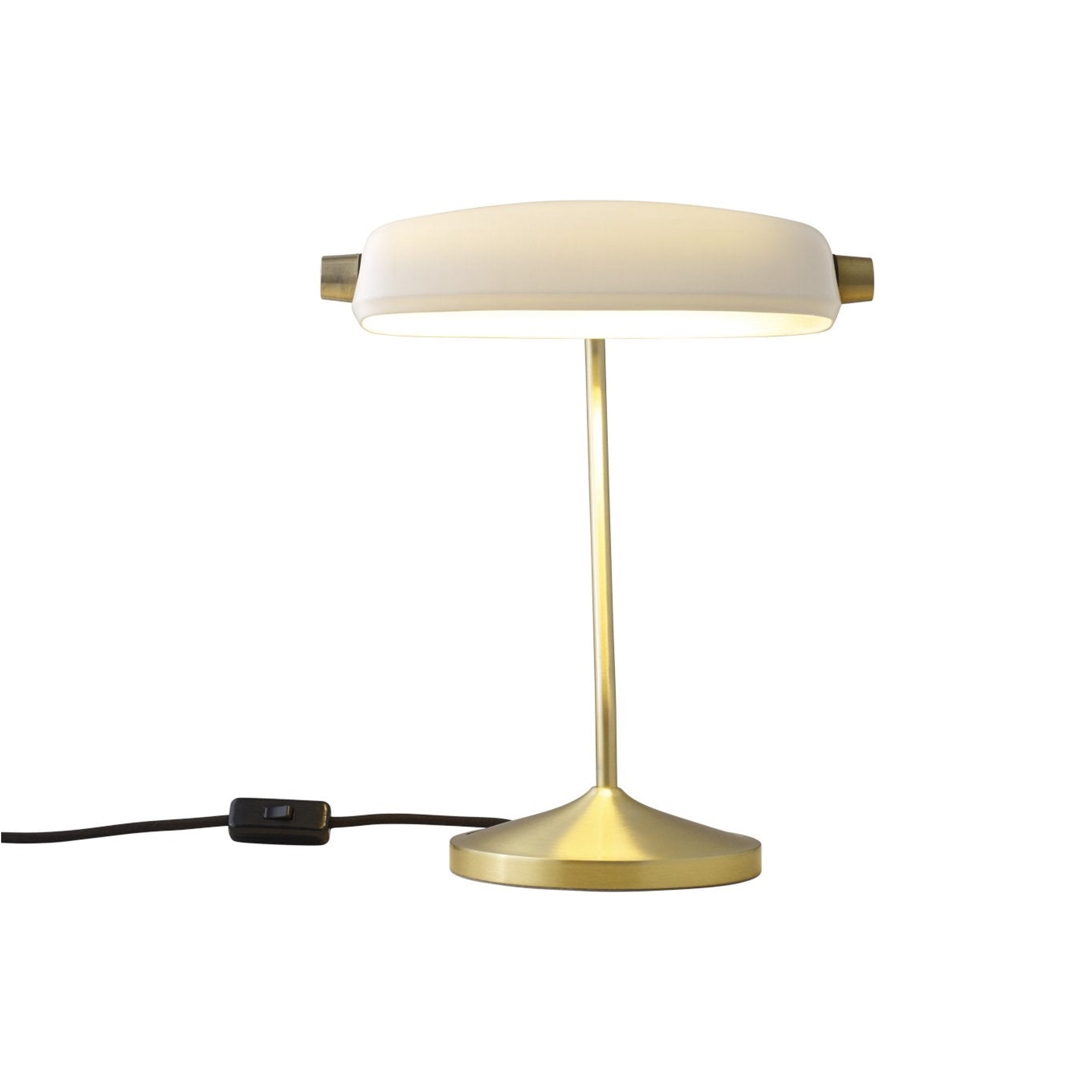 The Bankers LED Table Lamp from Original BTC revives an iconic banker's light marking early 20th Century style. An elegant yet utilitarian lamp perfect for home offices and yet stylish enough for custom living areas, this lamp and its smooth bone china shade indulge a beautiful brass finish metal frame. Attention to detail reinforces quality materials to result in a formidable light source.