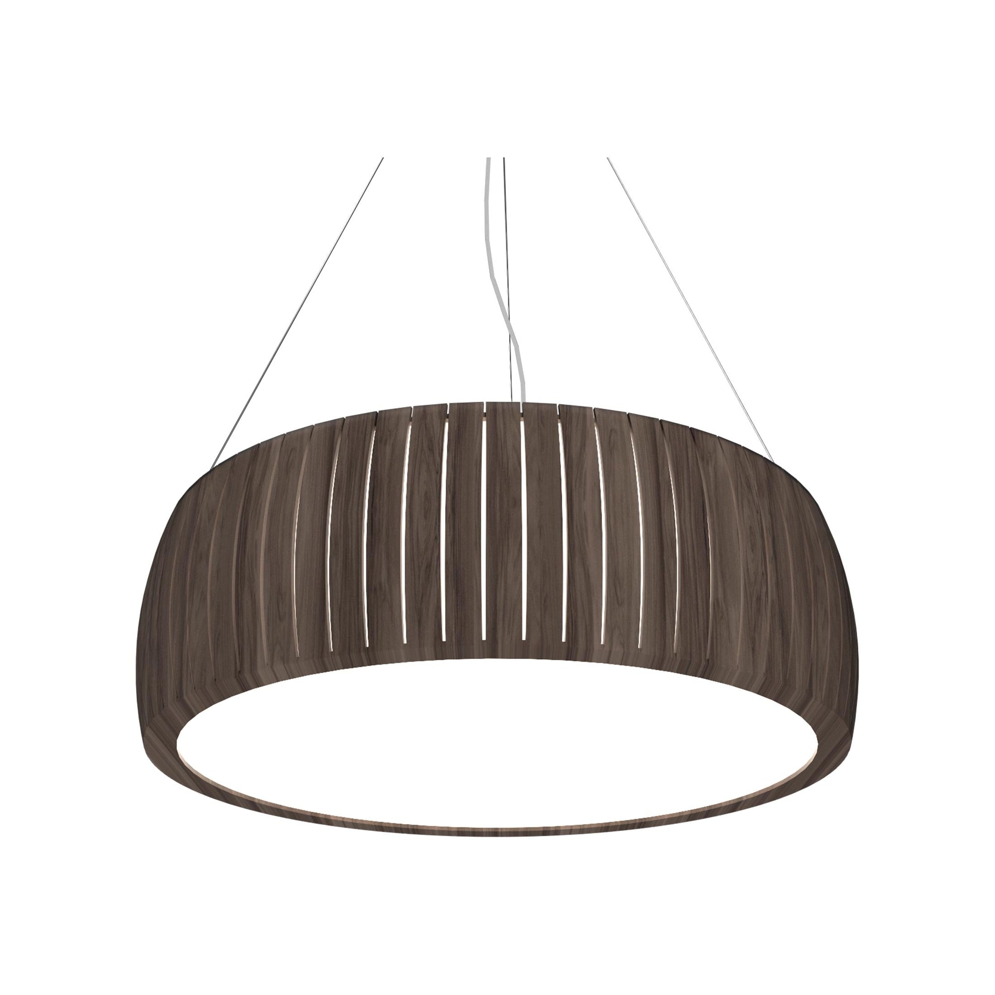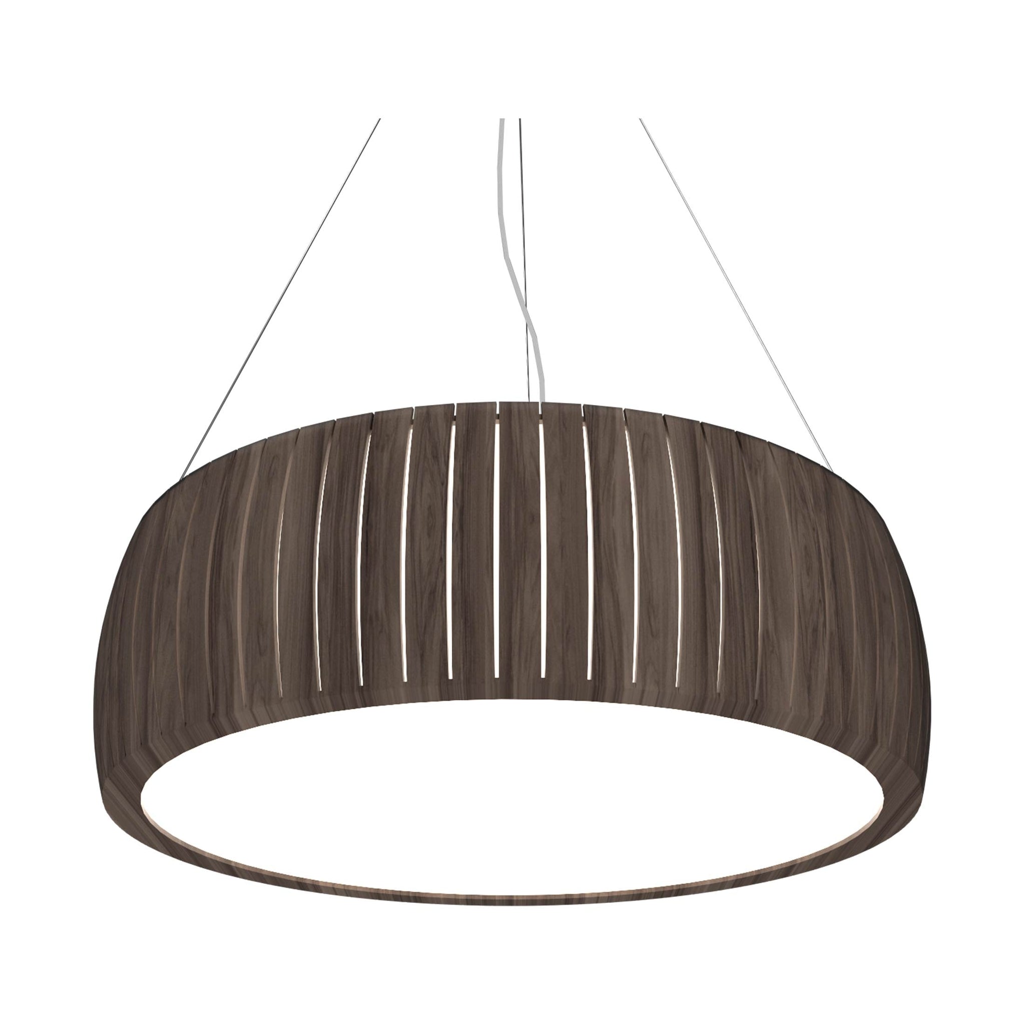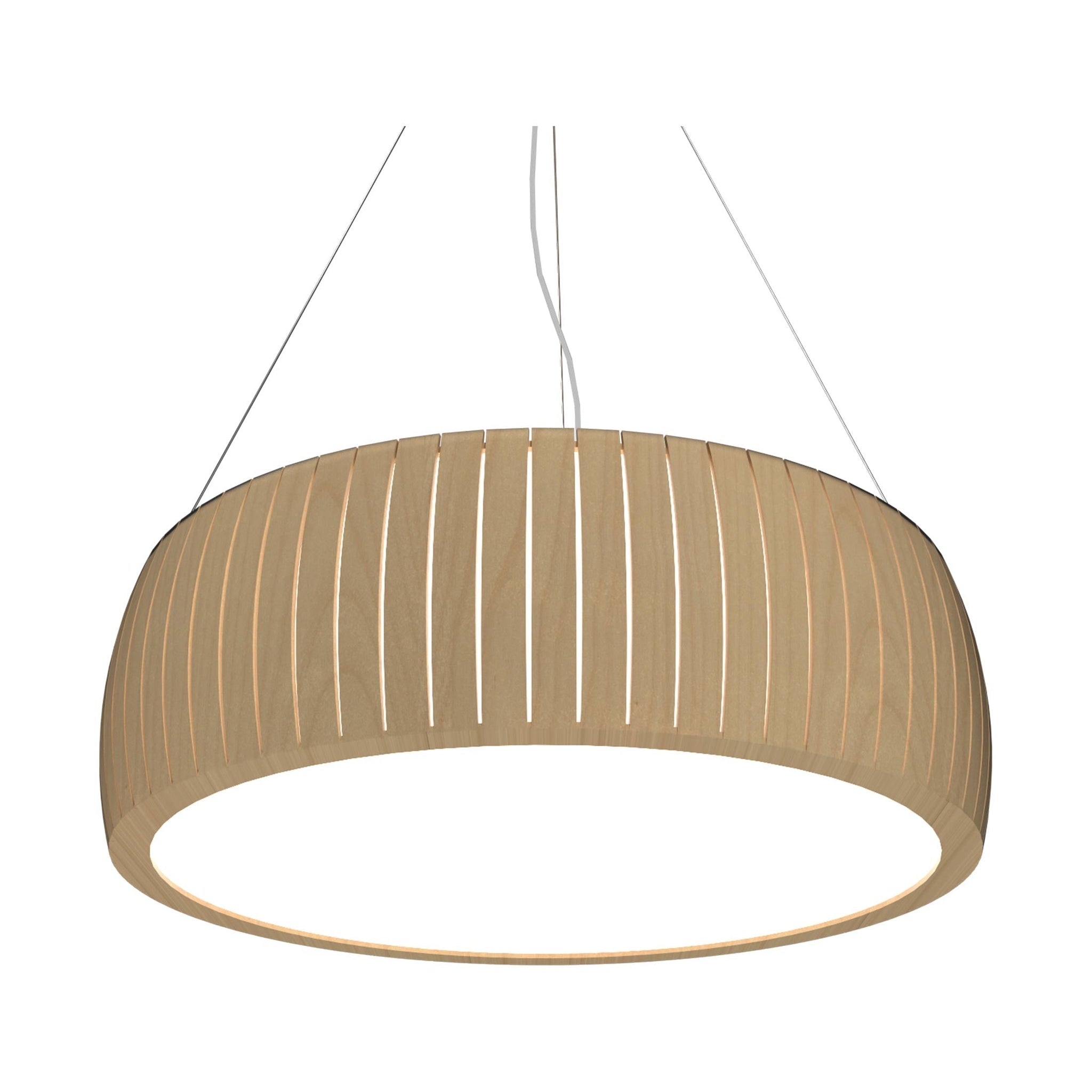 Simple and organic, the Barril LED Drum Pendant Light from Accord Lighting is a gently curved, barrel-inspire design that cases soft, glowing illumination over a living area or dining room. A diffuser underneath assures lovely lighting, while slender gaps in the shade allow light to glow through, creating an eye-catching finishing touch.