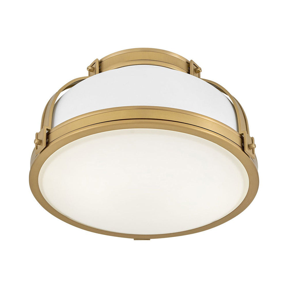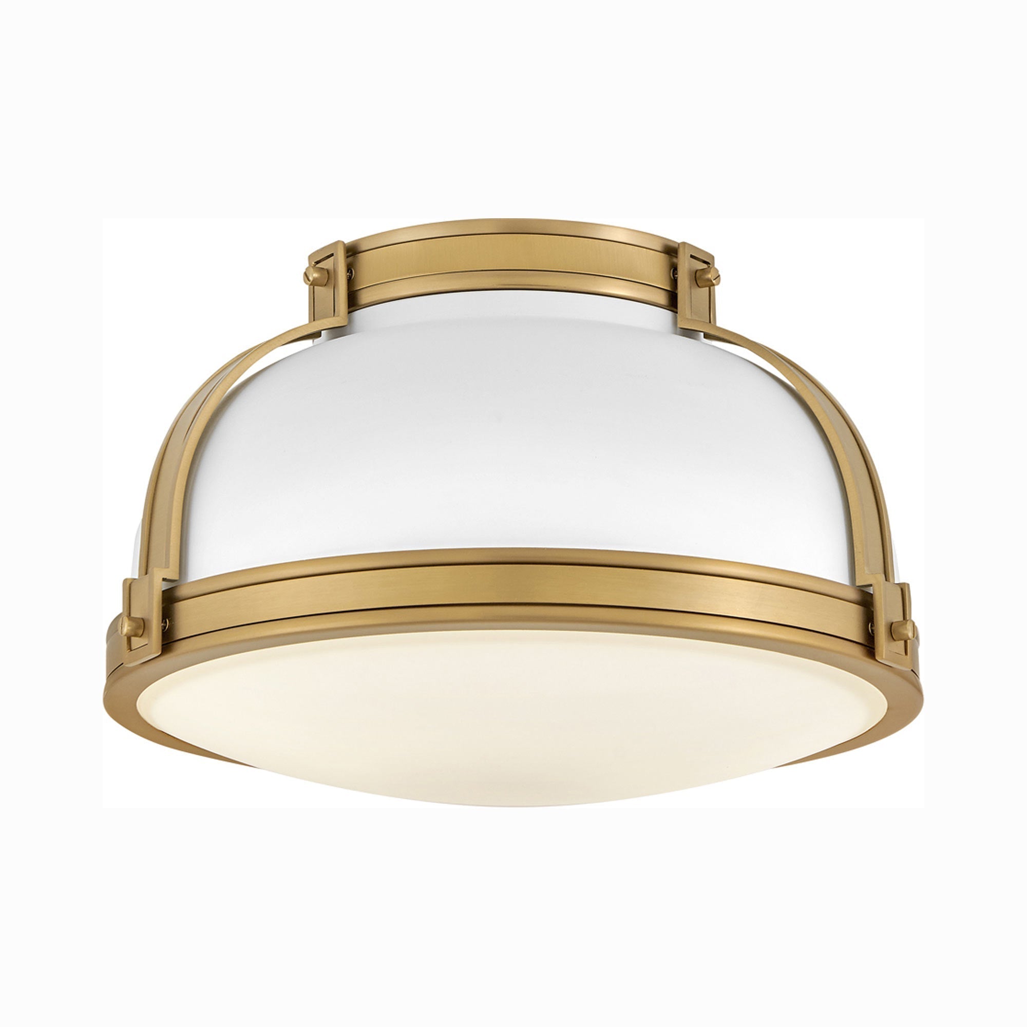 A dramatic look offers Art Deco and industrial motifs in one fixture. The Barton Flush Mount Ceiling Light from Hinkley reworks the classic dome light, using a metal dome shade embellished with dramatic metal straps. Its equestrian flavor adds a ranch-inspired look perfect for capturing attention.