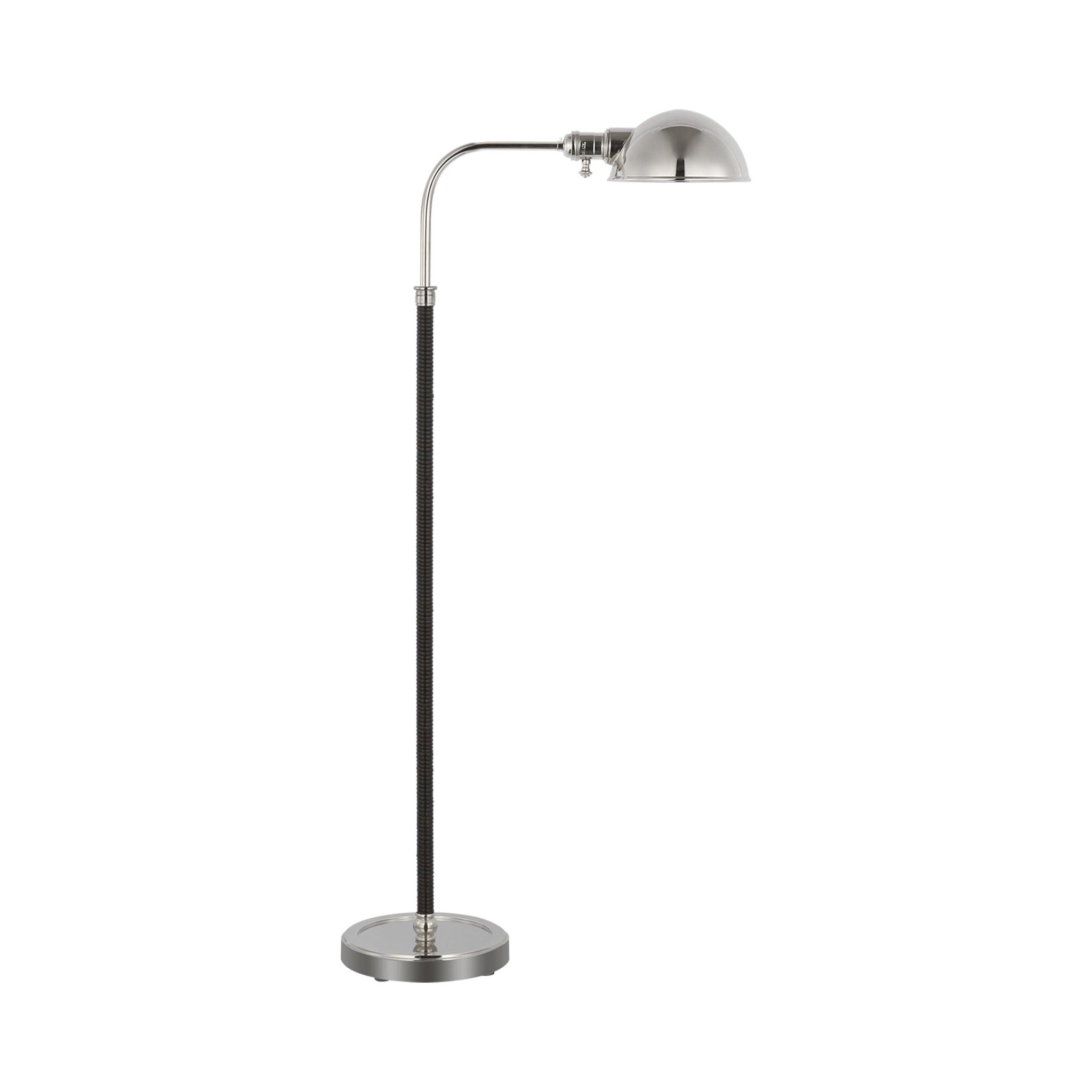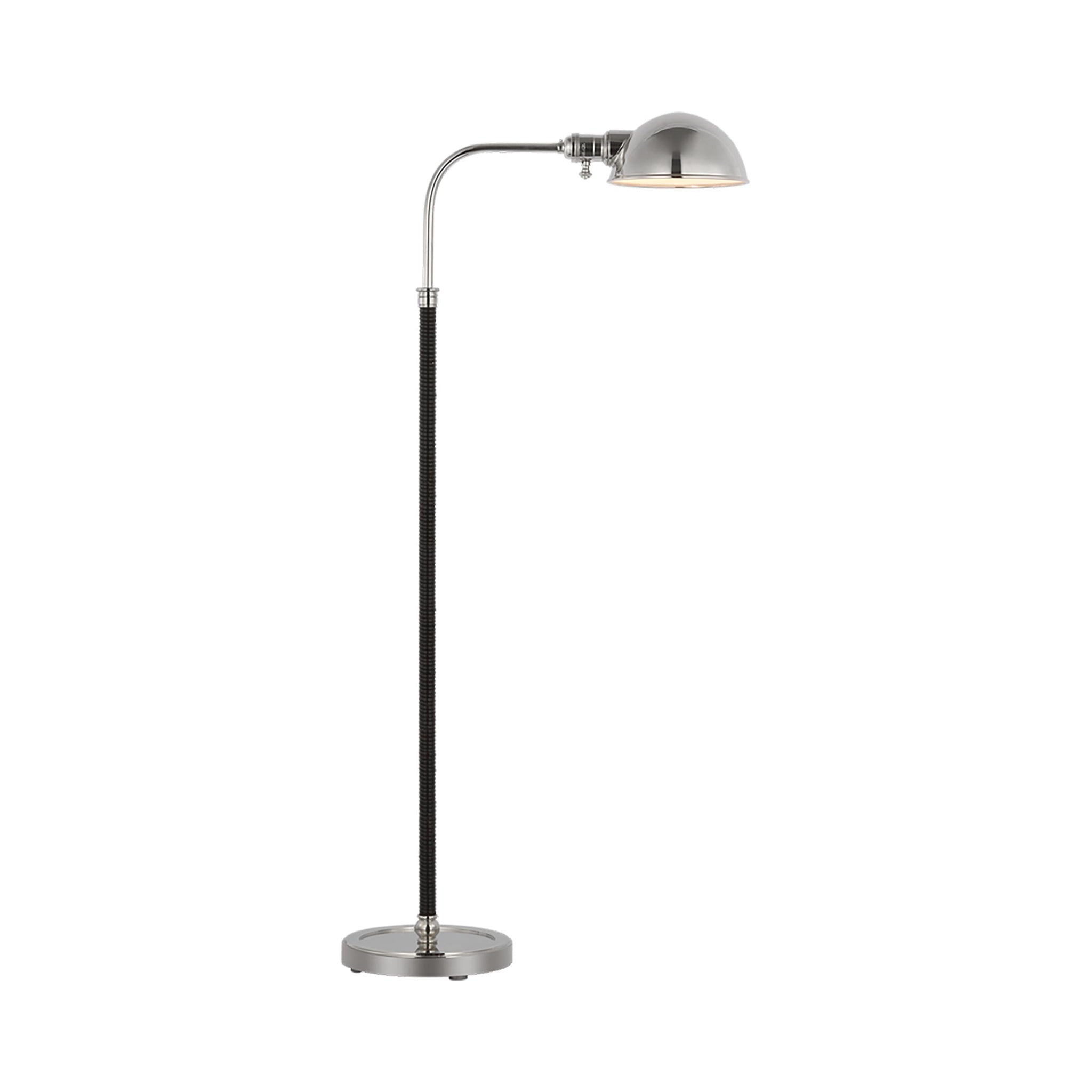 Charming and iconic flavor left over from a past era draws attention to the Basden Pharmacy Floor Lamp from Visual Comfort Signature. Revisit vintage fare with an asymmetrical lamp design fashioned of metal with textural wrapping over part of its adjustable base. A sleek dome shade, also adjustable, is both convenient and design-forward.