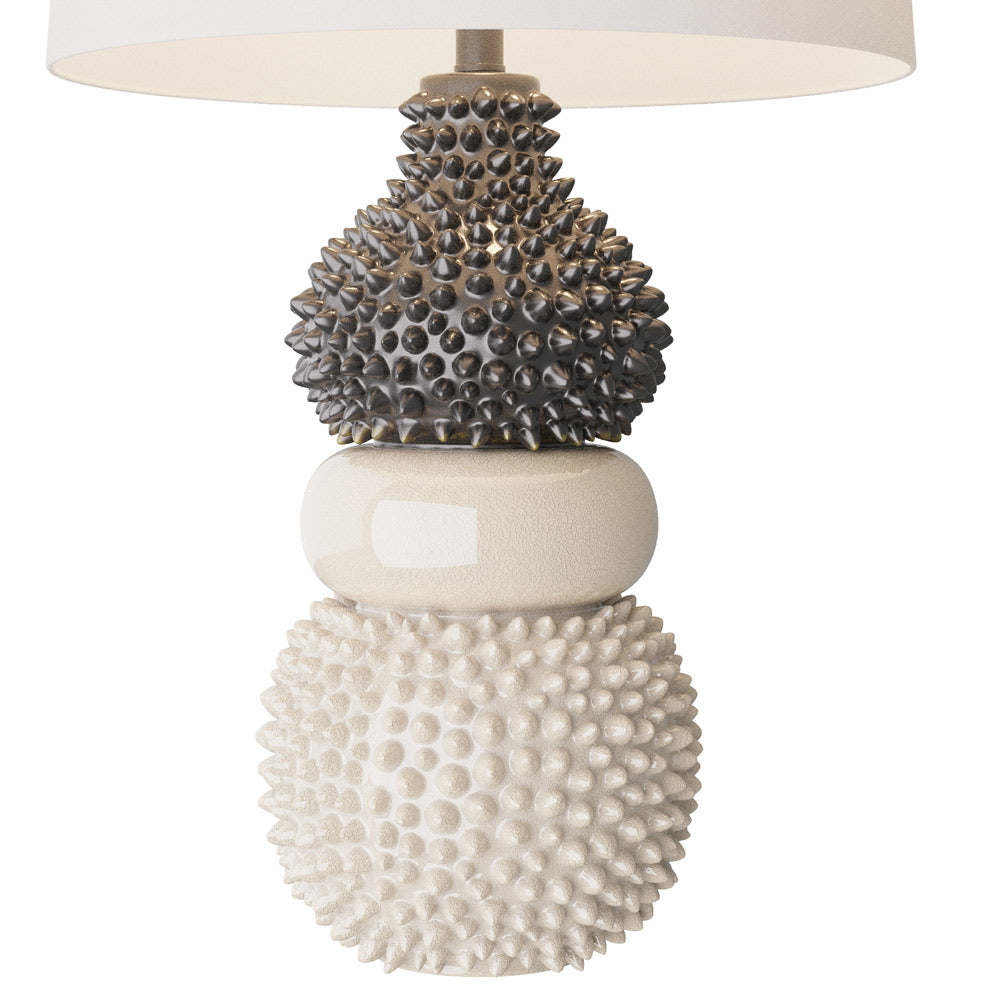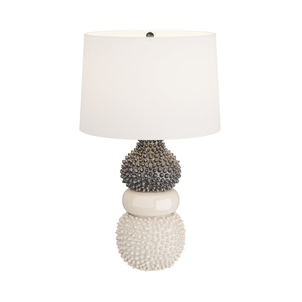 Indulgent organic personality captivates in a casual lamp with significant style. A sea urchin motif delivers coastal ambiance as the Basilio Table Lamp from Arteriors delivers symmetry with texture in a three-part body featuring ivory crackle and gunmetal ceramic finishes. Appreciate the earthy and natural appeal of a timeless lamp design.