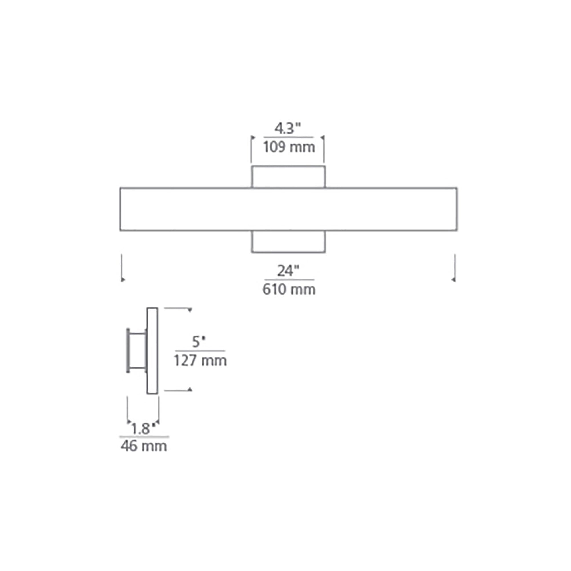 - 24-Inch: 24"W X 5"H; 1.8" Extension