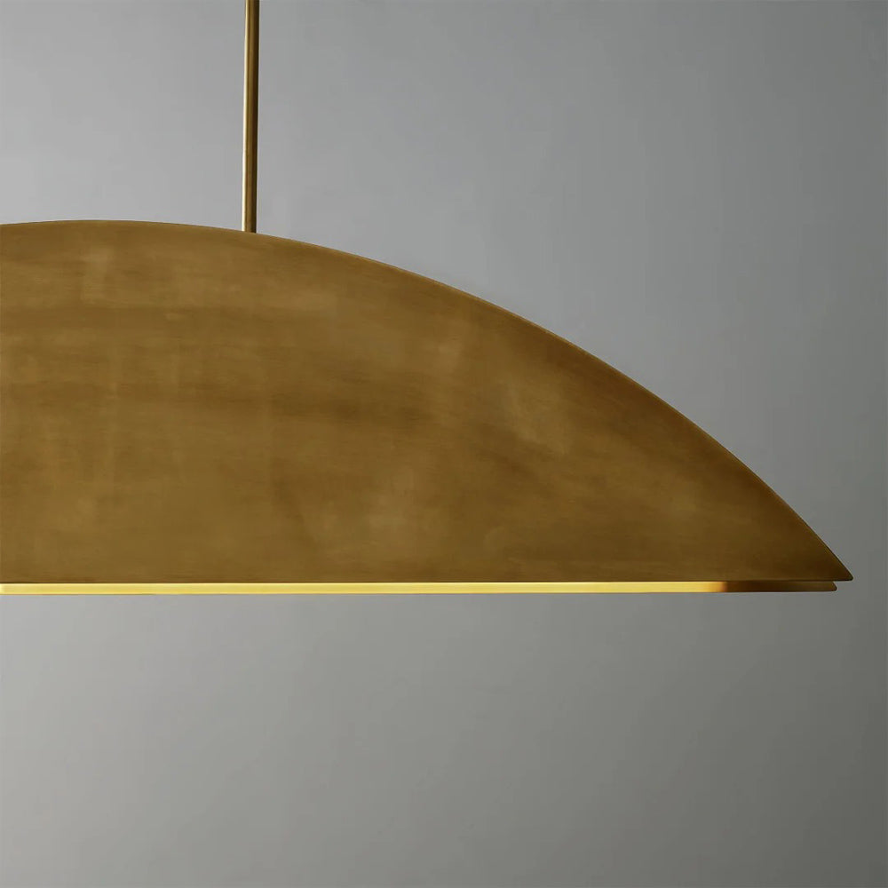 The Bau LED Linear Suspension Light by Sean Lavin for Visual Comfort Modern is an American Modern take on the influential Bauhaus movement. Generously scaled, the Bau 50 Linear Suspension exudes the ultimate modern design with two metal stamped plates housing integrated LEDs that beautifully graze the fixture’s Natural Brass finish providing a generous amount of indirect illumination. Designed as a statement piece, the Bau Linear Suspension pairs well with coordinating Line-Voltage Pendants and Bath Bar.