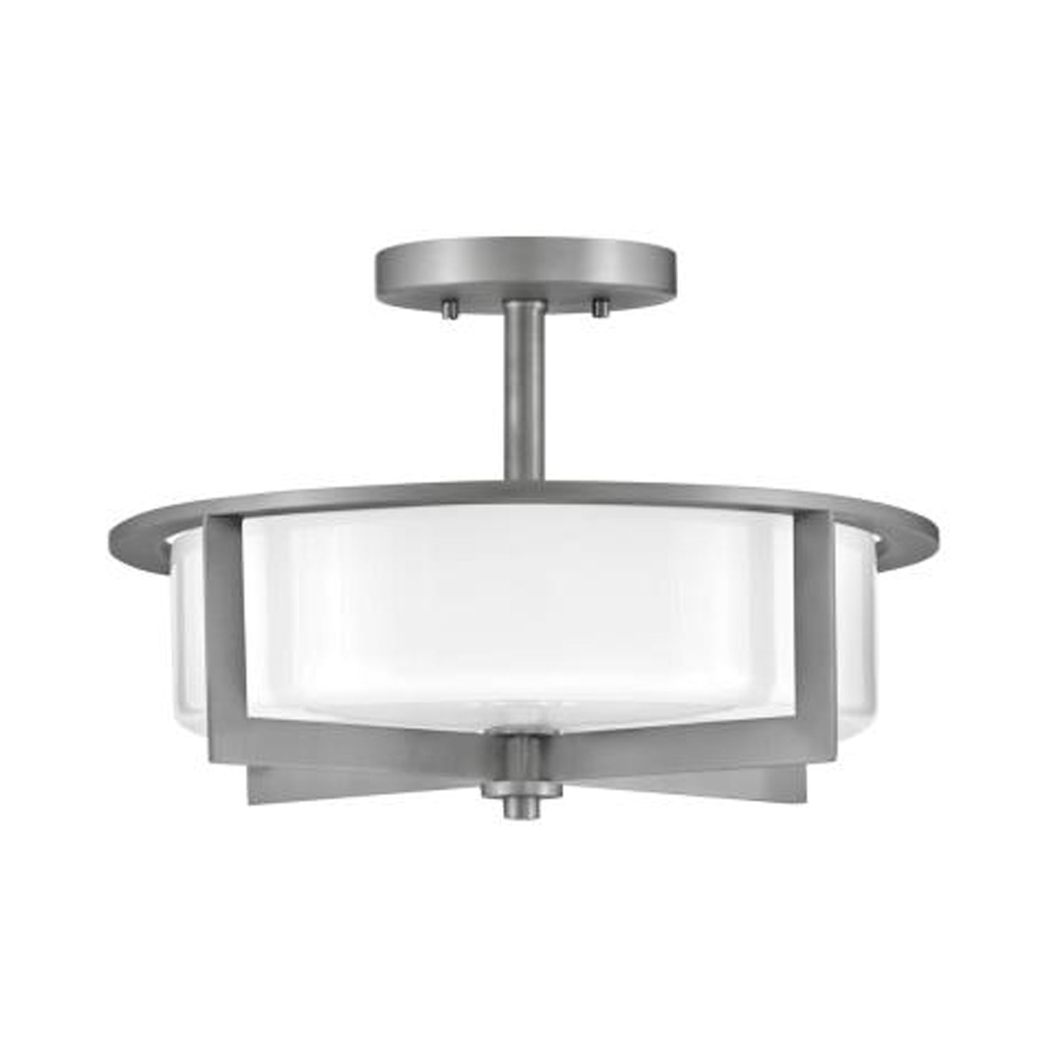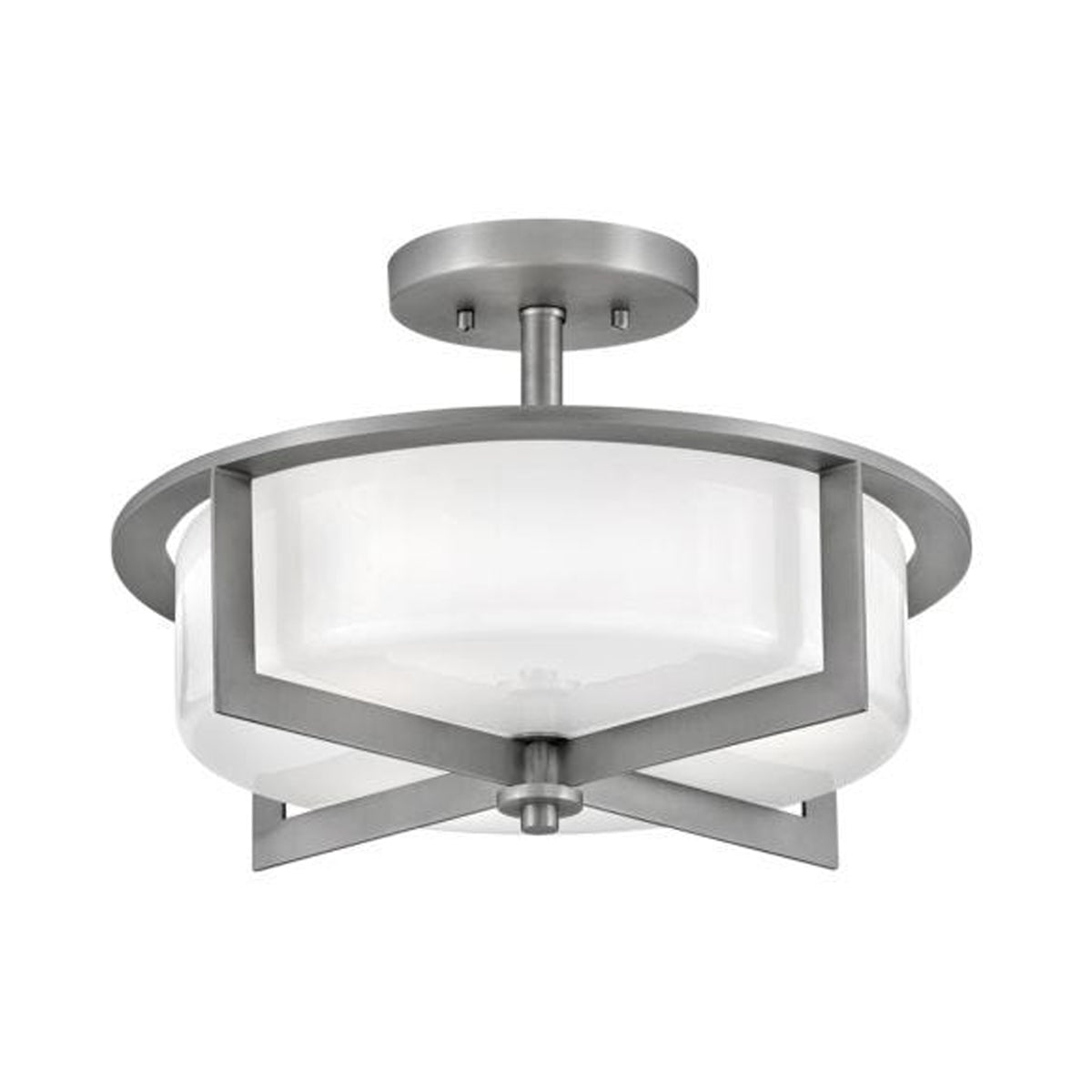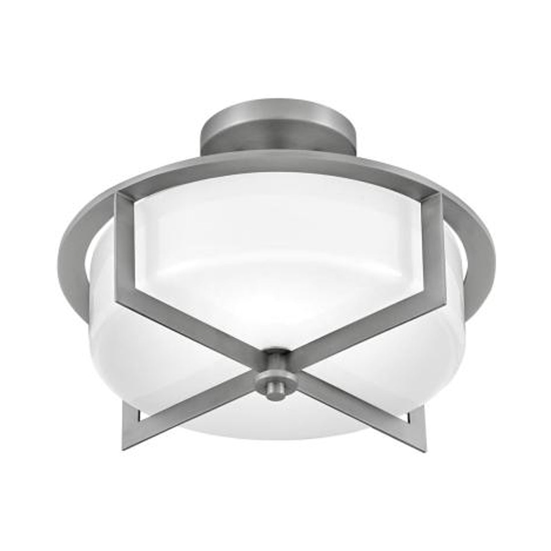 Prominent crossbars bring robust energy and style to the elegant Baxley Semi-Flush Mount Ceiling Light from Hinkley. Perfect for a modern home office or elegant entry, the fixture pairs its eye-catching design with an opal glass diffuser complete with rounded edges for a soft, inviting ambiance. A chic choice for your transitional or contemporary home.