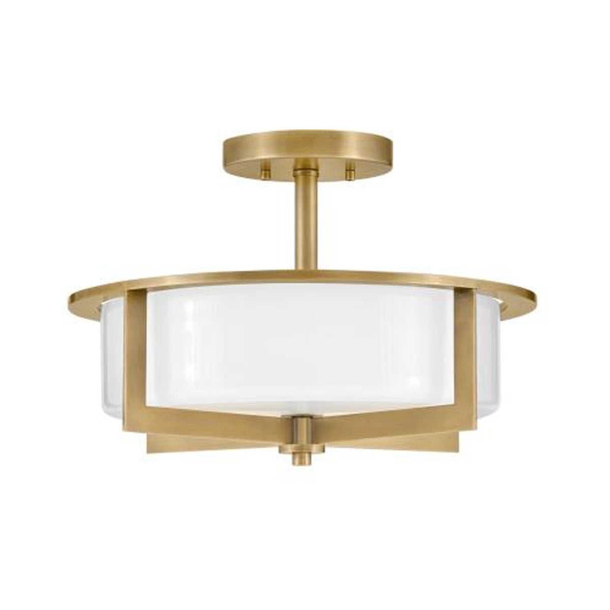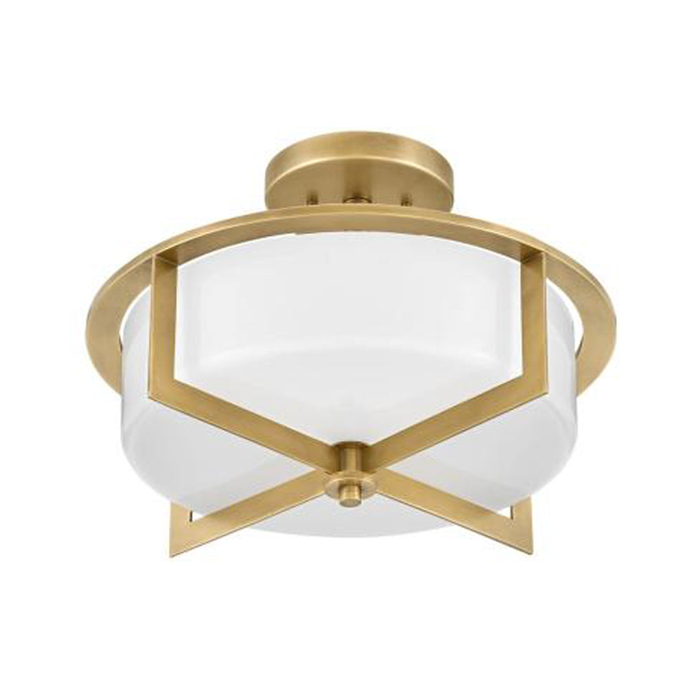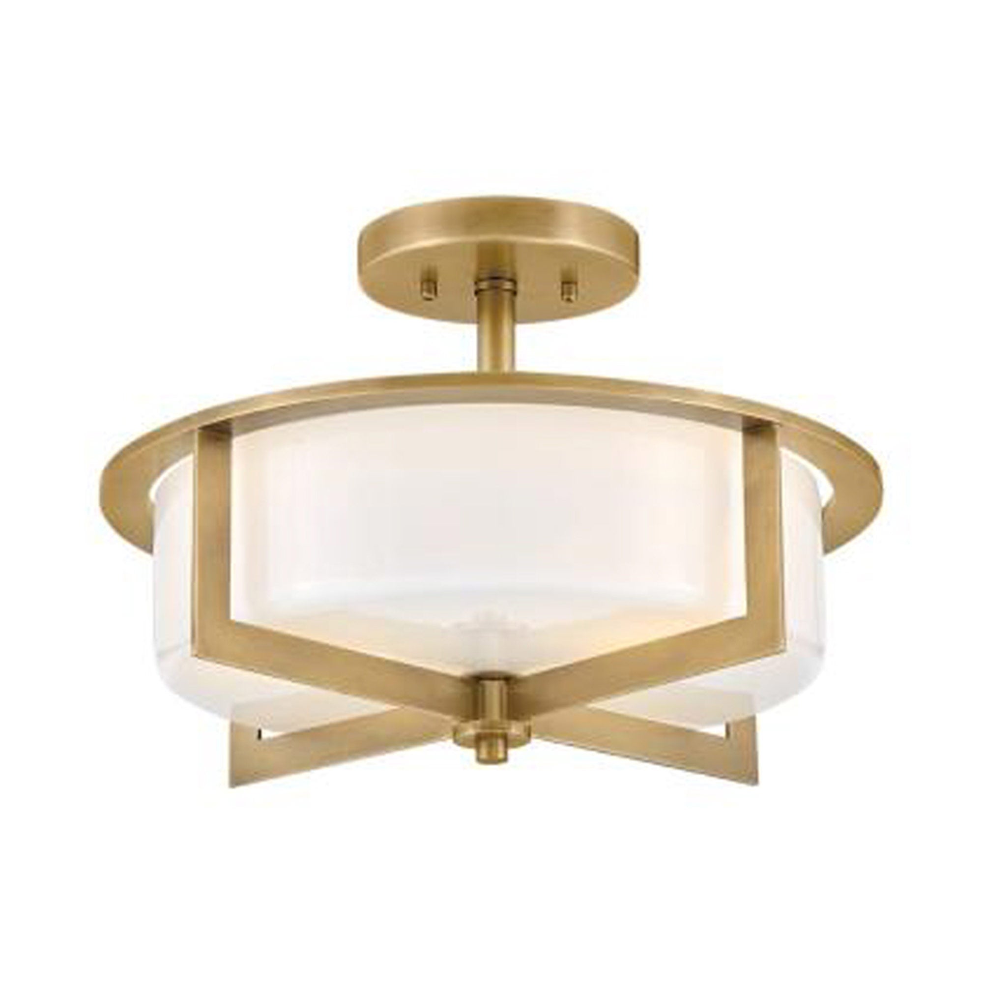 Prominent crossbars bring robust energy and style to the elegant Baxley Semi-Flush Mount Ceiling Light from Hinkley. Perfect for a modern home office or elegant entry, the fixture pairs its eye-catching design with an opal glass diffuser complete with rounded edges for a soft, inviting ambiance. A chic choice for your transitional or contemporary home.
