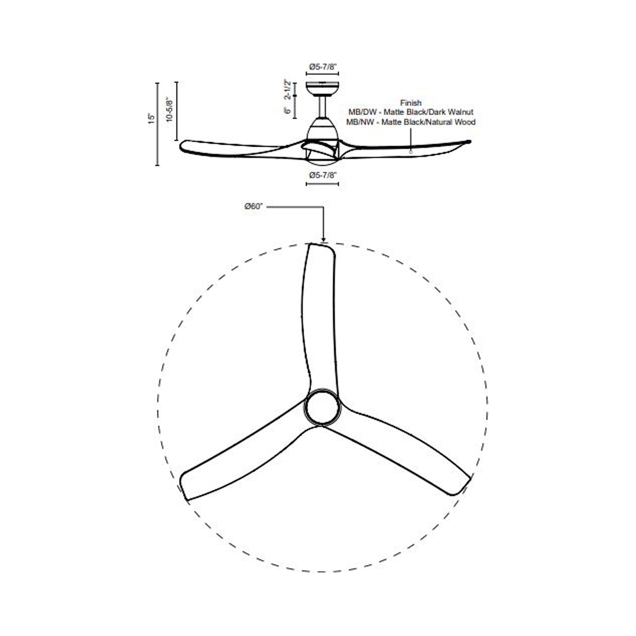 A rustic look with coastal style implications offers a fresh feel in a casual space as the Baylor Ceiling Fan from Kuzco Lighting delivers a richness with comfort and easy living in mind. This three-blade fan offers sleek, contoured wood blades with metal framing and details. Simple minimalism works beautifully in a fixture with extra convenience in remote operation.