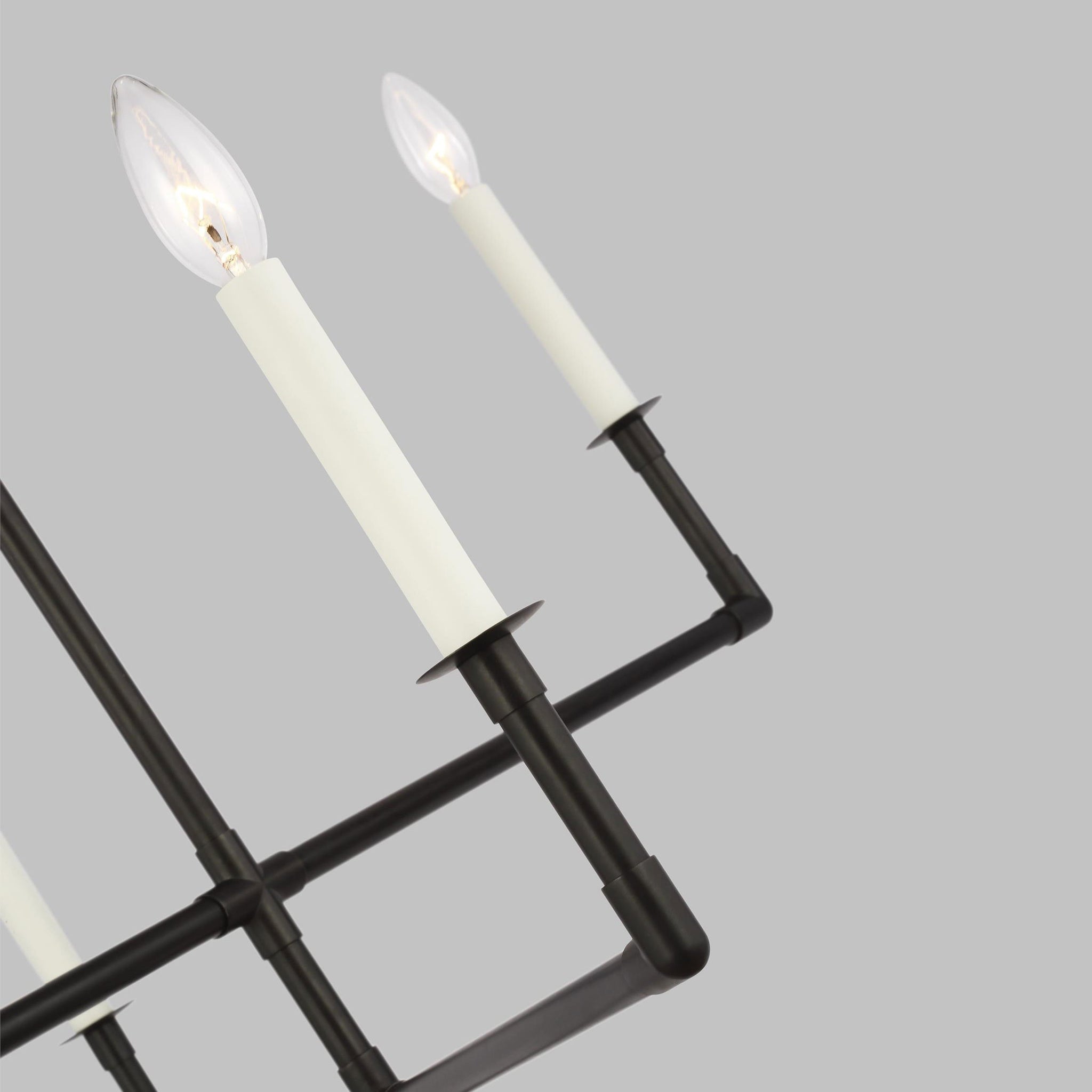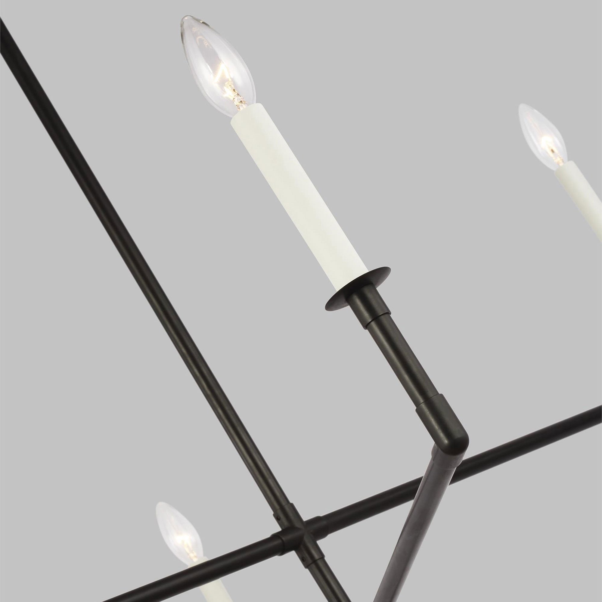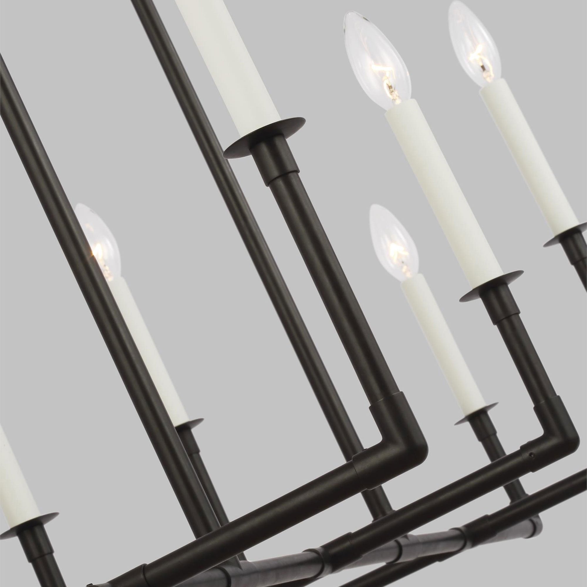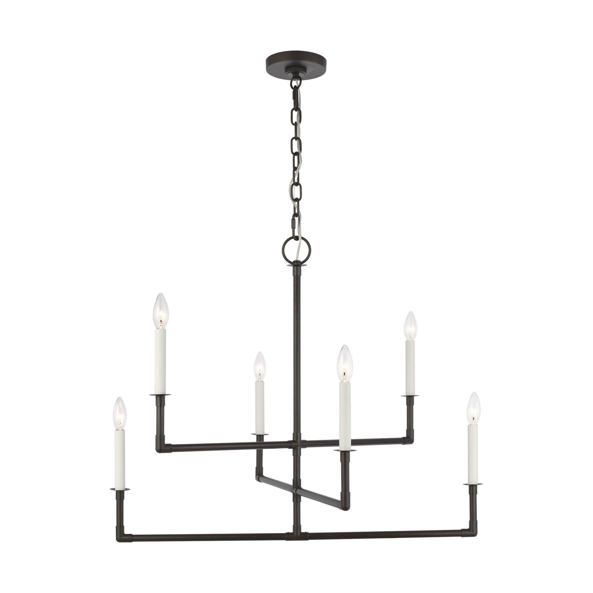 Minimalist framework pairs with industrial influence and candle-style lights to bring superb style to the Bayview Chandelier from Visual Comfort Studio.