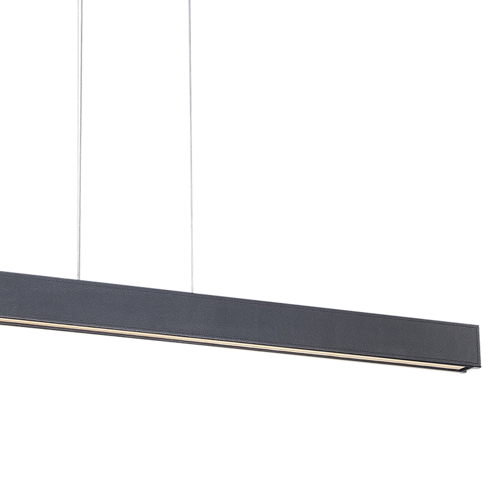 Tightly bound in supple pebble-grain leather, with a narrow, linear form, this pendant is the ultimate role player, providing bright, seductive light in office spaces and hotels along with commercial and residential applications. Full-range dimming gives you complete control over highly efficient cutting-edge LED light that’s always at your beck and call.