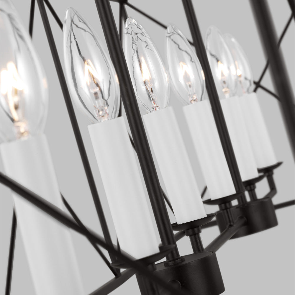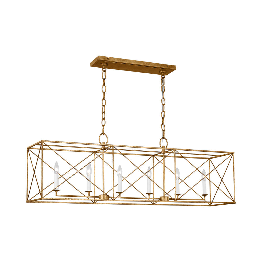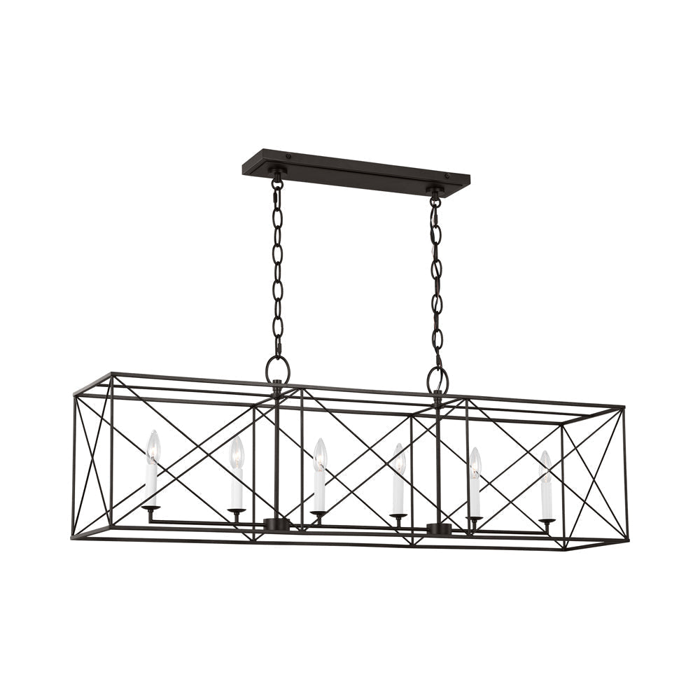 Simple X-cross accents play up the casual, modern farmhouse sensibilities of the Beatrix Linear Pendant Light from Visual Comfort Studio. Eye-catching over a kitchen island, the pendant features a crisp, angular profile that's light and open, allowing bright illumination from six candelabra lights set within.