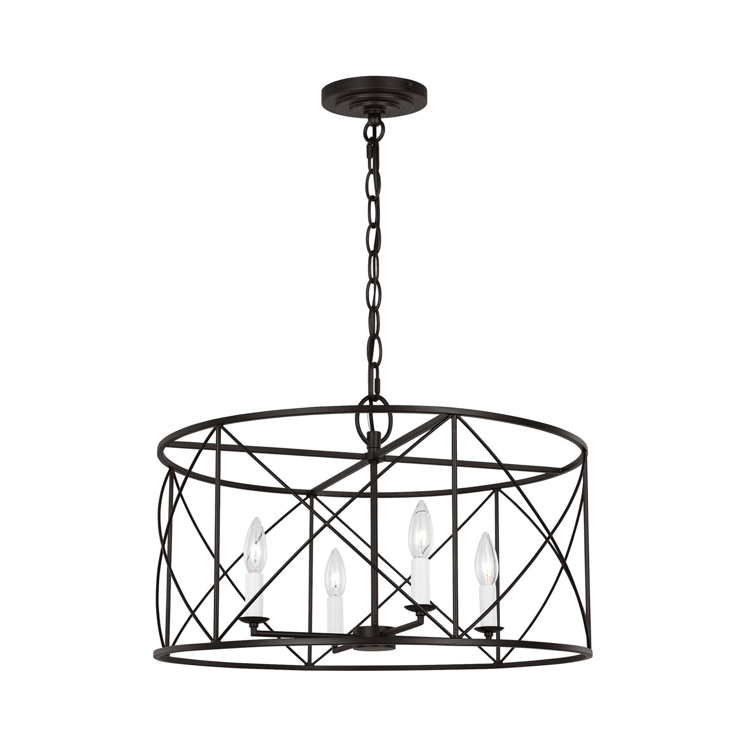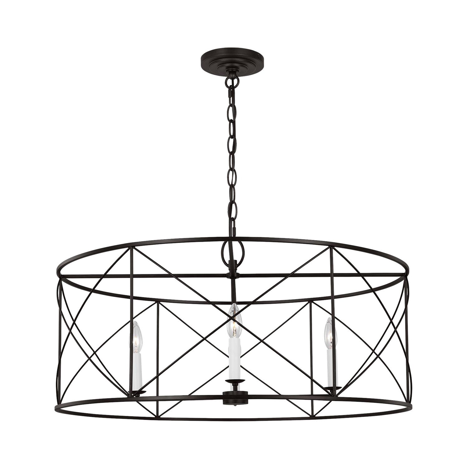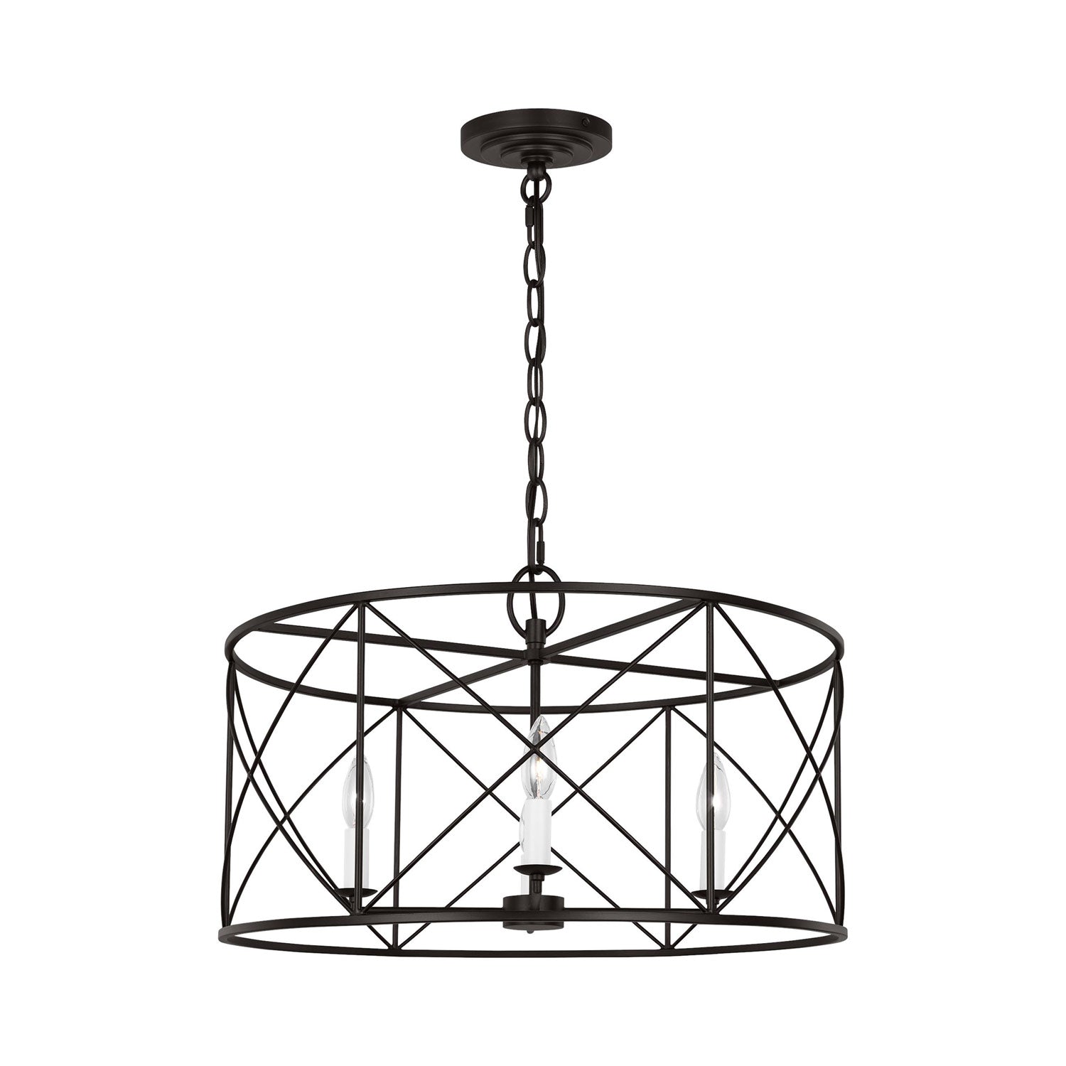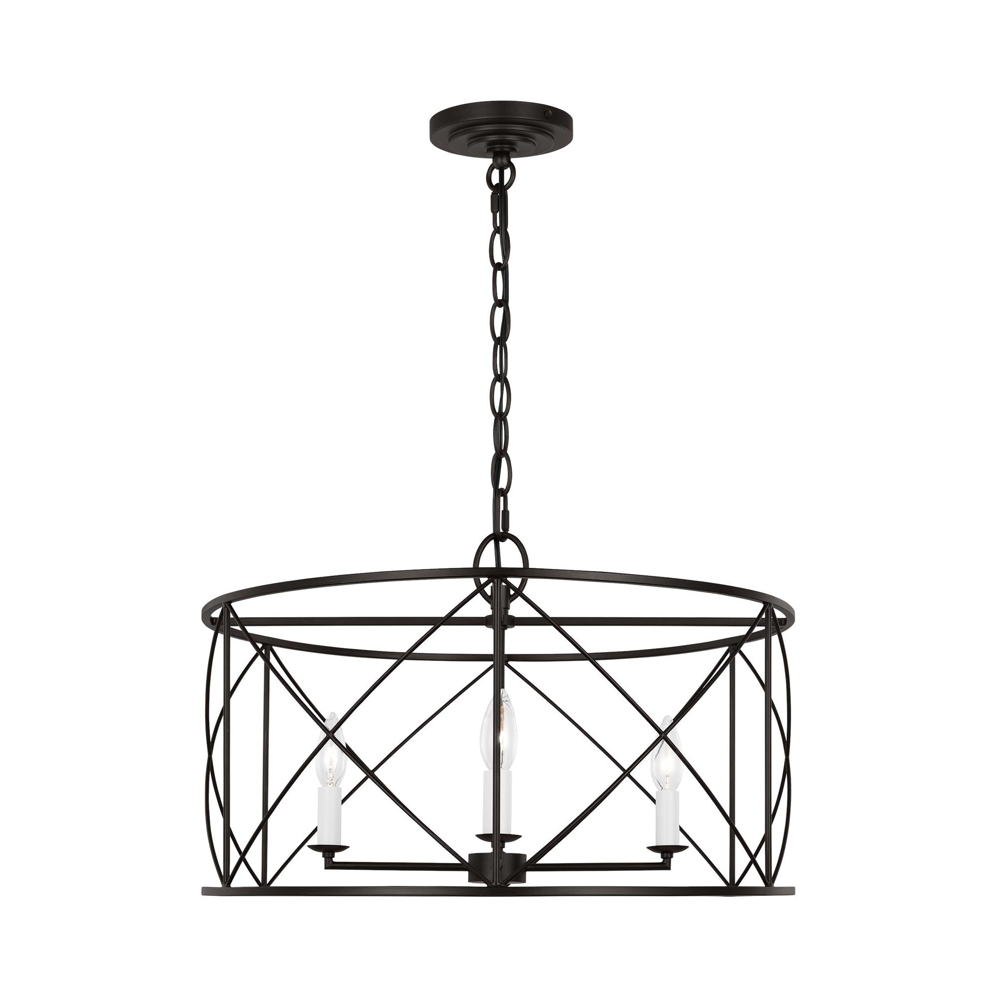 Elegant simplicity infuses the Beatrix Pendant Light from Visual Comfort Studio. Blending elements of modern farmhouse and casual contemporary, the fixture is at home in a variety of spaces, offering elegance with a down-to-earth sensibility. An open drum and slim X-cross details decorate the fixture, adding understated character in a living area or dining room.