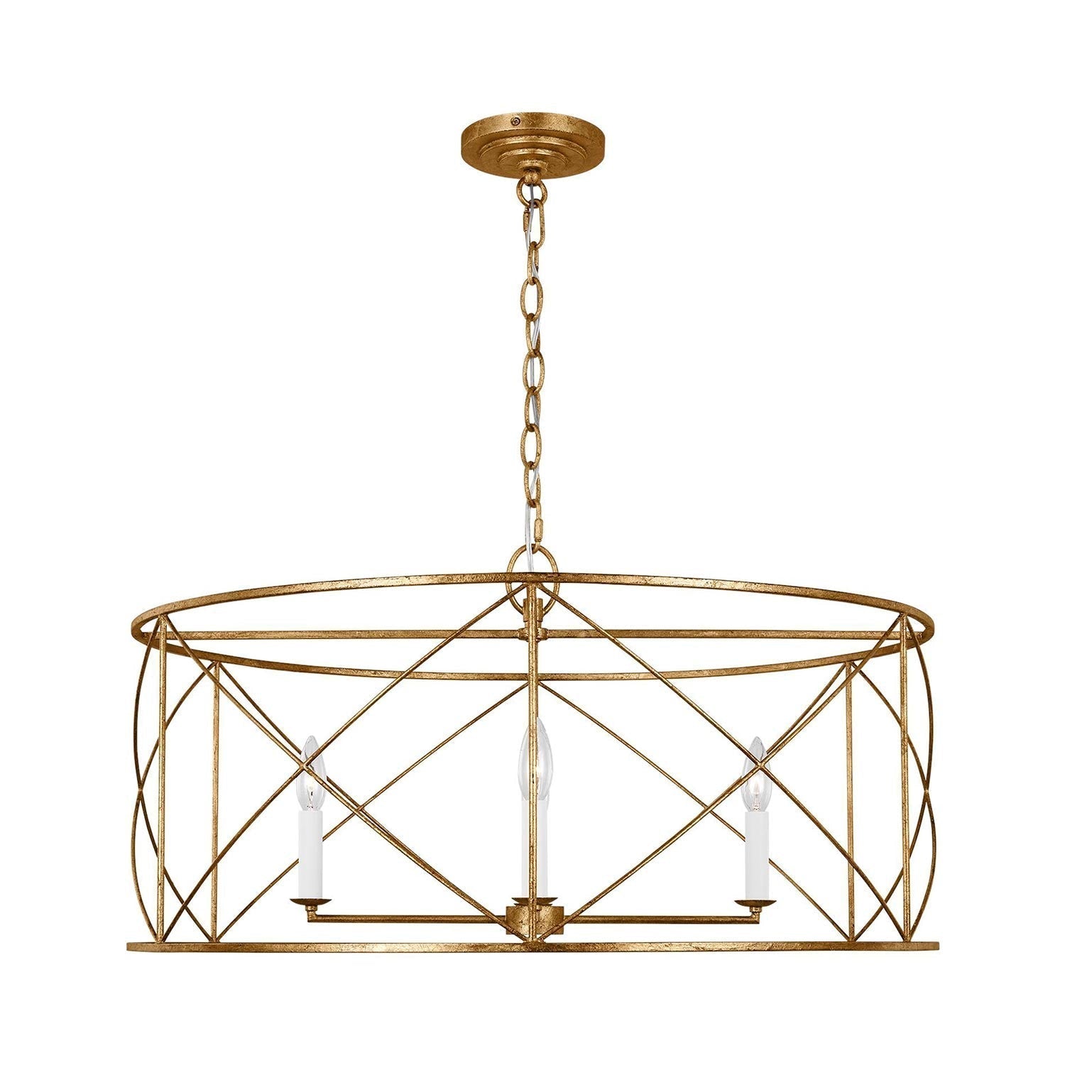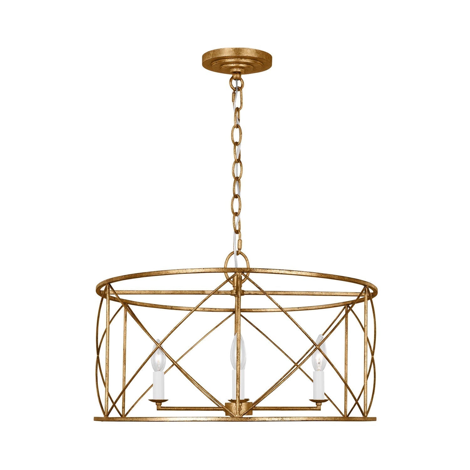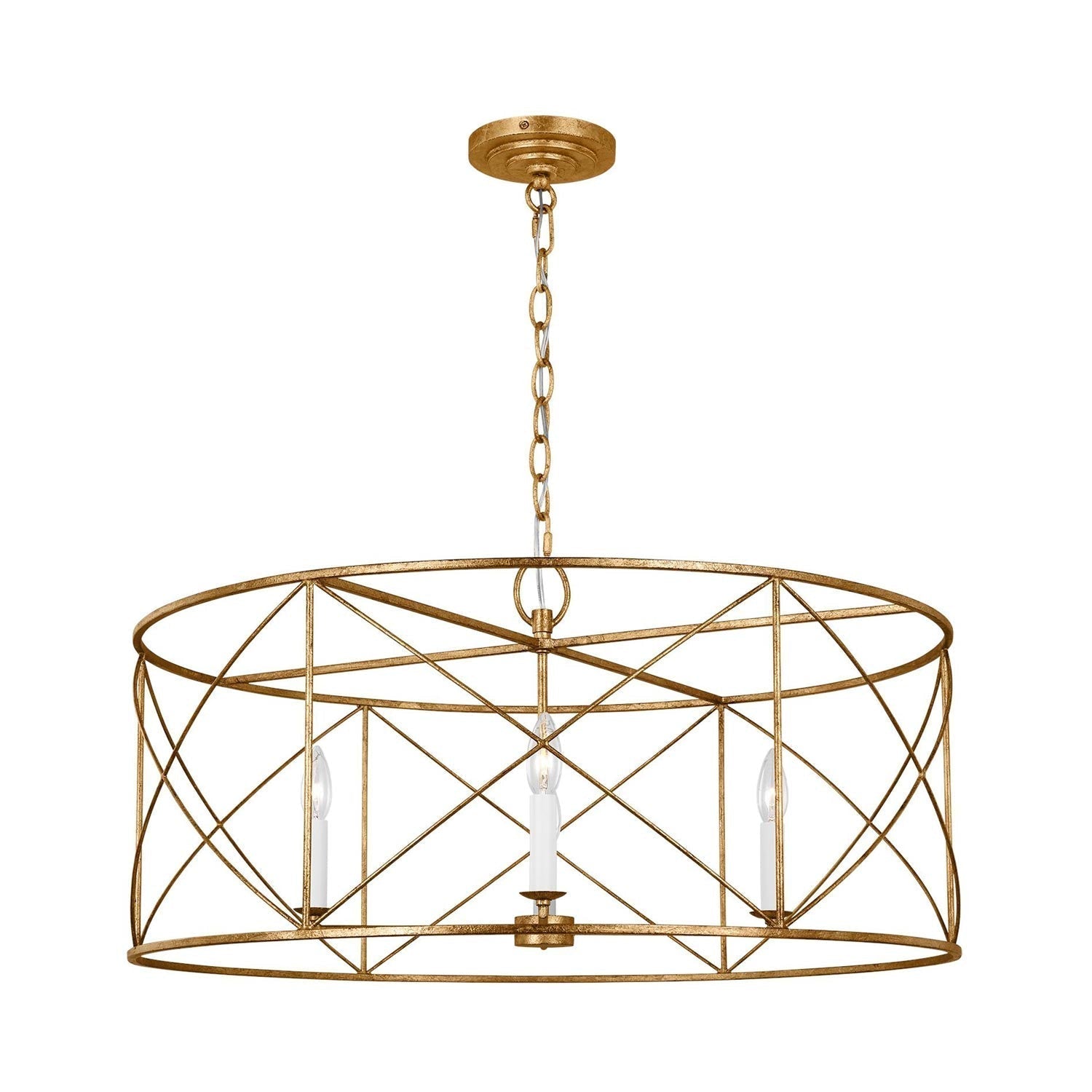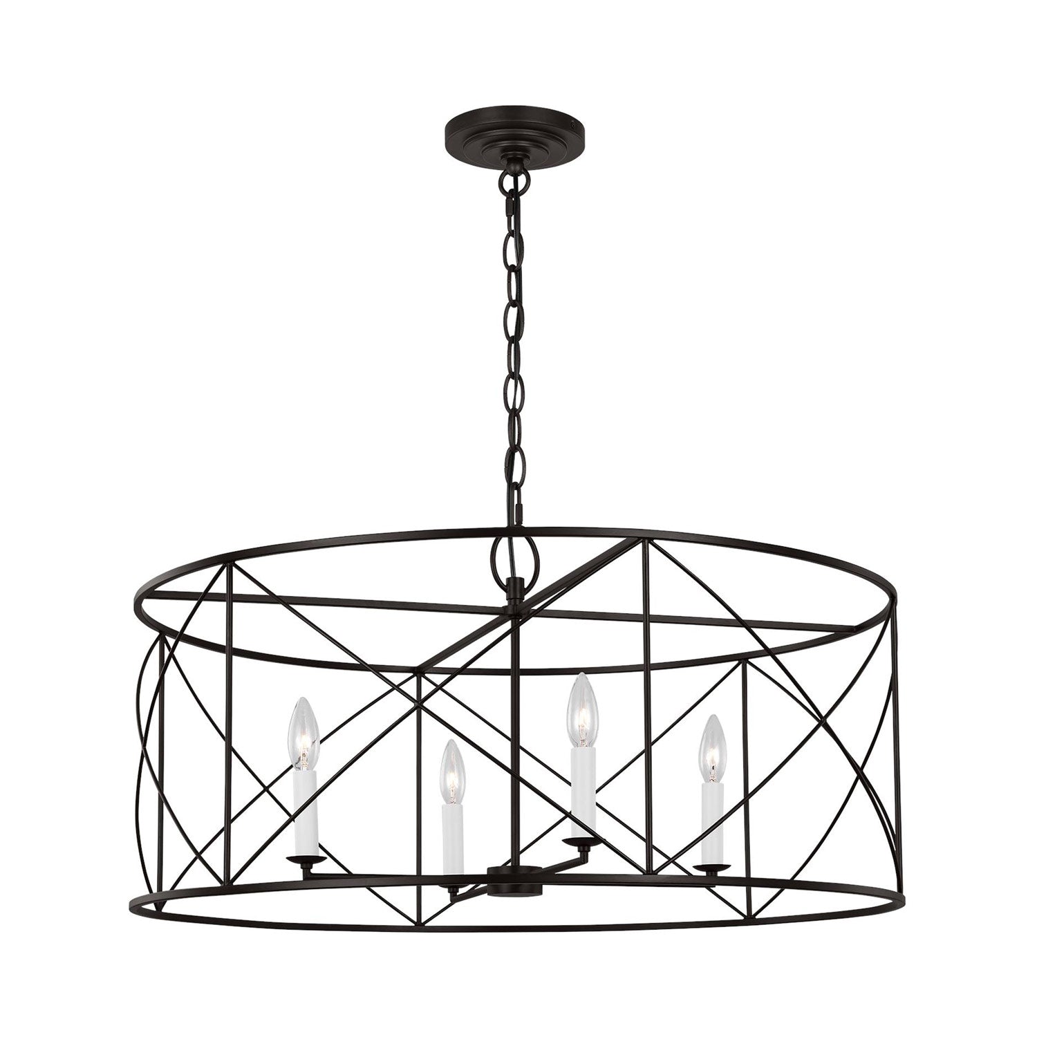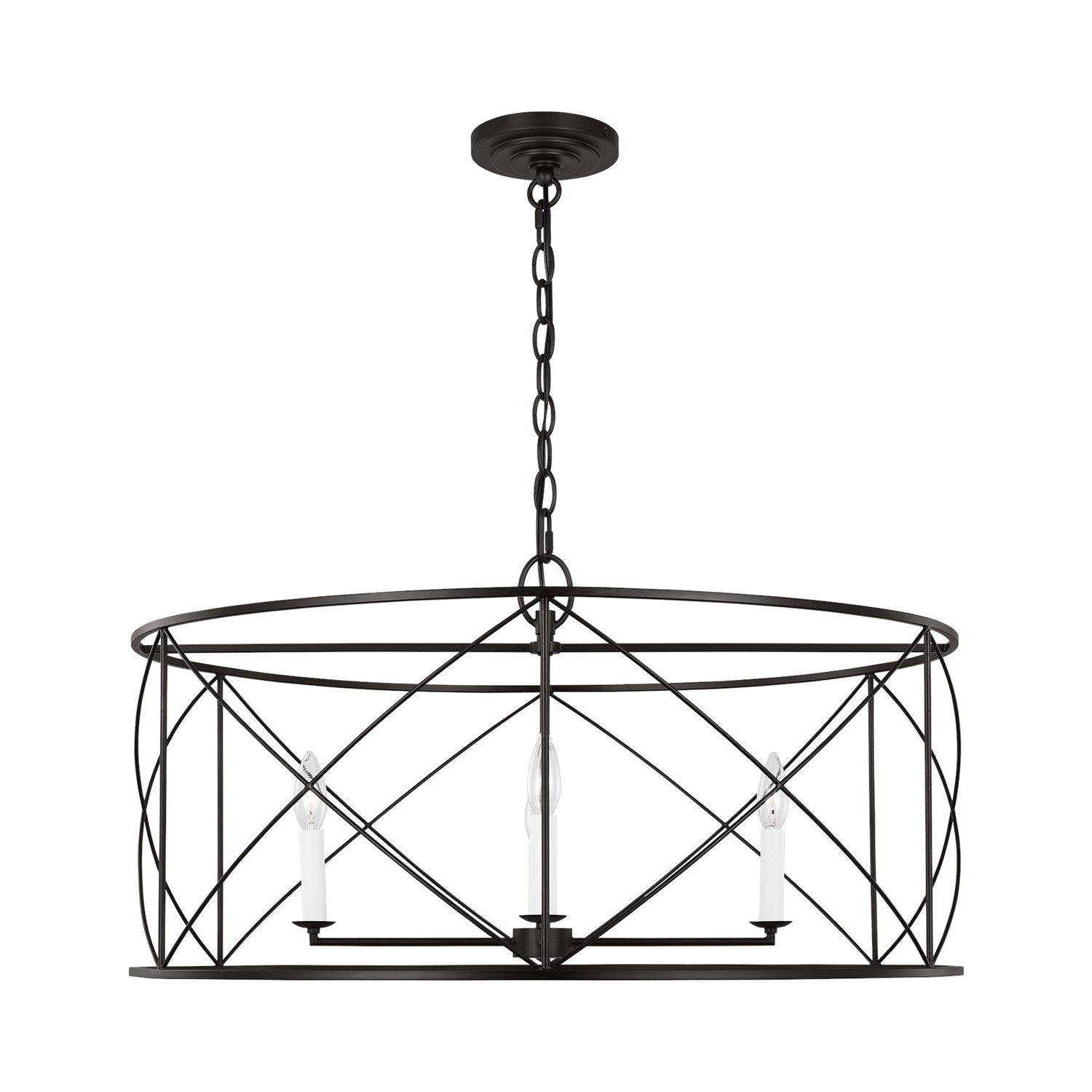 Elegant simplicity infuses the Beatrix Pendant Light from Visual Comfort Studio. Blending elements of modern farmhouse and casual contemporary, the fixture is at home in a variety of spaces, offering elegance with a down-to-earth sensibility. An open drum and slim X-cross details decorate the fixture, adding understated character in a living area or dining room.