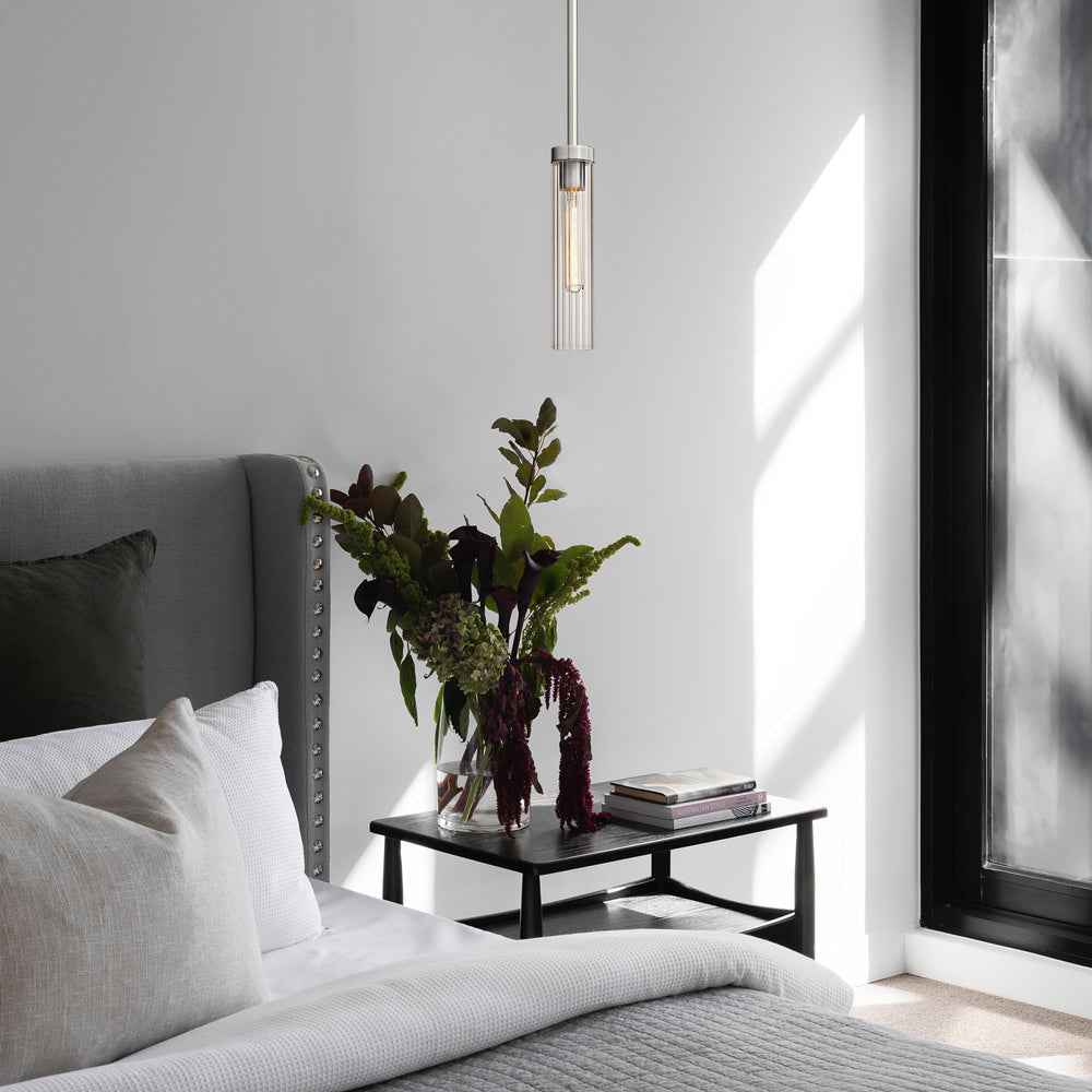 Dreamy elegance takes shape in a modest linear silhouette as the Beau Mini Pendant Light from Z-Lite offers a chic source of accent lighting perfect for a compact space. A streamlined, effortless design captures glam inspiration with a minimum of metal elements and a delicate clear glass shade. This sophisticated fixture offers a vertical visual separation for aesthetics, and much-needed illumination for reading or relaxation.