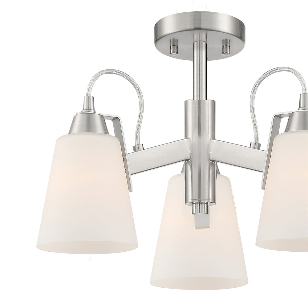 Romantic vibes create a swan song and silhouette in interior lighting as the Beckonridge Semi Flush Mount Ceiling Light from Minka Lavery transforms conventional design into an artisan feat. Gracefully curved arms on metal framing embellish the fluid style of this fixture that features etched glass shades.