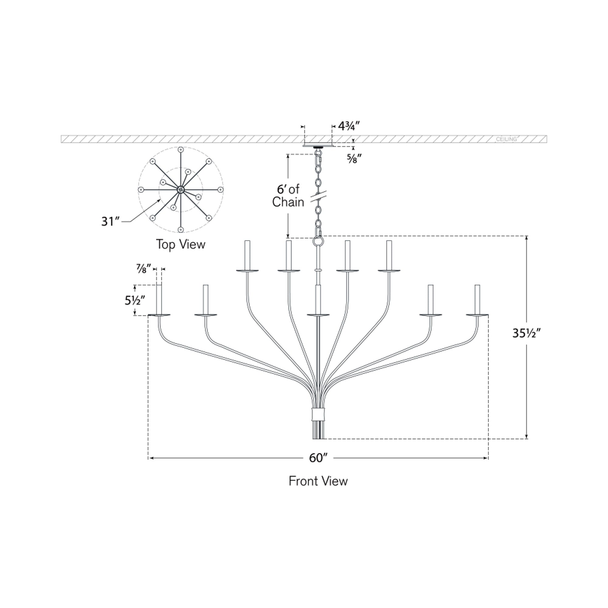 - 12-Light: 12 X 5.5W 120V E12(candelabra base) Type B LED lamps (not included)
