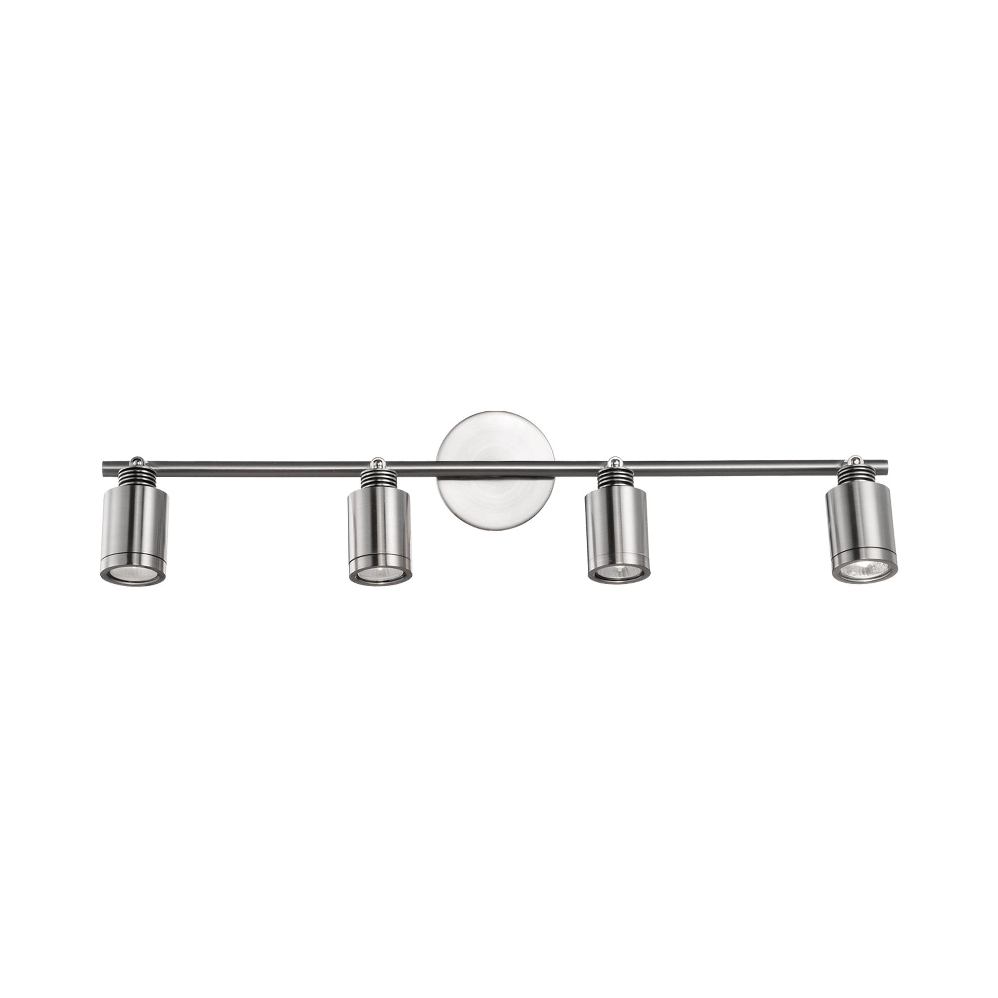 Four lamp fixed monorail with heavy gauge steel head and brushed nickel finish.