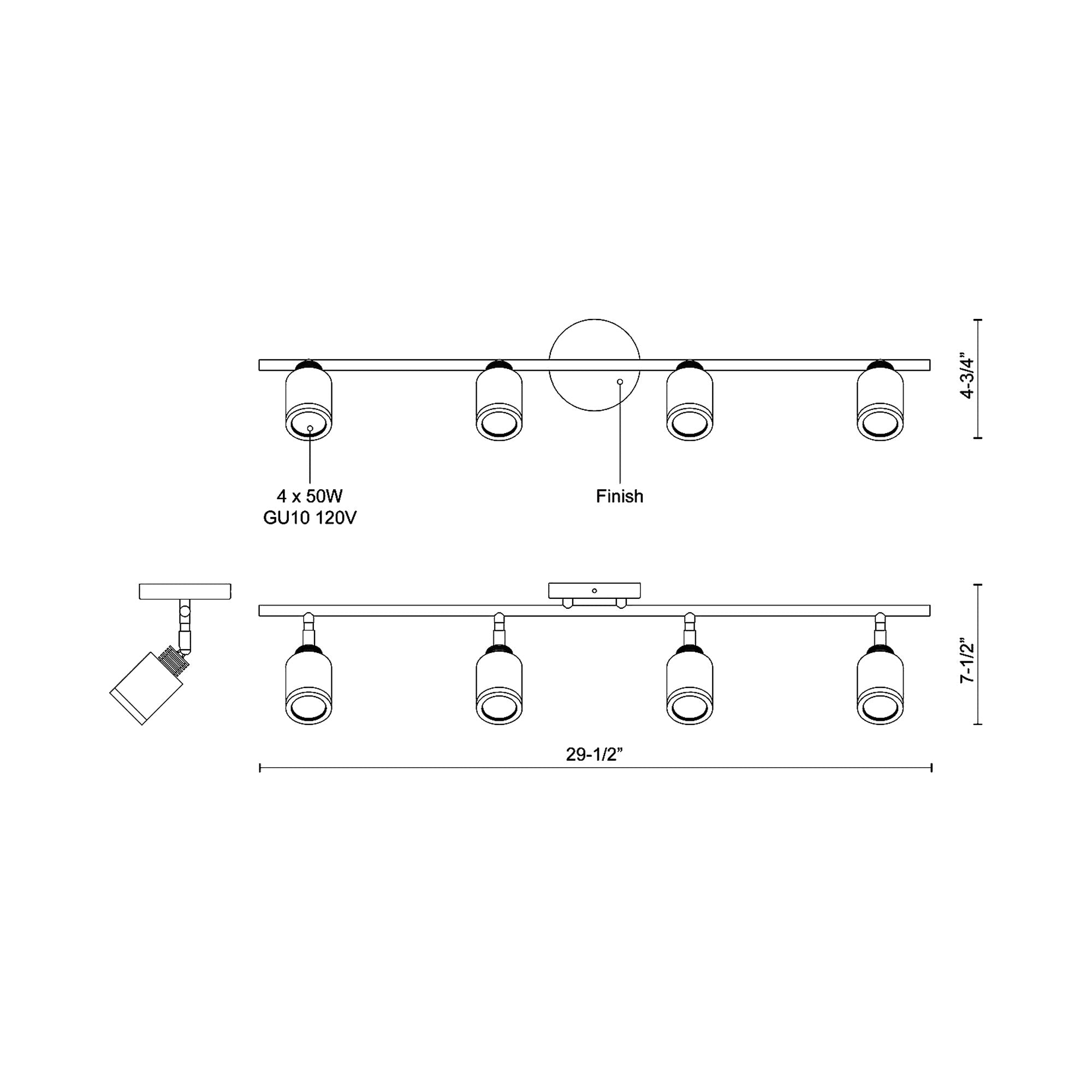 - 4 X 50W 120V GU10 MR16 halogen lamps (not included)