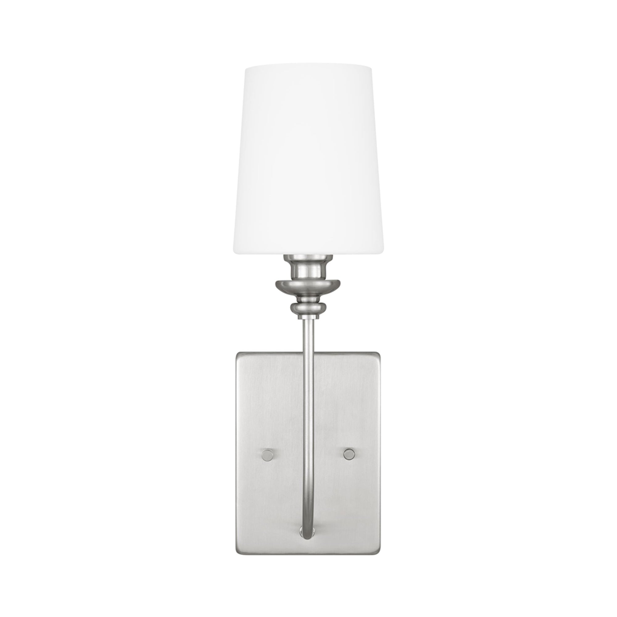 the Bellevue Bath Wall Light from Generation Lighting flips a switch with style motif, turning a conventional shaded lamp design into a foundry-inspired industrial motif. Classic turned layers and straight lines put metal to use and maintains a low-key look with a touch of romantic detail.