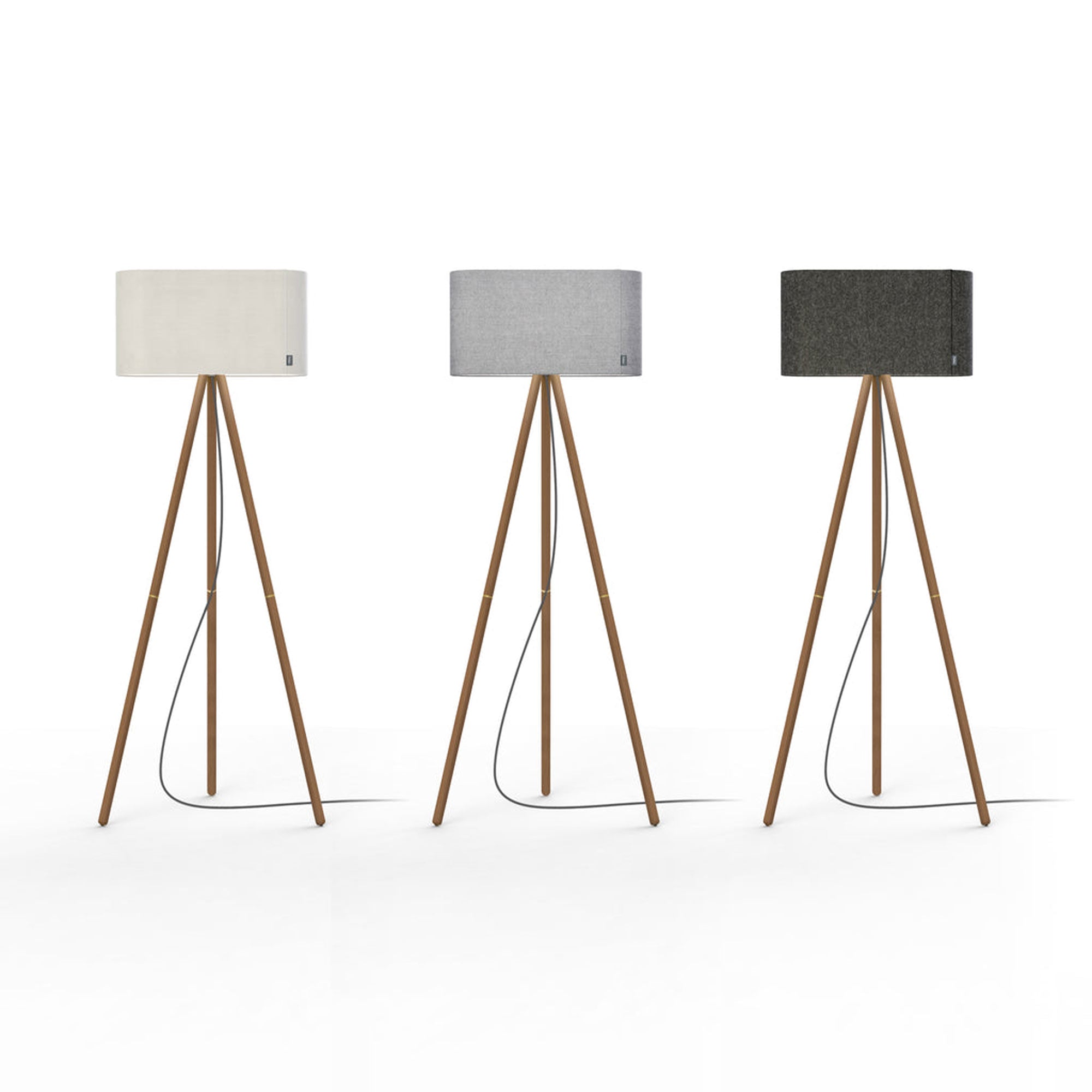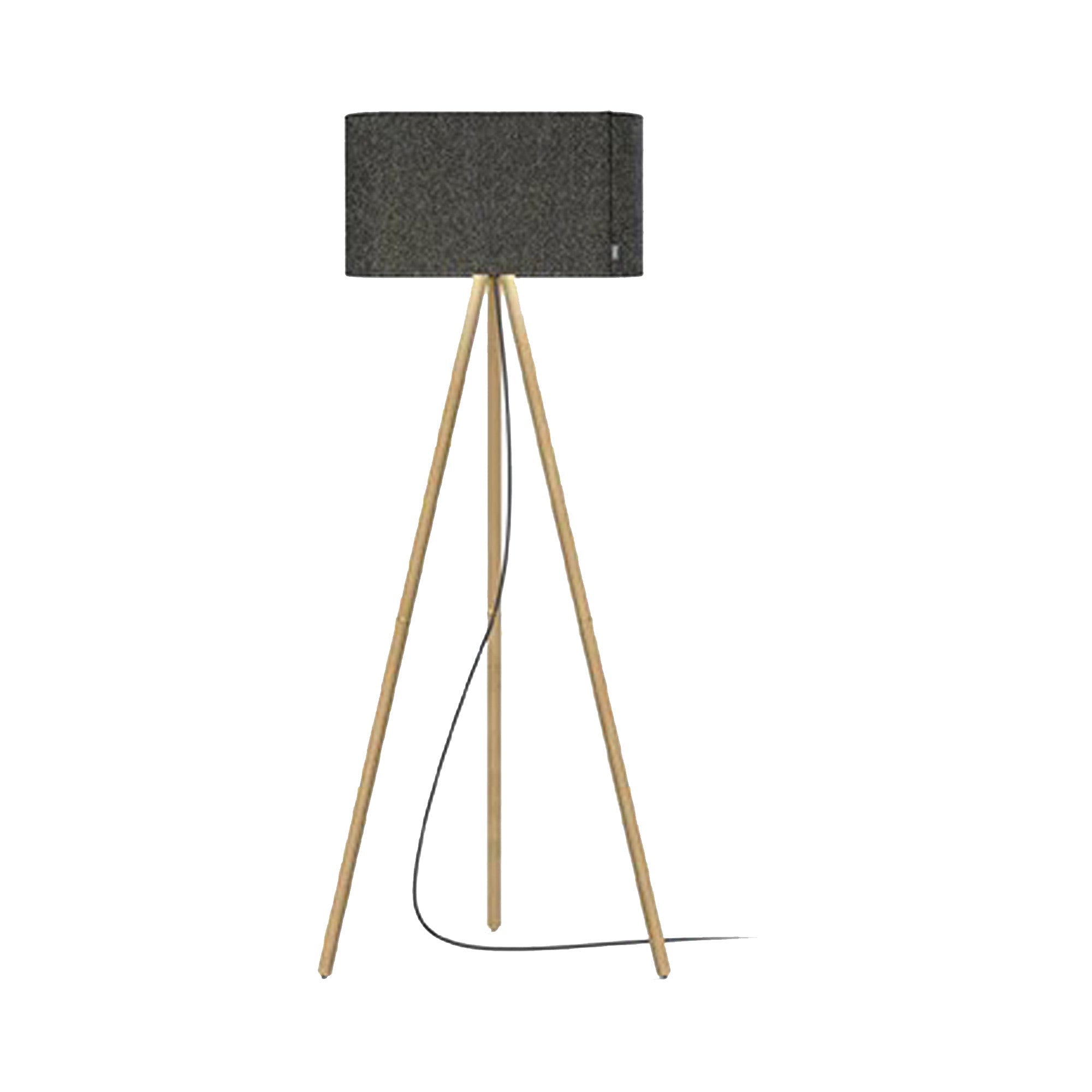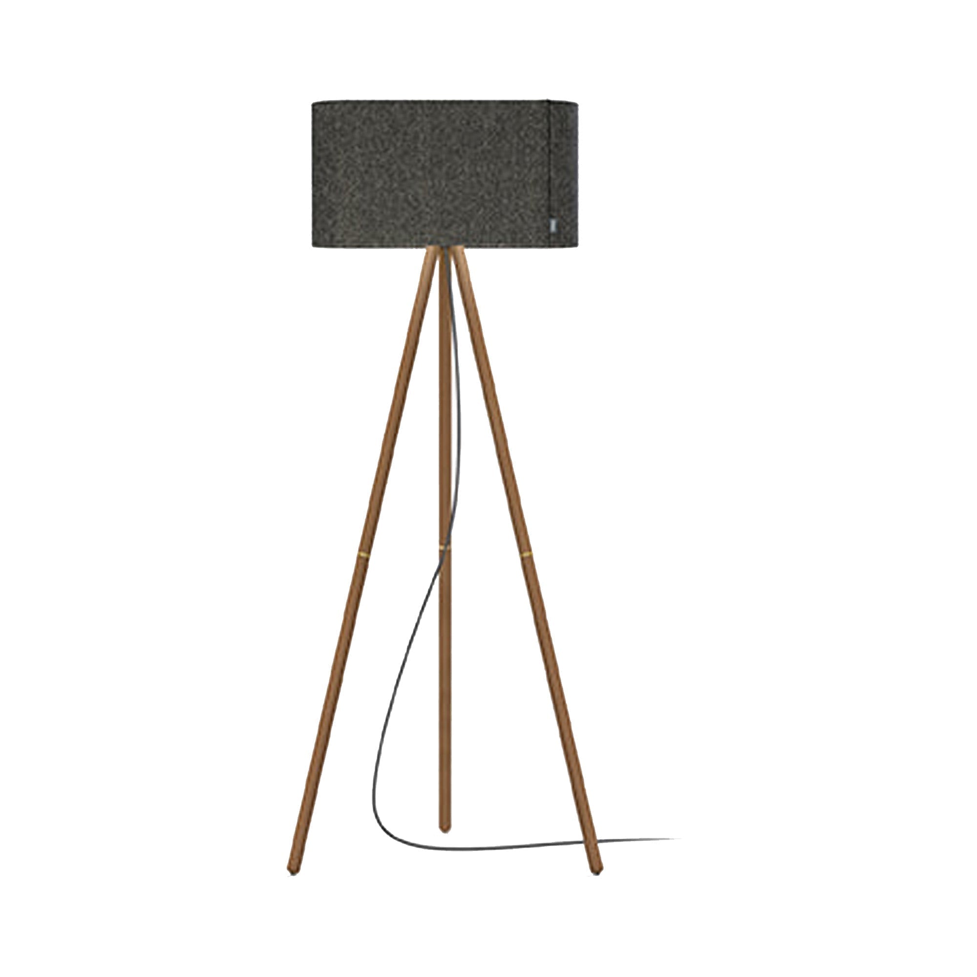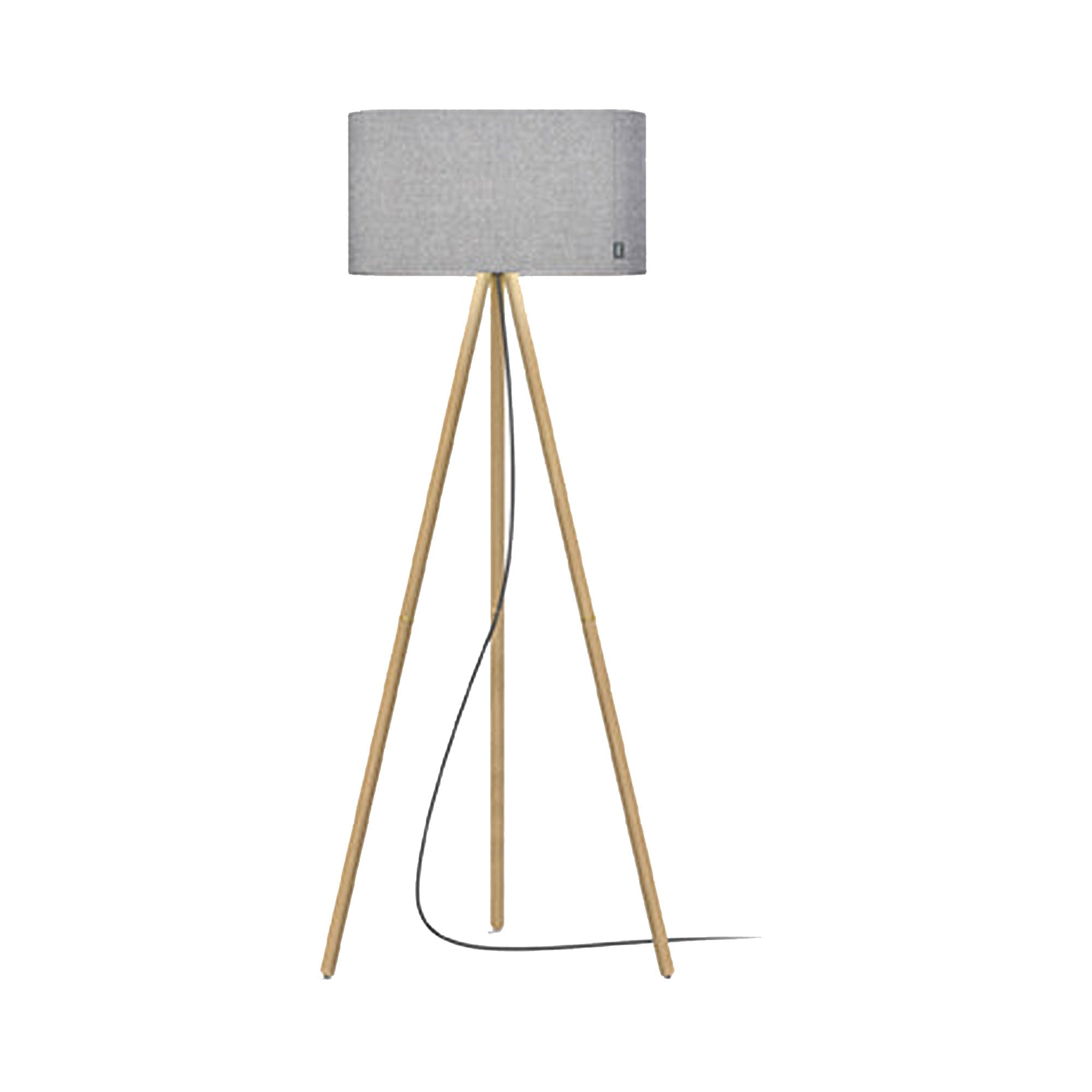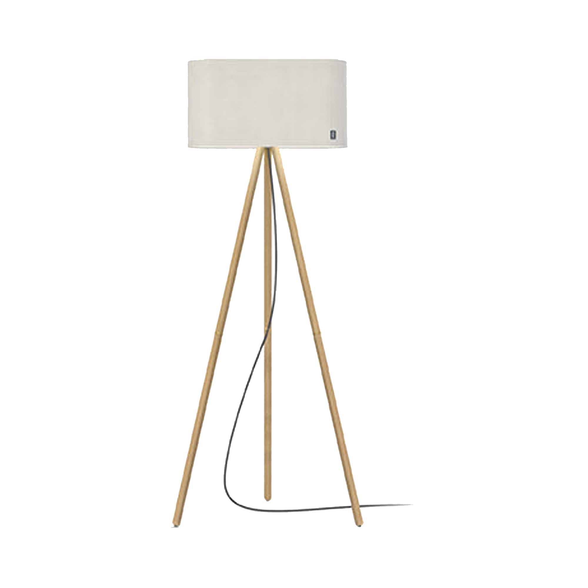 A trio of wood posts creates the iconic tripod silhouette of the lovely Belmont Floor Lamp from Pablo. Designed to make a statement in a living area or home office, it's topped with a chic shade complete with a raceway-inspired shape that lends clean, sleek sophistication to any room.