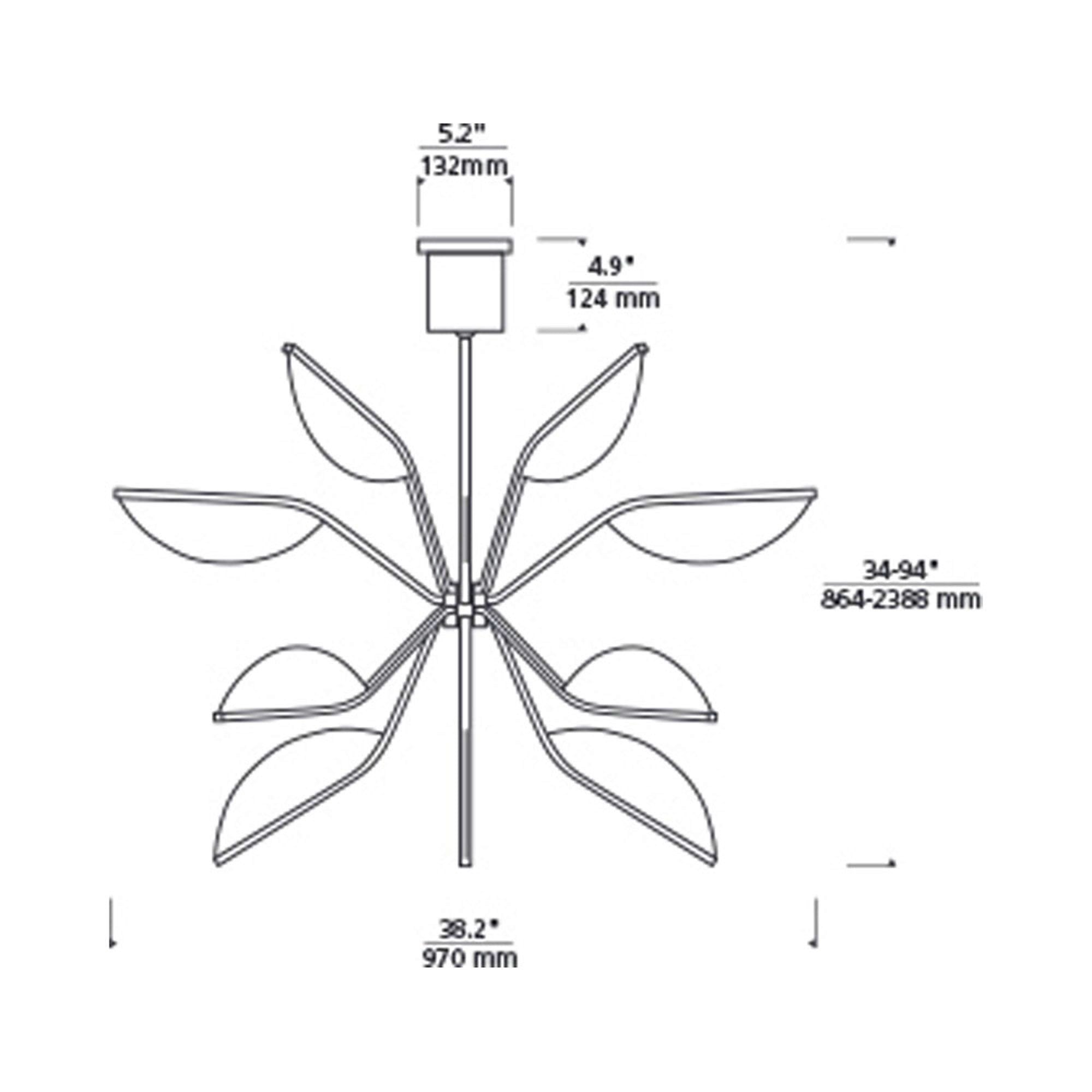 The Belterra LED Globe Chandelier by Sean Lavin for Visual Comfort Modern is inspired by the lotus flower. Petal-shaped LED light guides beautifully illuminate this contemporary design and capture the purity of the chandelier's graceful stem-work. Belterra provides a touch of contrast to the light guides when turned on and off. Offered in two elegant finishes, a Natural Brass that will patina over time and Matte Black. Available in multiple sizes to illuminate the space as a stand-alone piece or make a grand statement by installing in multiples. Lamping options are compatible with most dimmers. Refer to the Dimming Chart for more information.