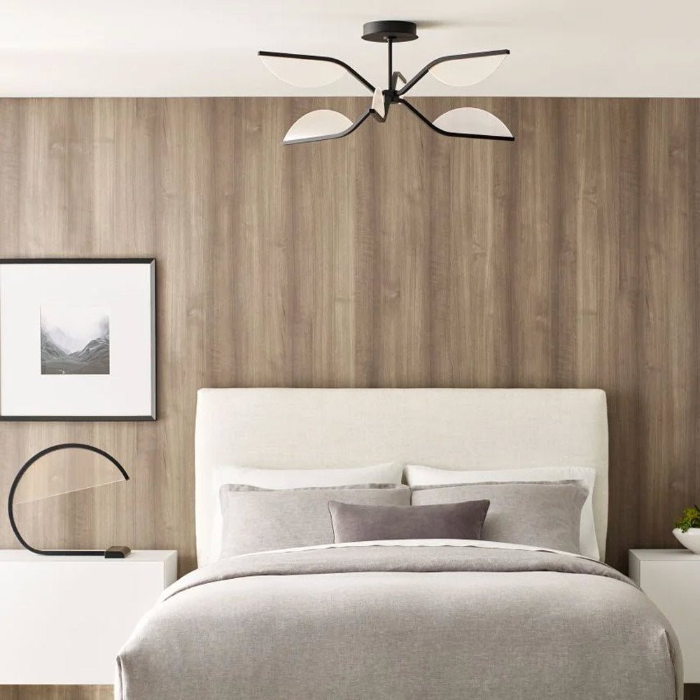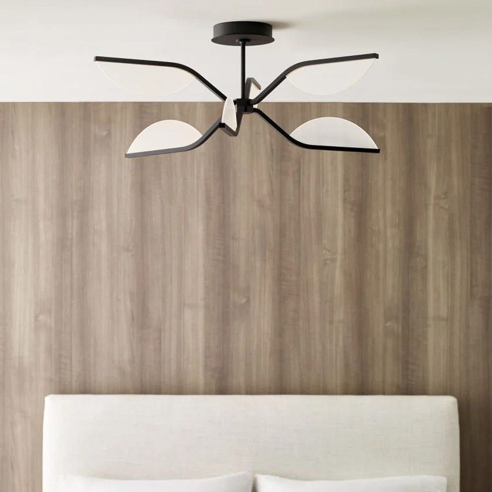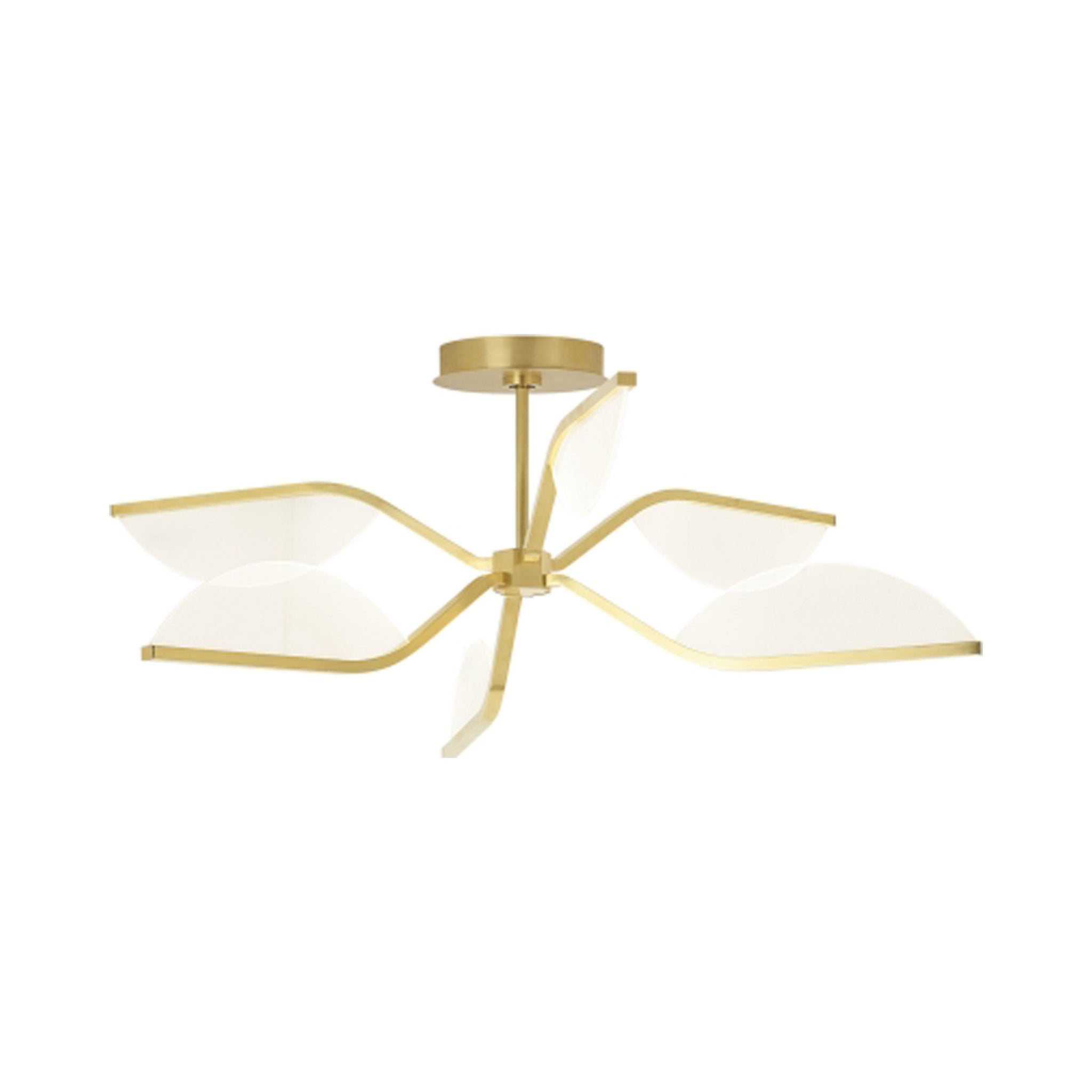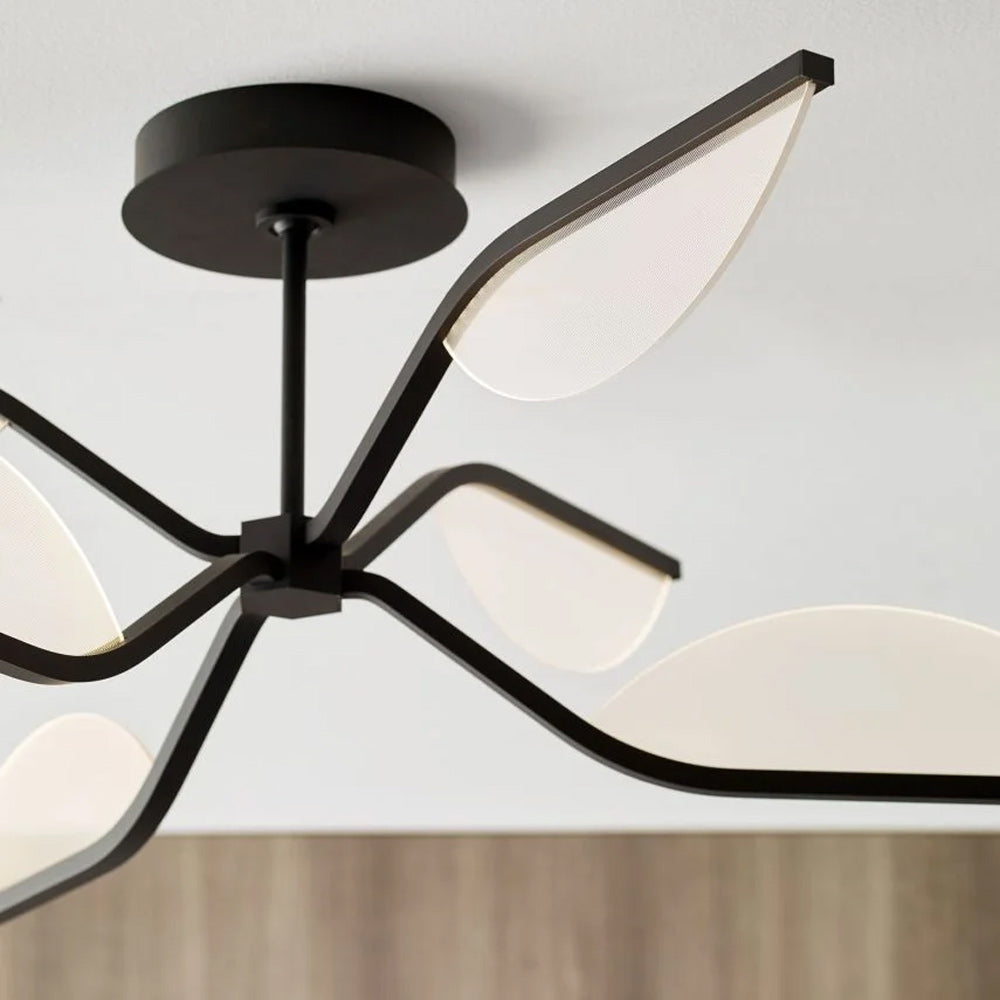 The Belterra LED Semi Flush Ceiling Light by Sean Lavin for Visual Comfort Modern is inspired by the lotus flower. Petal-shaped LED light guide panels beautifully illuminate this contemporary design and capture the purity of the chandelier's graceful stem-work. Designed with a minimal frame and offered in three elegant finishes, Belterra provides a touch of contrast when turned on and off. Ships with two 6" and four 12" stems providing flexibility to install close to the ceiling as a Flush Mount or hang lower from the ceiling as a Chandelier. The Belterra Family includes alternate fixture sizes to illuminate the space as a stand-alone piece or installed in multiples. Lamping options are compatible with most dimmers.