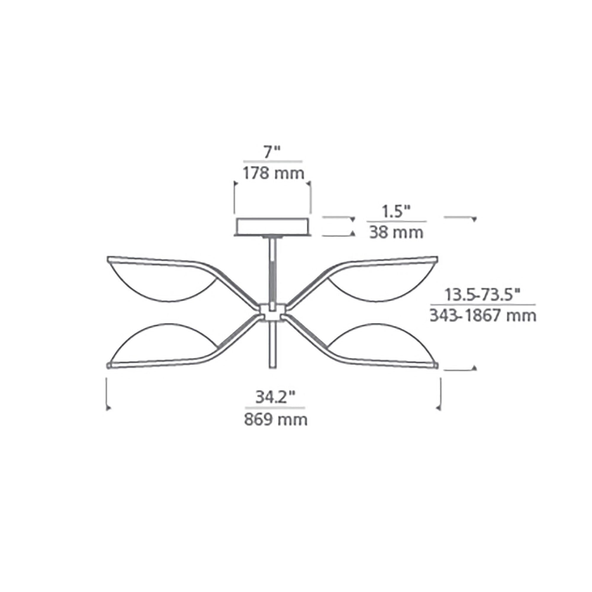 - Dimensions: 34.2"W X 10"H; 73.5" max height
