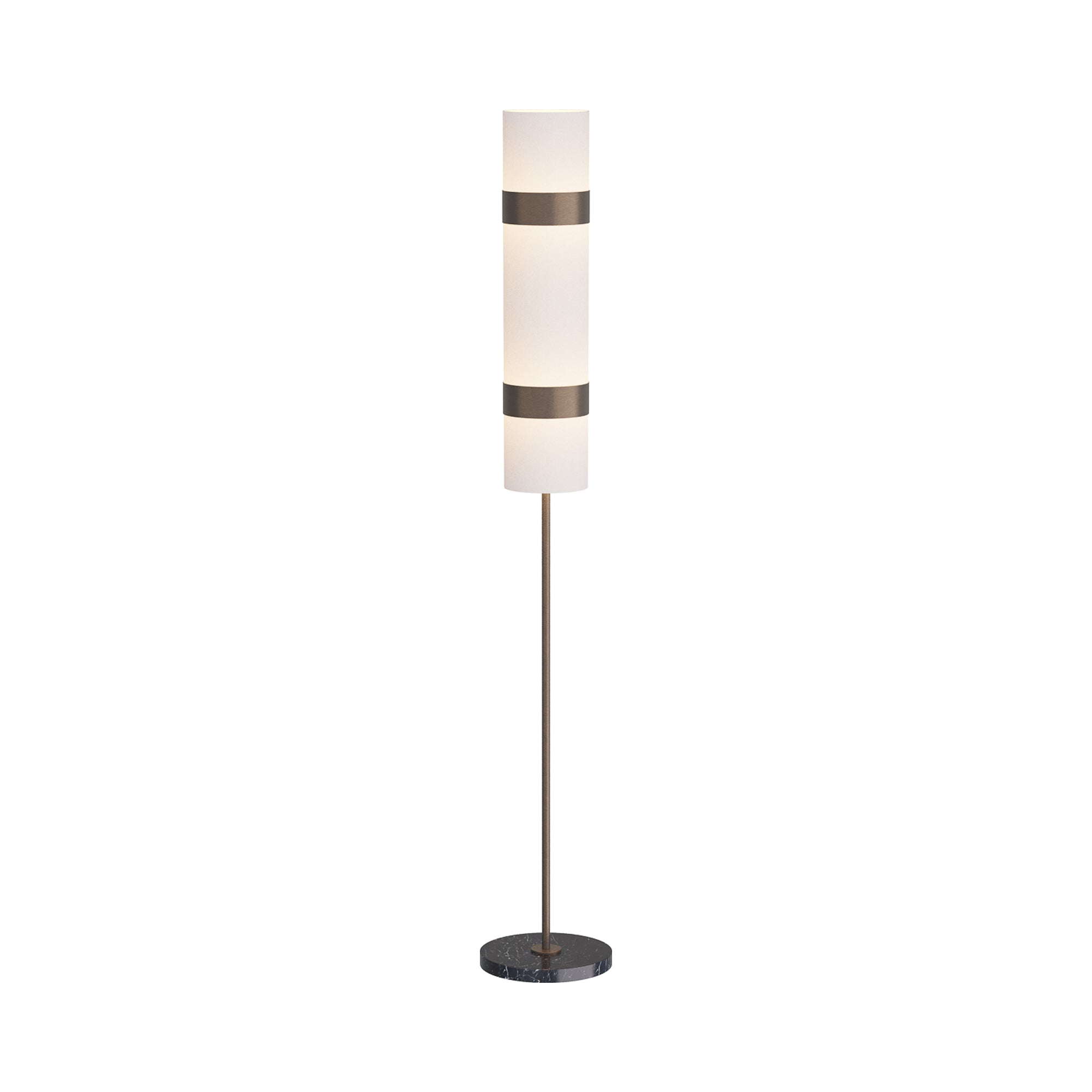 Minimalist retro design concepts produce a fashionable look beyond its detail as the Belton Floor Lamp from Arteriors keeps it simple. Long and lush, an unlined classic cylinder shade presents critical spatial optics from slender English bronze finish cuffs and a matching stem and base. Light diffusion is ethereal, complementing the soft organic aesthetics of a lamp suited to modern and transitional settings.