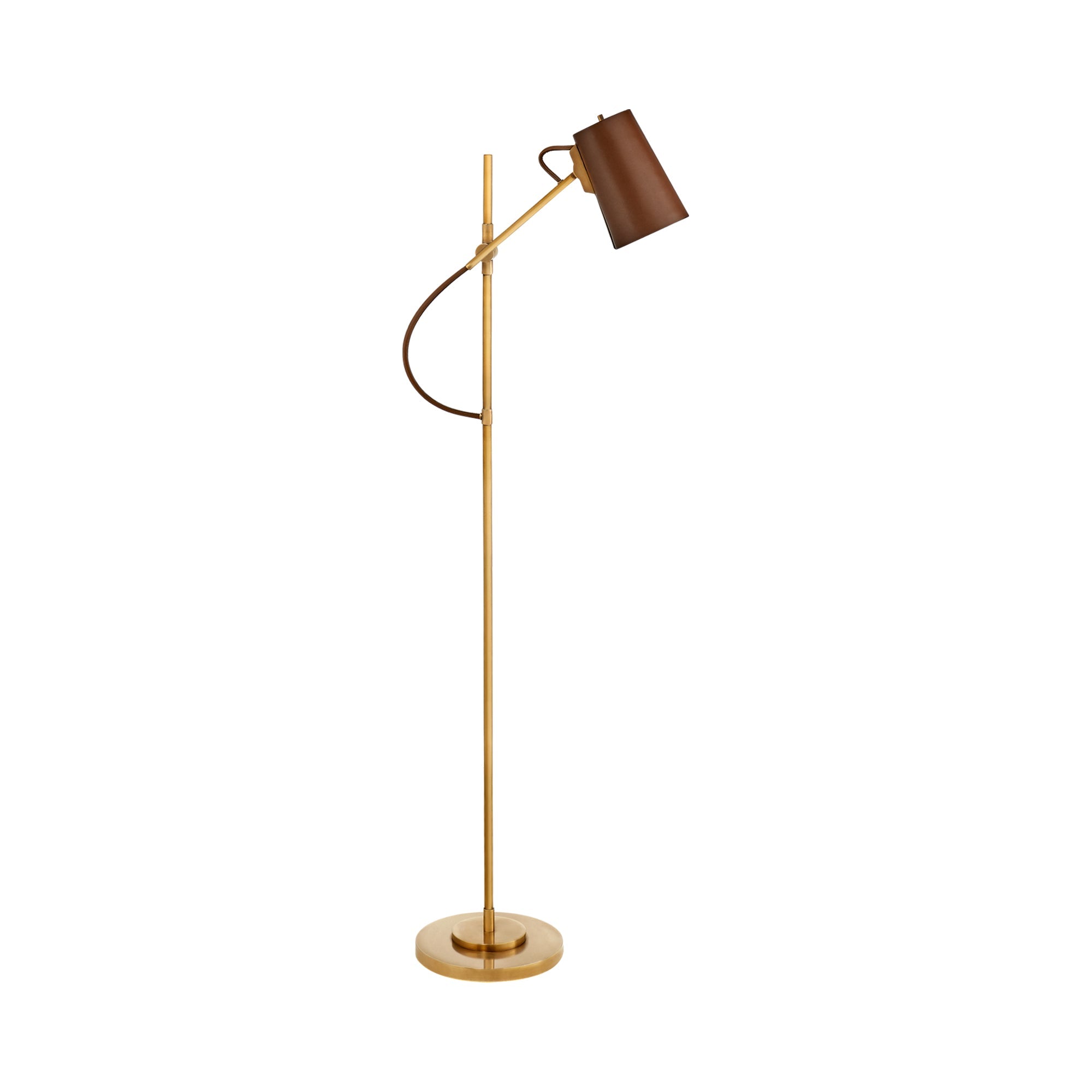 A touch studio; a bit industrial. The Benton Floor Lamp from Visual Comfort Signature makes a statement in living rooms and home offices with its no-nonsense design dressed up with charming accents. Metal framing with a leather-covered shade is fabulous on its own, but add adjustability for customized directed lighting and you have a superb choice.