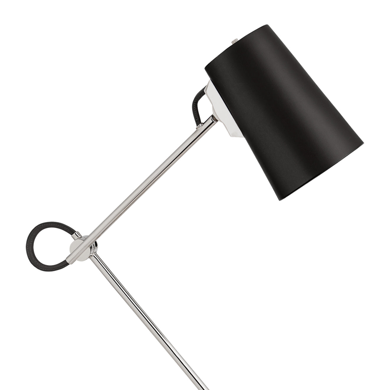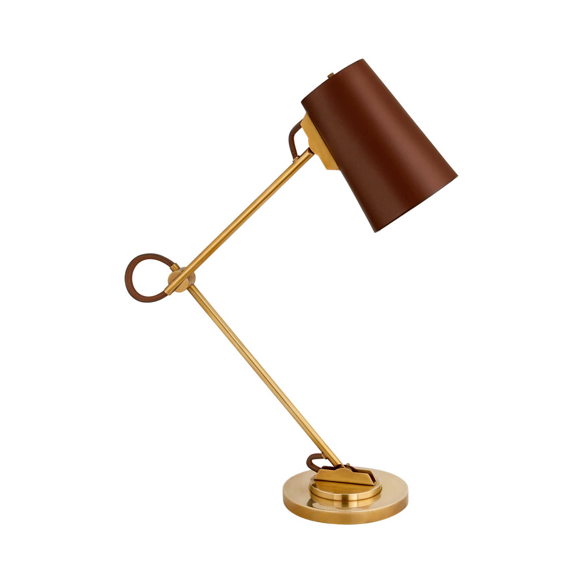 The Benton Table Lamp from Visual Comfort Signature invokes a design reflecting the workhorse of light sources with a charming design dating back in time. Its industrial flavor is unmistakable as it mimics studio fare, with metal framing and a leather-wrapped shade. Adjustability in both its stem and shade joints performs perfectly to direct illumination where needed.
