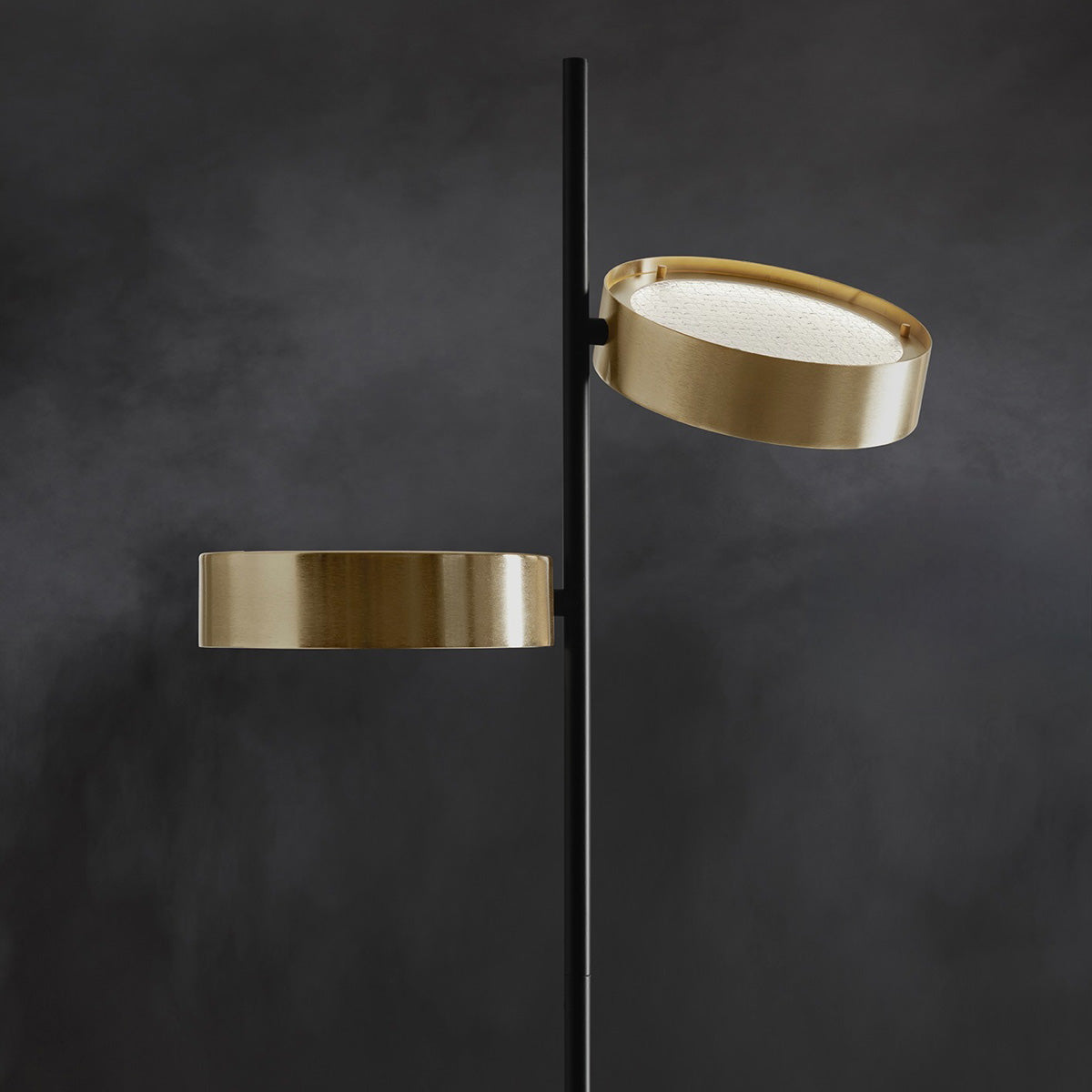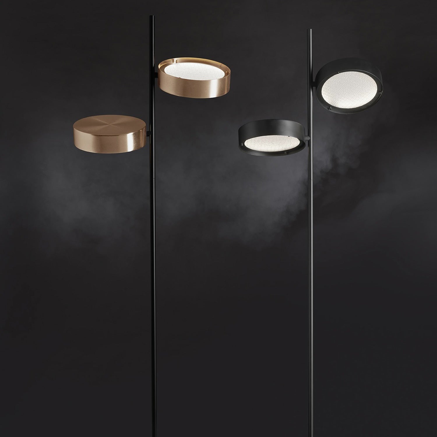 A quirky style motif is both Art Deco and industrial as it shapes the Berlin LED Floor Lamp from Oluce. Make the most of task lighting to energize a home office or living space with an energy-efficient lamp featuring sleek metal construction with an anodized finish. Round metal shades add tucked in diffusers as they provide adjustability for ideally targeted lighting.