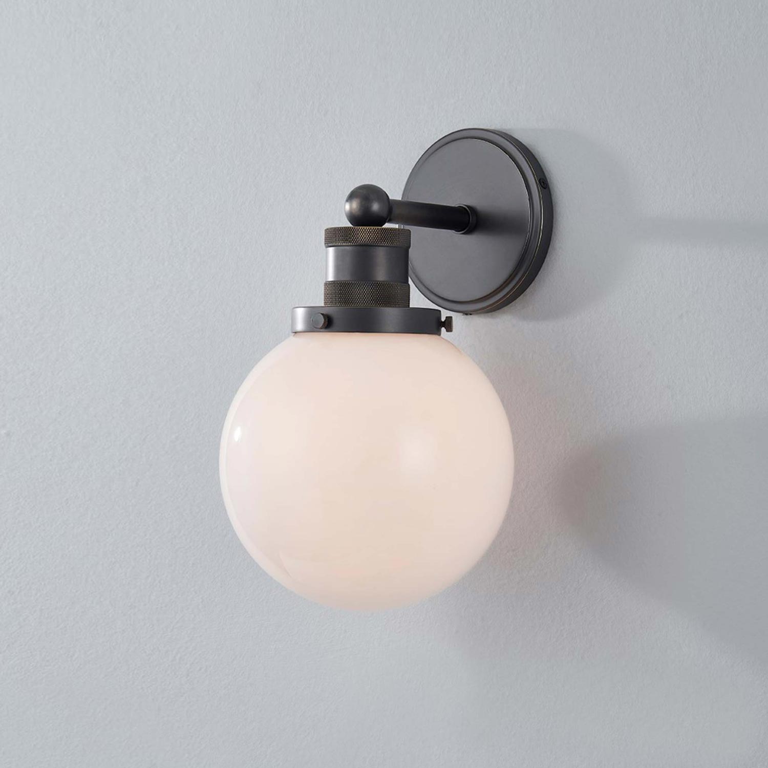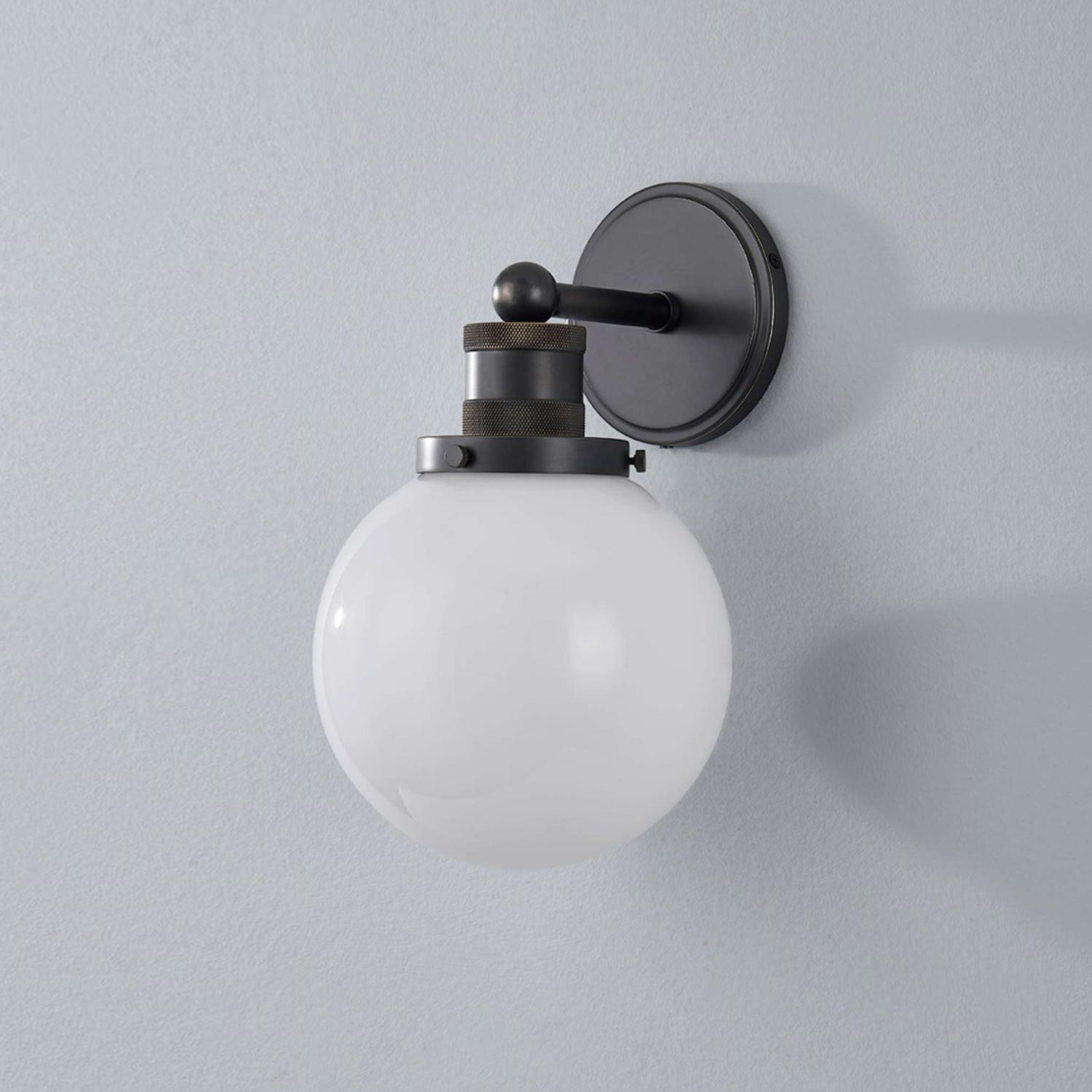 Clean modern styling sneaks in a touch of turn-of-the-century personality to craft the perfect accent fixture for a custom space. The Beverly Wall Light from Mitzi begins with an always-charming opal glossy glass globe and extends to a tasteful metal frame and wall mount. Details pile up to add an authentic dual-motif aesthetic with irresistible charm and versatility.