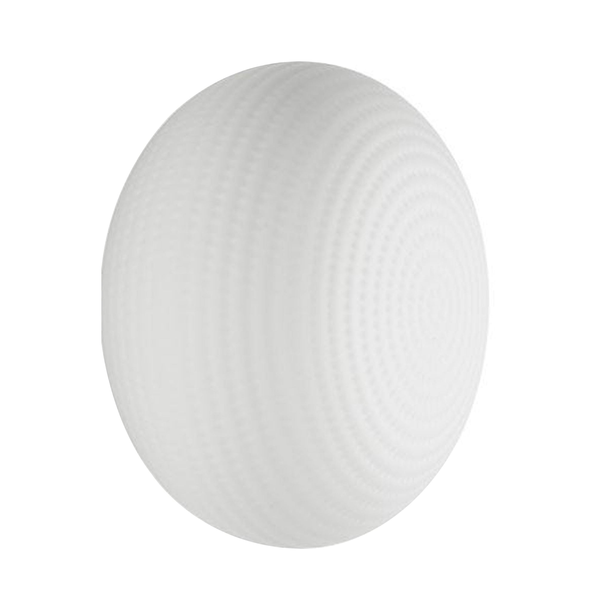 Bianca is a family of luminaires with the decoration on the diffuser surface features an orderly series of shallow delicate grooves etched into the white glass, yielding an effect resembling small footprints on fresh snow. Mouth blown, belt sanded and dipped in acid to obtain the distinctive 'silk effect' typical of fine glassware, Bianca diffusers are available in three different diameters to complete all thirteen types of luminaires belonging to the family. The largest diffuser has a 50 cm diameter and, owing to its dimensions and the amount of glass involved, continues to pose a considerable challenge even for the ablest of glassbbottoms trained in the fixed-mould blowing technique, which – according to the traditional Venetian production process – is performed without any external aids for turning and shaping the glass blob inside the mould, but relies solely on the glassbbottom's skill and lung capacity. Bianca is available in the following versions: table-top without stem, floor-standing with base and stem, pendant, wall-mounted and ceiling-mounted. The matt white coating applied to the various metal supports evokes the name and colour of the diffuser. Bianca produces a very warm, diffused and enveloping light emission in the surrounding environment.