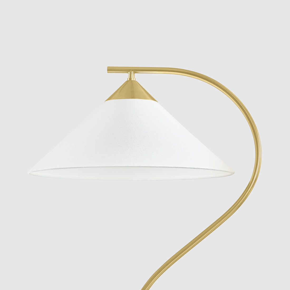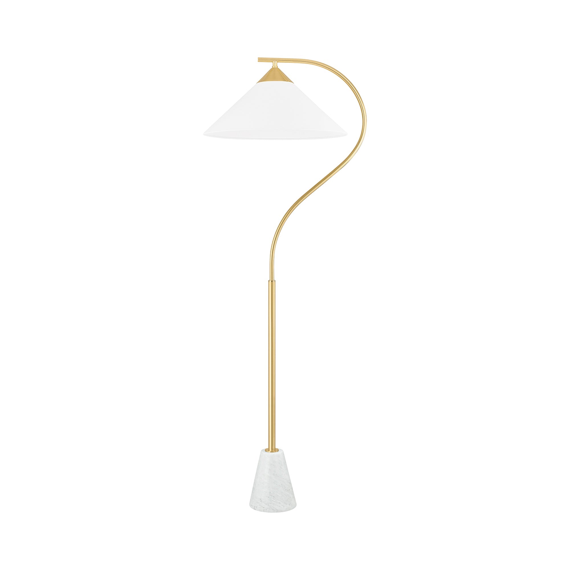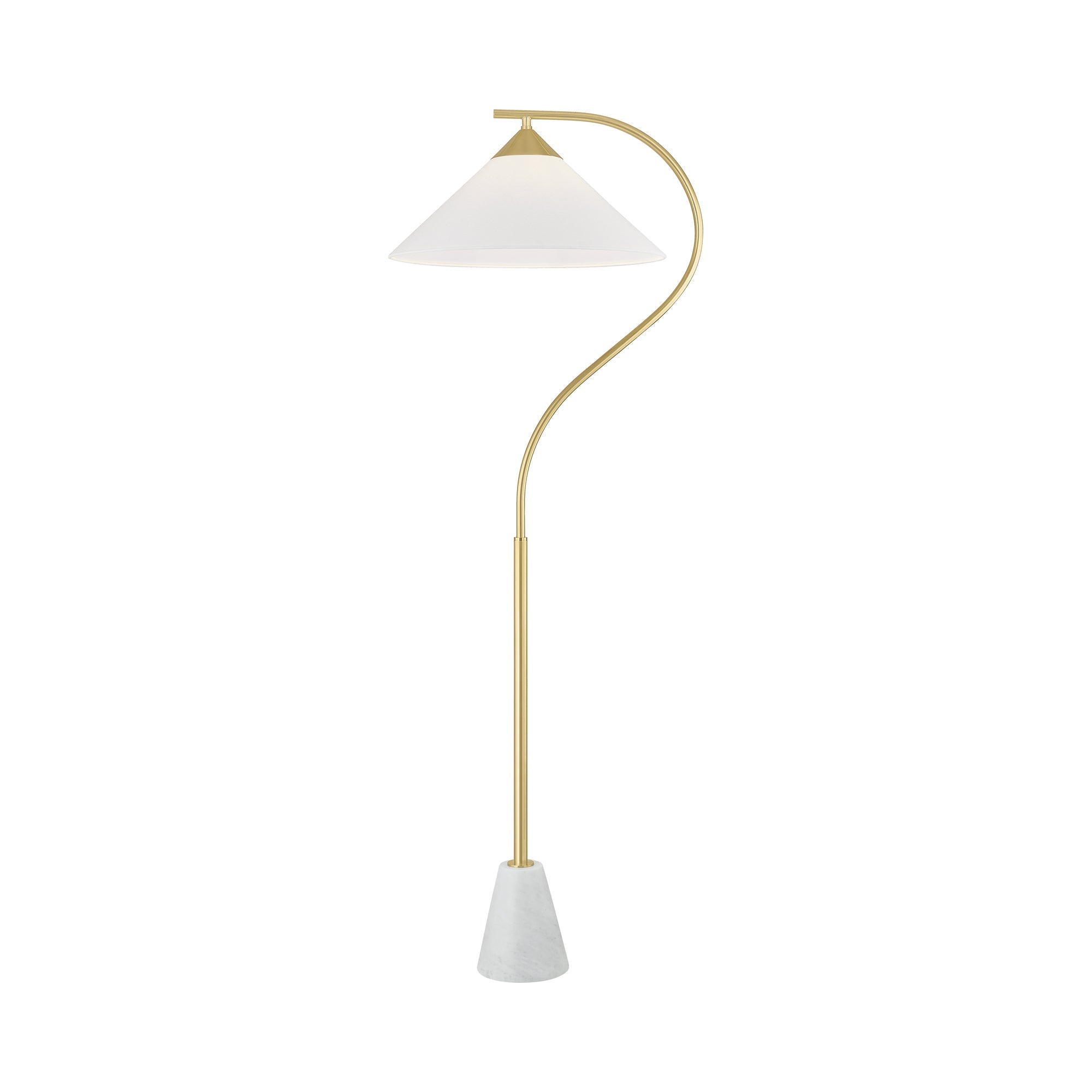 It's all about the curves with the Bianca Floor Lamp from Mitzi, an engaging light source with sophistication and artistry contributing. Elegance and flair show up in a contemporary lamp with a shapely aged brass finish frame and tempting linen shade, as a marbled base perfects proportionality.