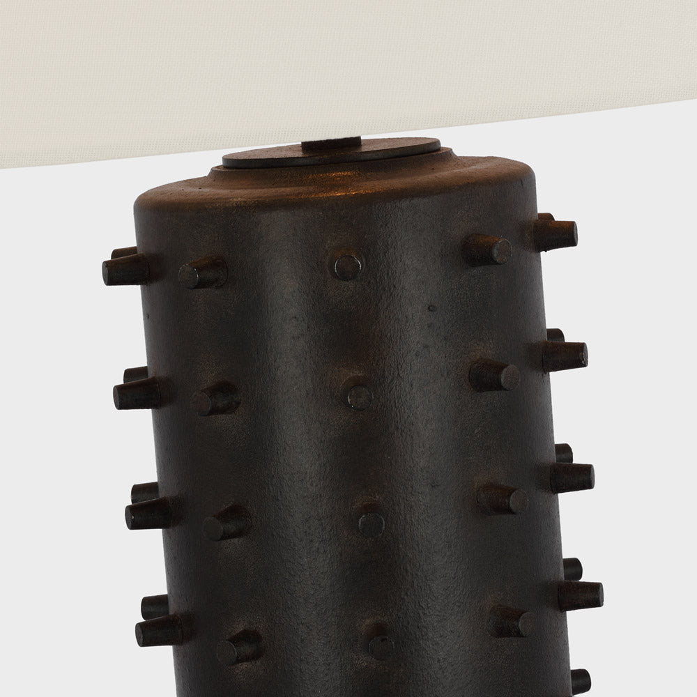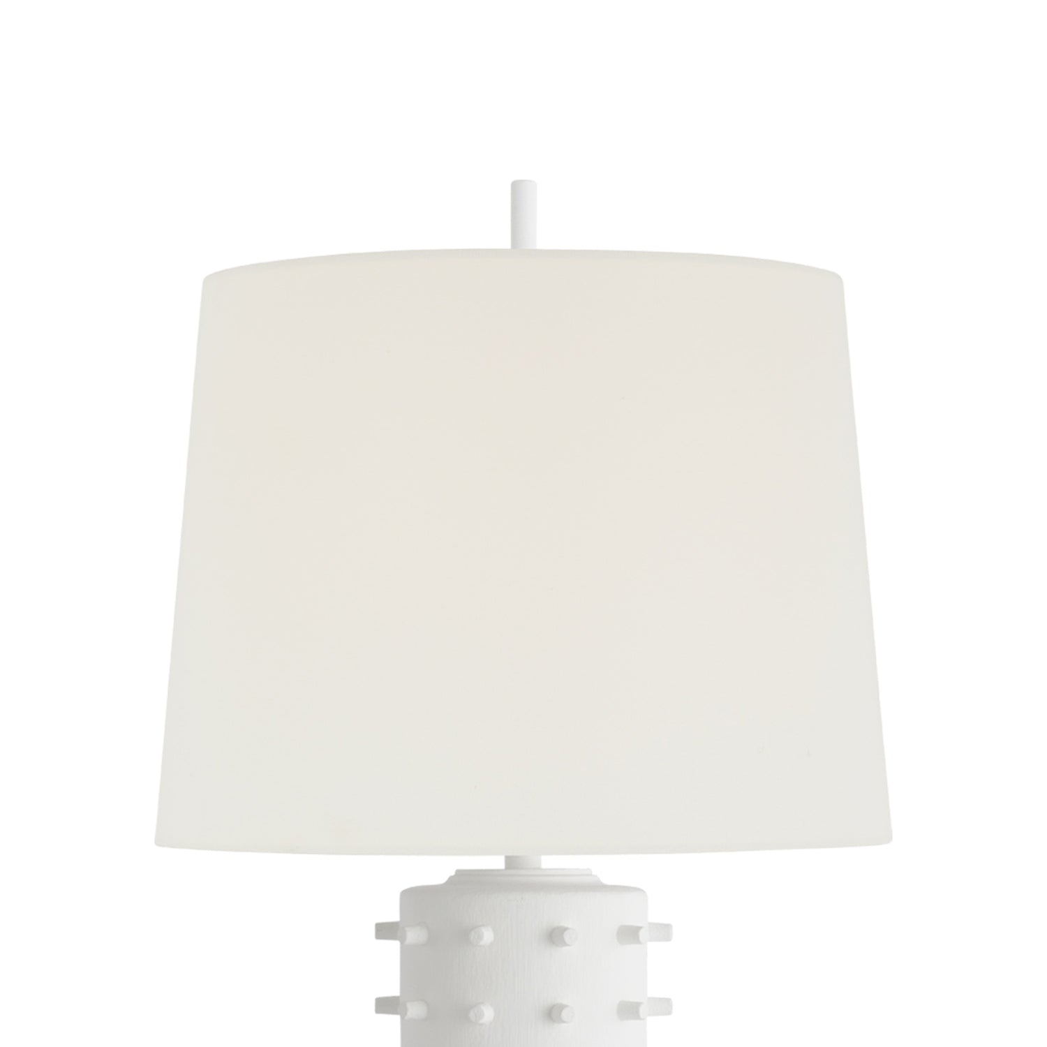 Achieve a textural look with a super-surface design as the Biarritz Table Lamp from Visual Comfort Signature morphs to complete a custom design scheme in a modern setting. This chic lamp is playful and festive, offering a layered cylinder body with vertical dimensional grooves and peg-like rivets protruding. A dynamic aesthetic is also artful and impressive.