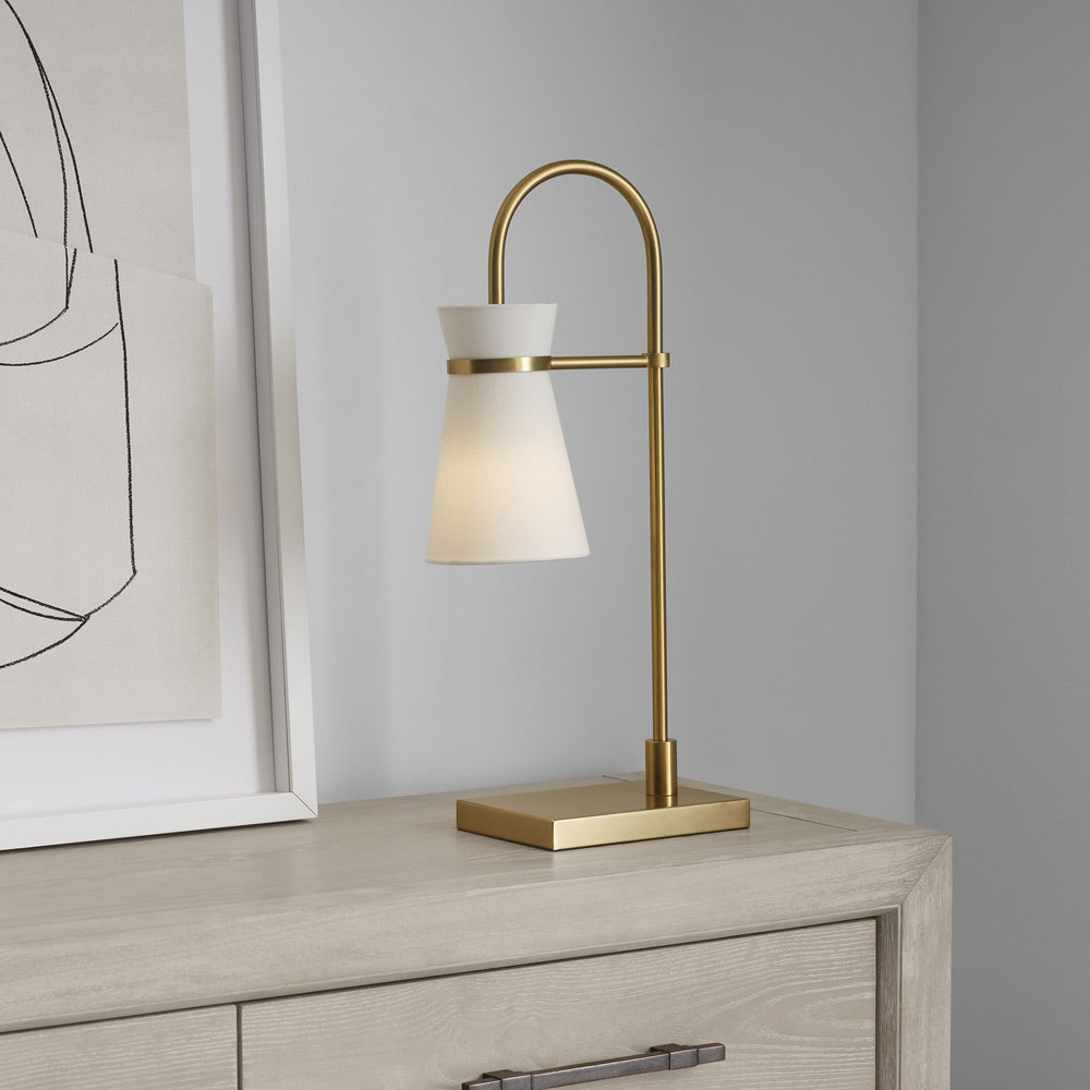 A graceful arch and hourglass shade create a compelling silhouette for the Binx Task Lamp from Visual Comfort Studio. Elegantly understated, the task lamp pairs a sleek profile with a shapely shade that delivers bright, true illumination perfect for reading, working, and ambiance.