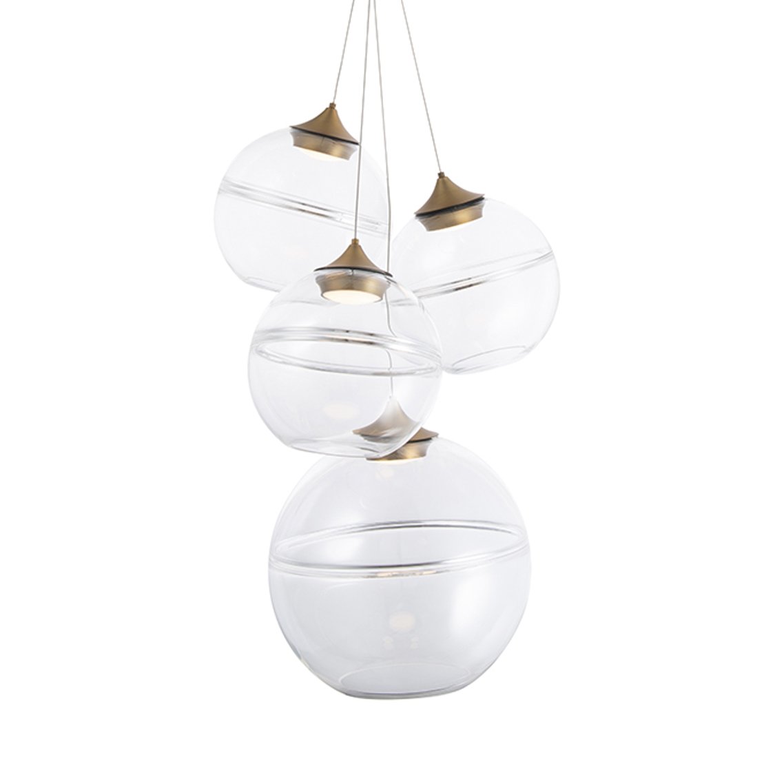 Sparkling brilliance shows itself off with the gleaming clear glass globe shade of the Bistro LED Pendant Light from dweLED, embellished with an ornate aluminum canopy and holder.
