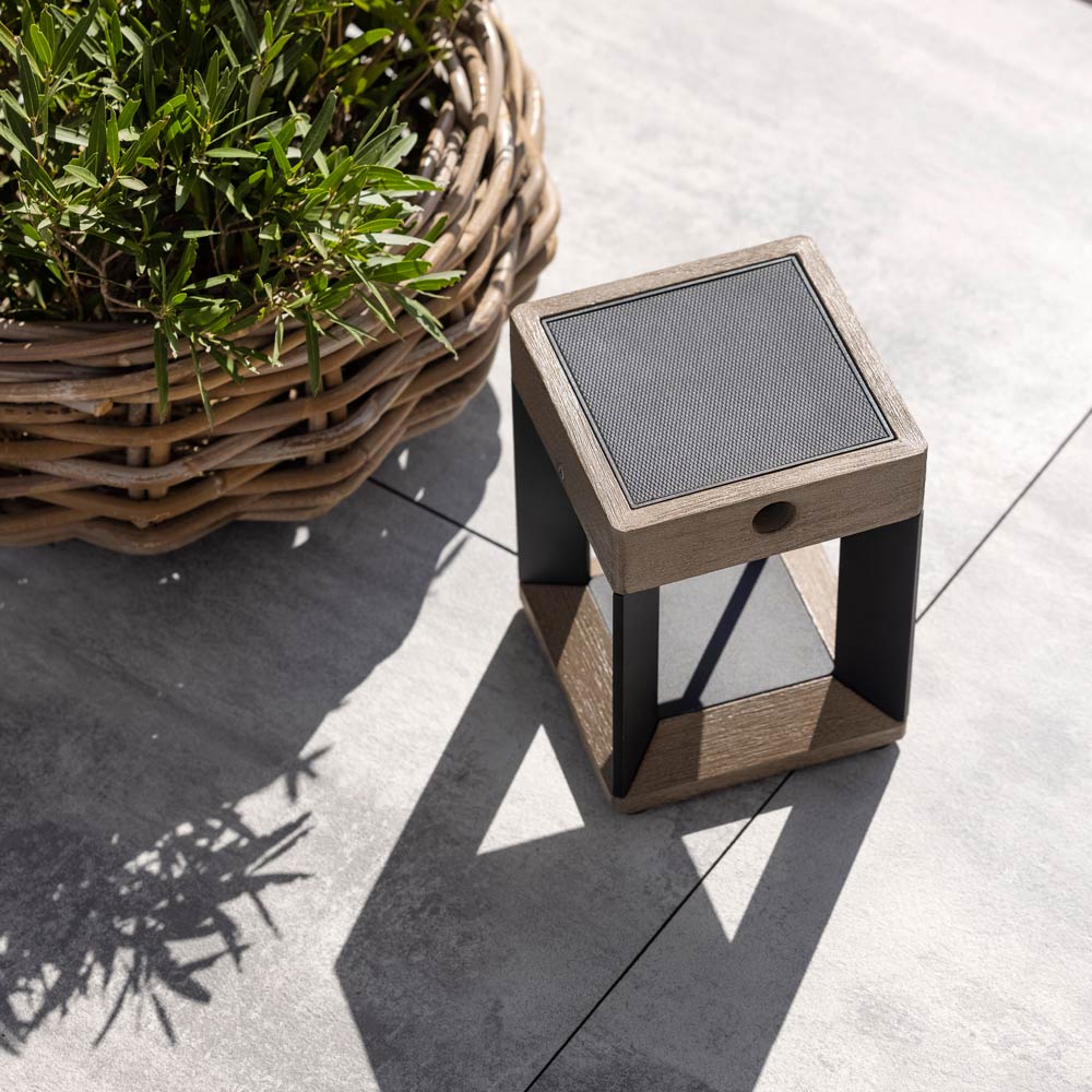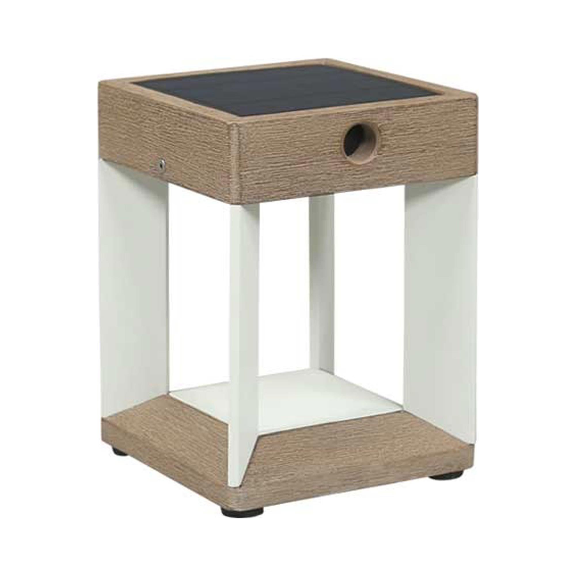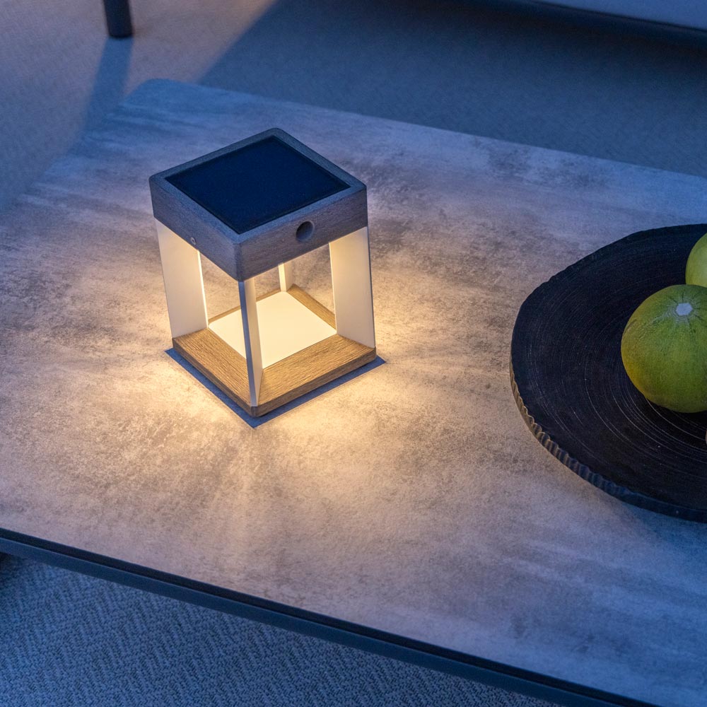 A nuanced bit of simplicity delivers clean design elements made for a natural setting as the Blade Outdoor Solar LED Table Lamp from Les Jardins modernizes light delivery with the benefit of portability and energy-efficiency. A boxy metal and wood frame with angled edges offers enticing, crisp styling perfect for a casual outdoor table or deck space, gathering renewed power from solar rays.