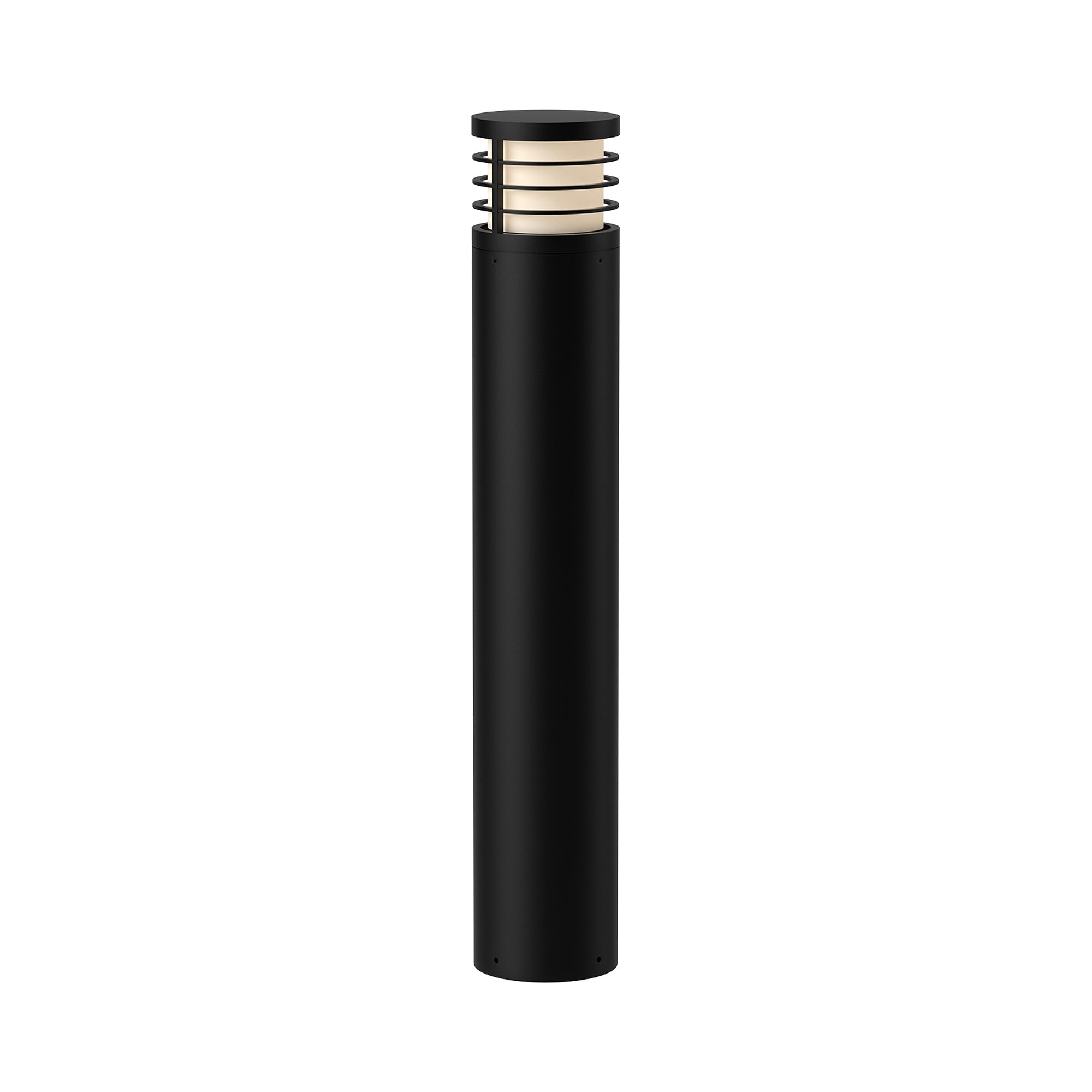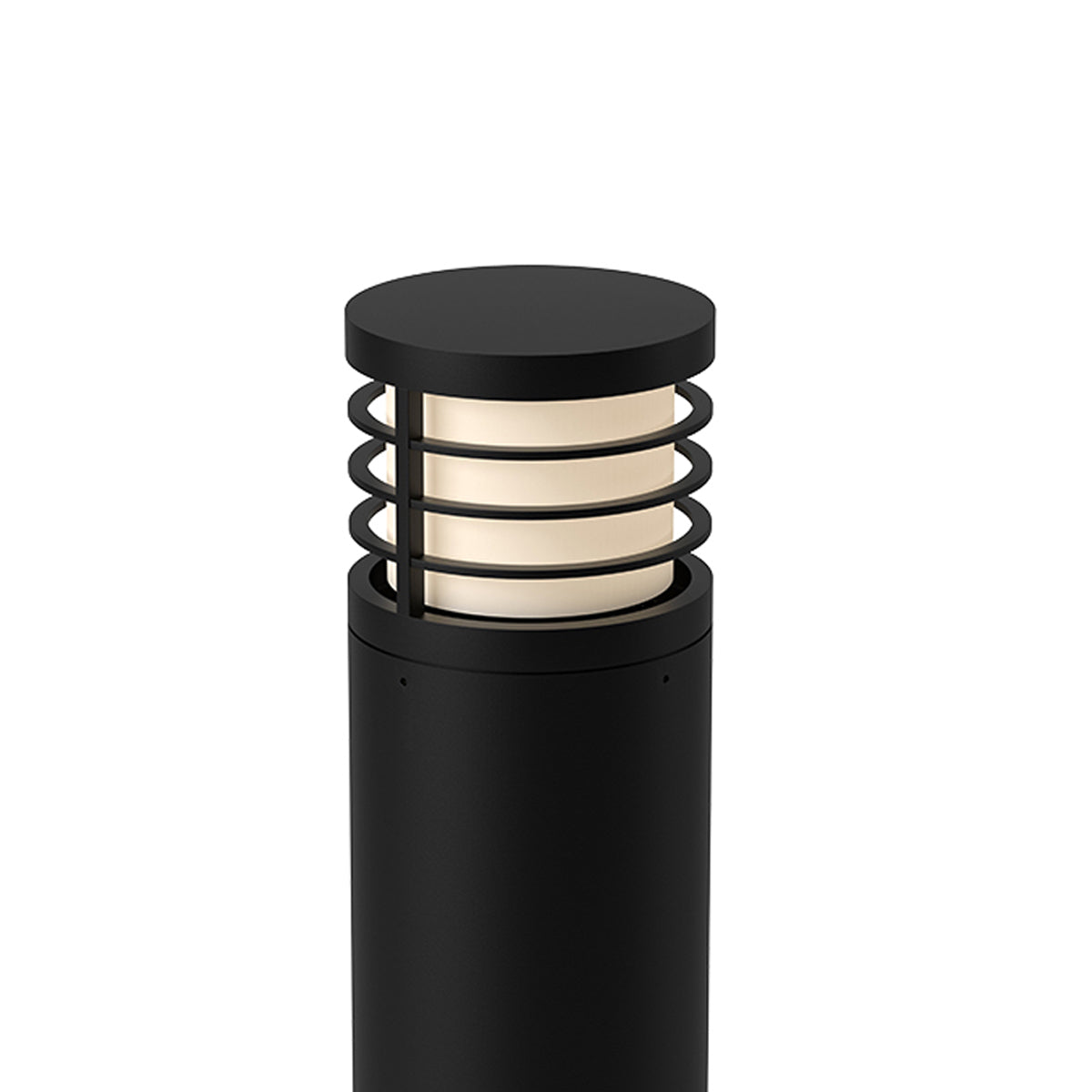 Chic metal halos add decorative effect to the frosted diffuser featured on the Blaine Outdoor LED Bollard from Kuzco Lighting. Its familiar cylindrical silhouette assures omnidirectional illumination, perfect for paths and other landscape features. A black finish is timeless and simple, perfect for virtually any setting.