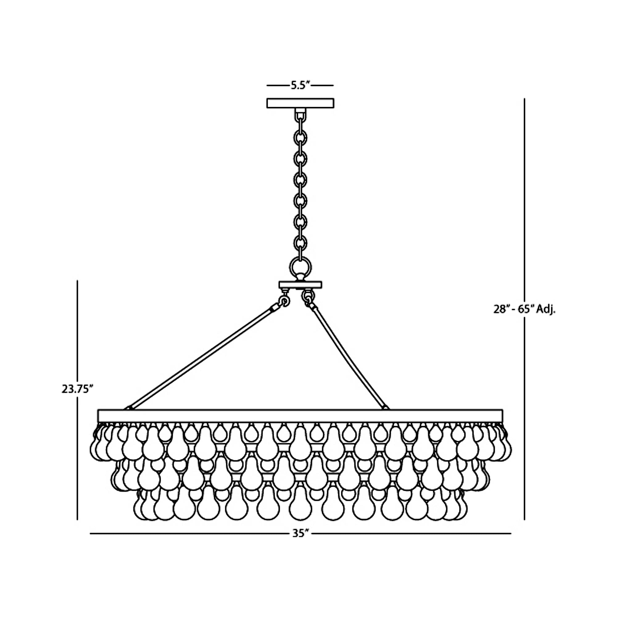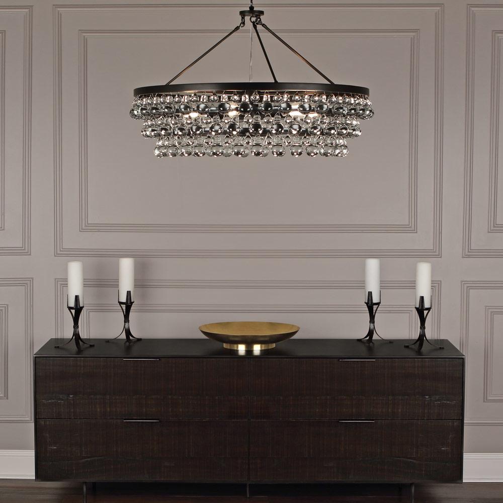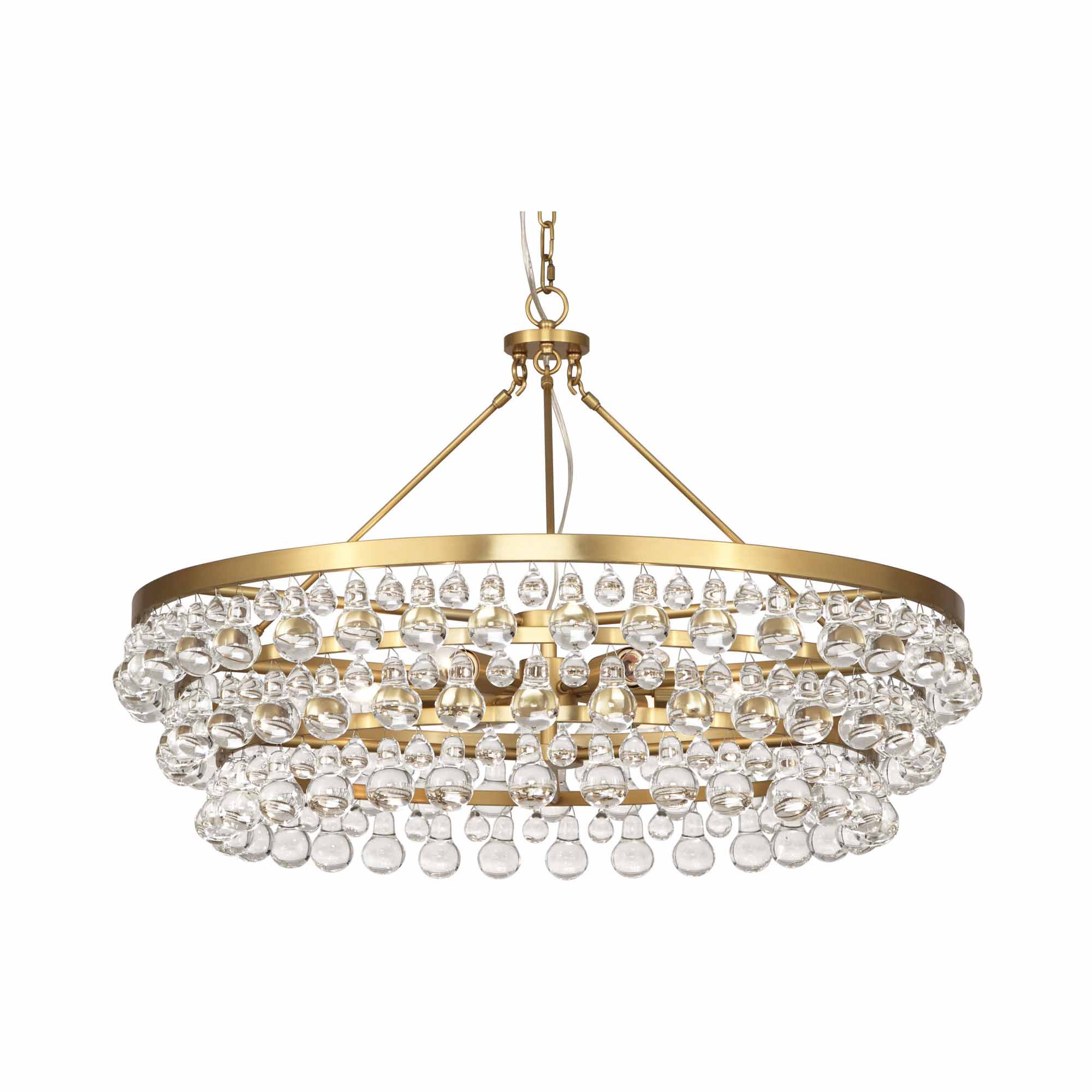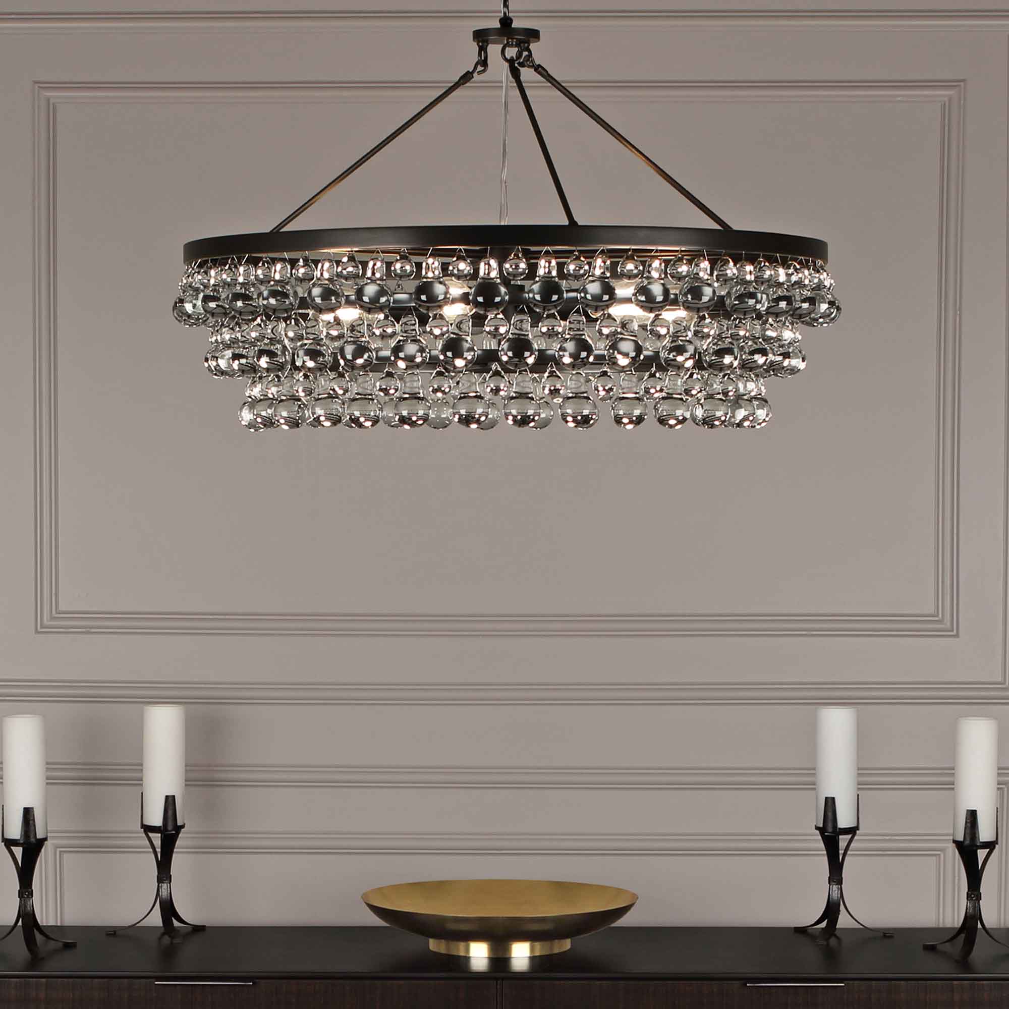 Taking glam to the next level, the exquisite Bling Large Chandelier from Robert Abbey focuses elegance from floor to ceiling with a shimmering metal frame structure and gleaming drops of clear glass that resemble crystals and raindrops.