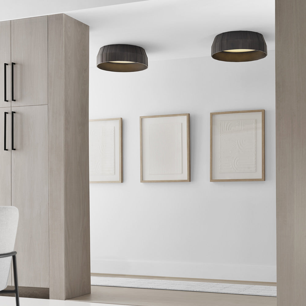 Organic in its drama-inspired design, the Bling LED Flush Mount Ceiling Light from Visual Comfort Modern creates minimalism and simplicity to suit a contemporary setting. A sleek rounded silhouette with strips of dark bronze finish metal throws in a bent shaping effect and creates a tempting and dynamic floor-to-ceiling style blueprint in any space. Make this energy-efficient fixture a focal point.