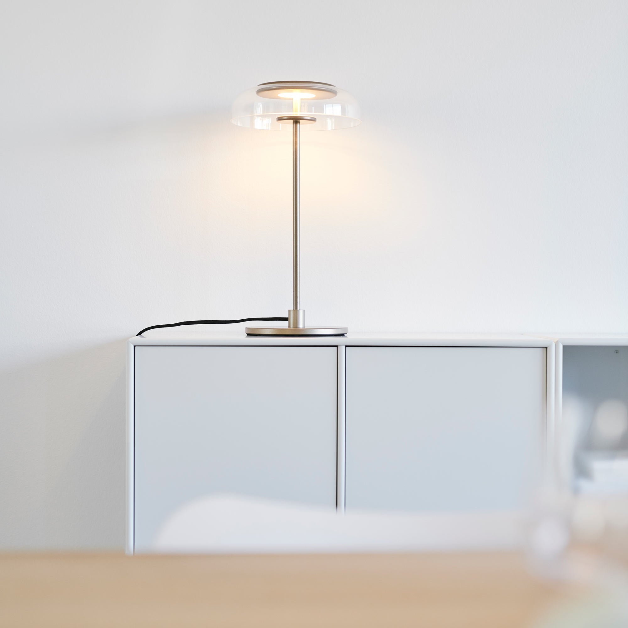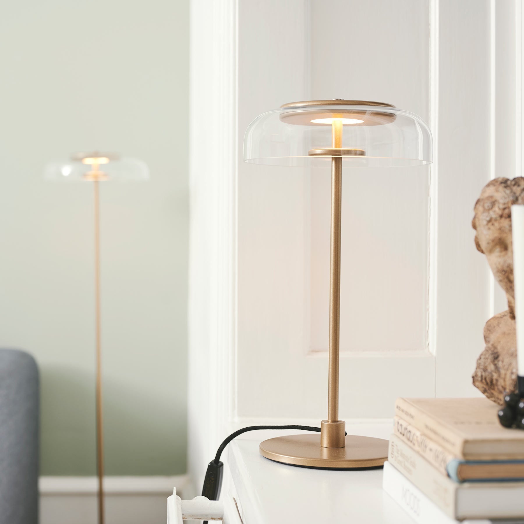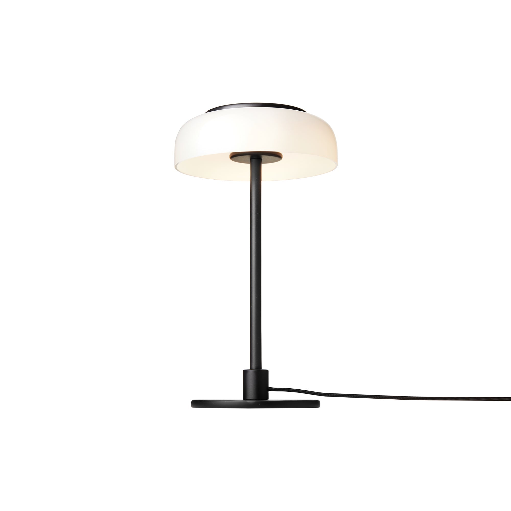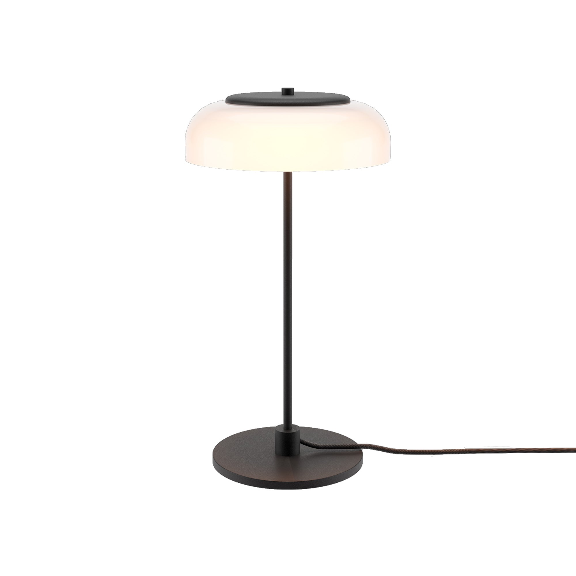 Enjoy a perfect hybrid motif of casual and artful in a table lamp offering energy-efficient lighting. Blossi LED Table Lamp from Nuura. Classically shaped with a hint of farmhouse influence, this metal lamp hosts a sleek glass shade.